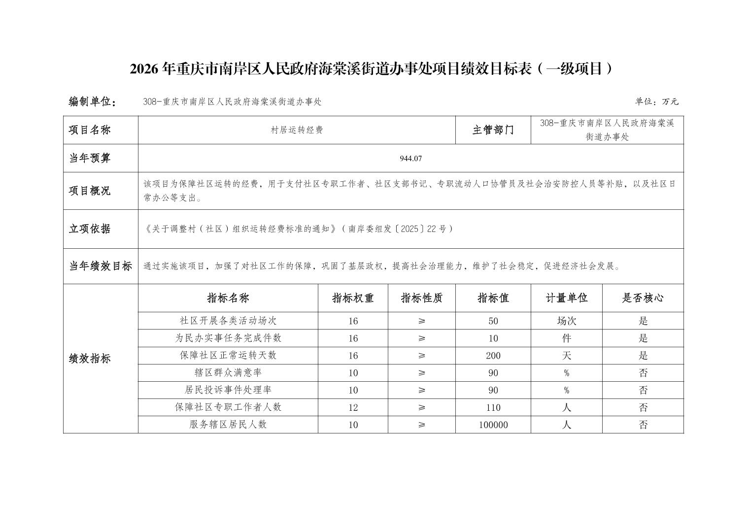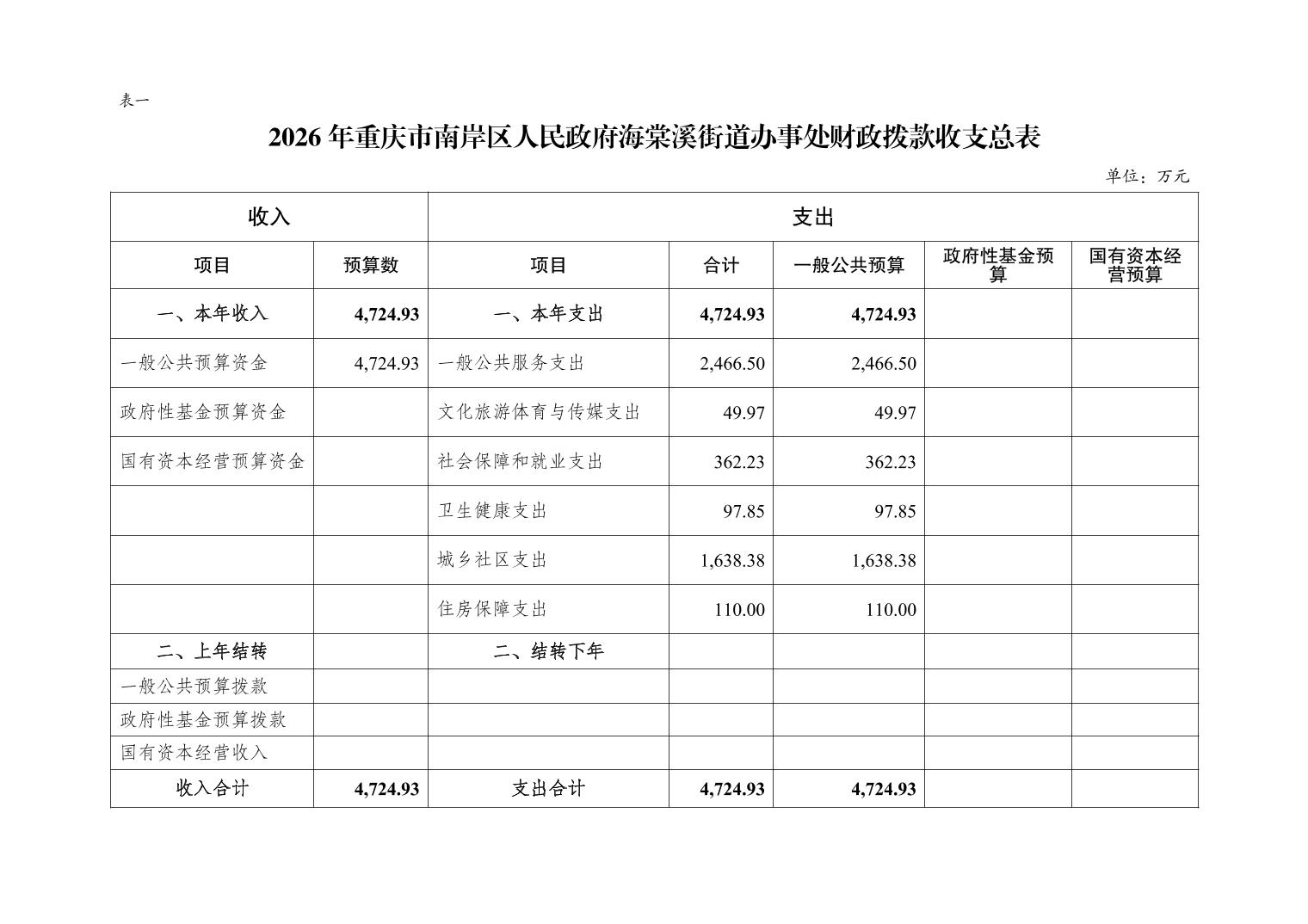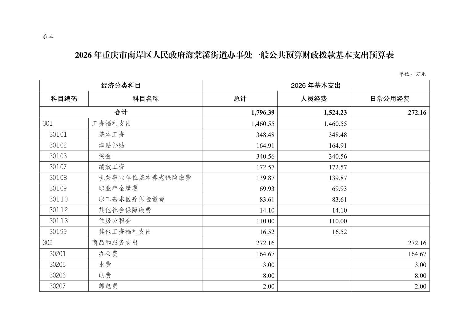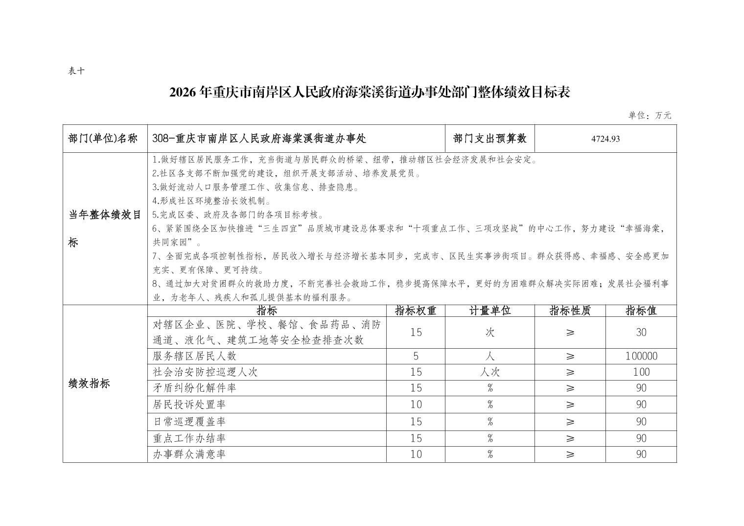 重庆市南岸区人民政府海棠溪街道办事处2026年部门预算情况说明