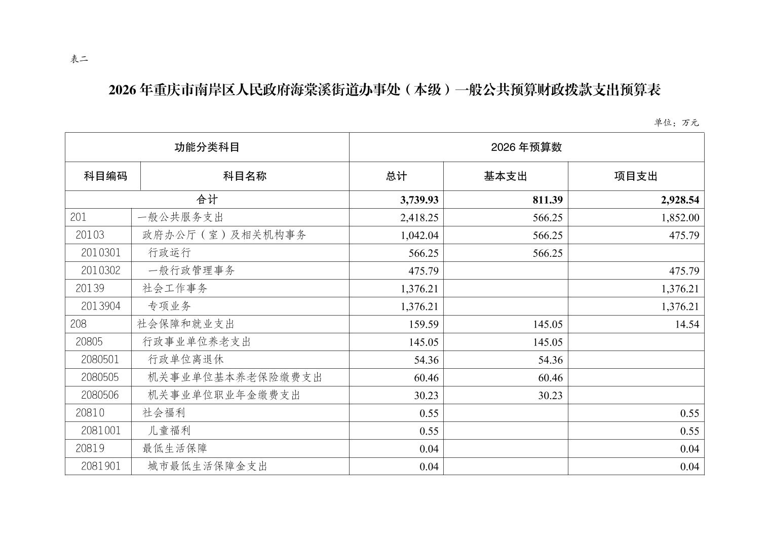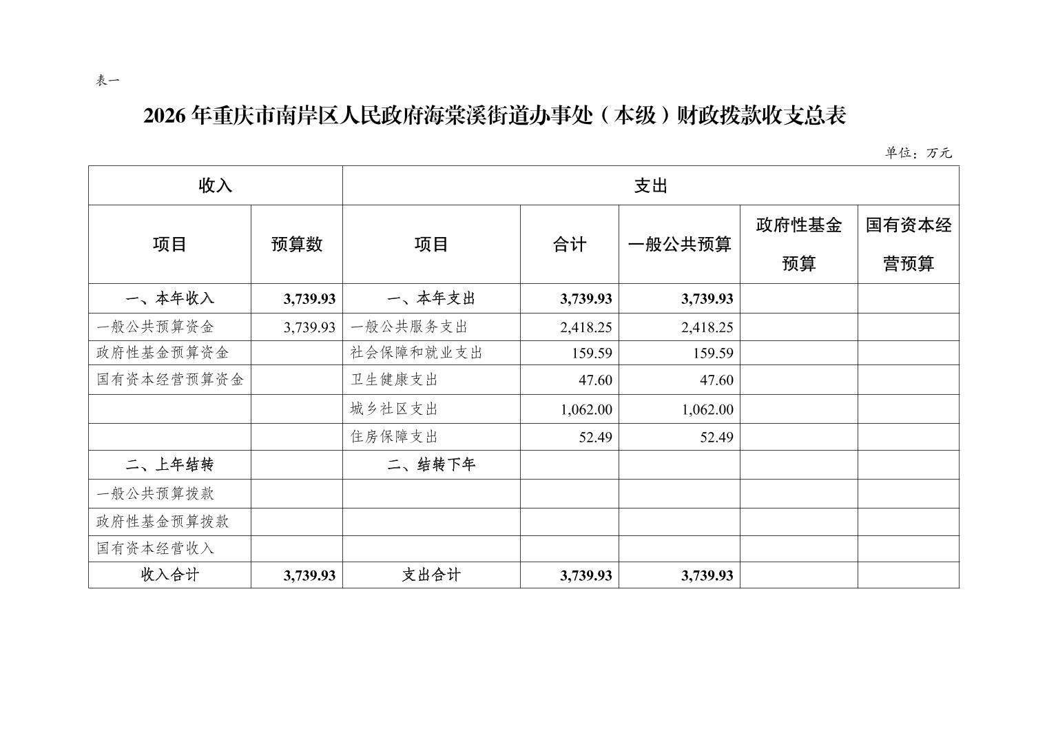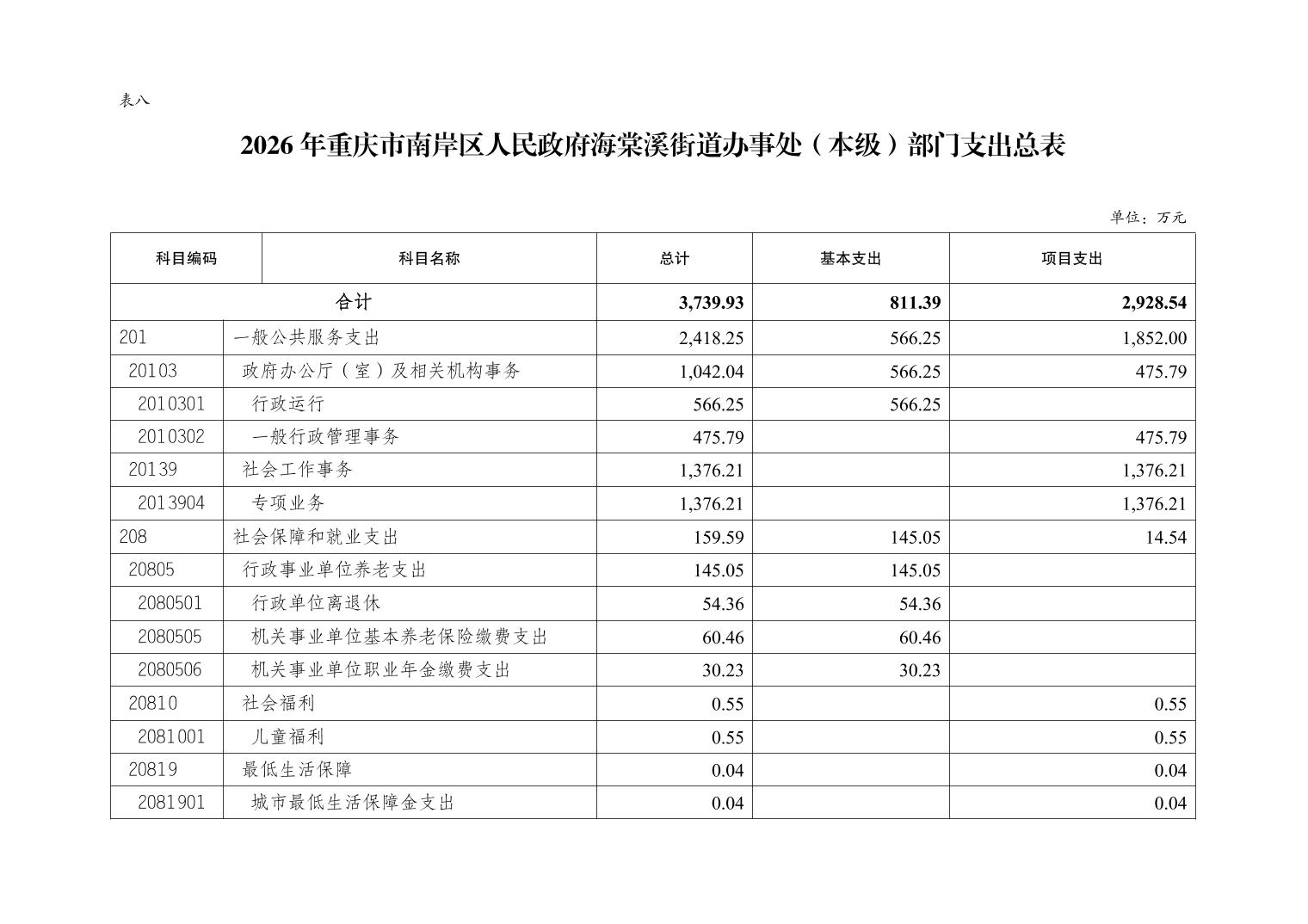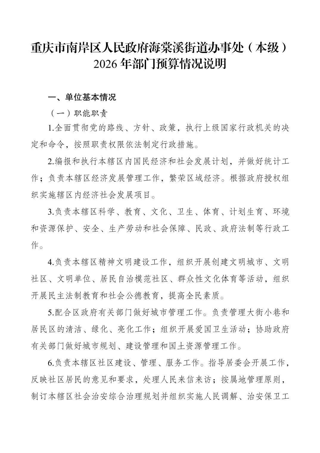 重庆市南岸区人民政府海棠溪街道办事处(本级)2026年部门预算情况说明