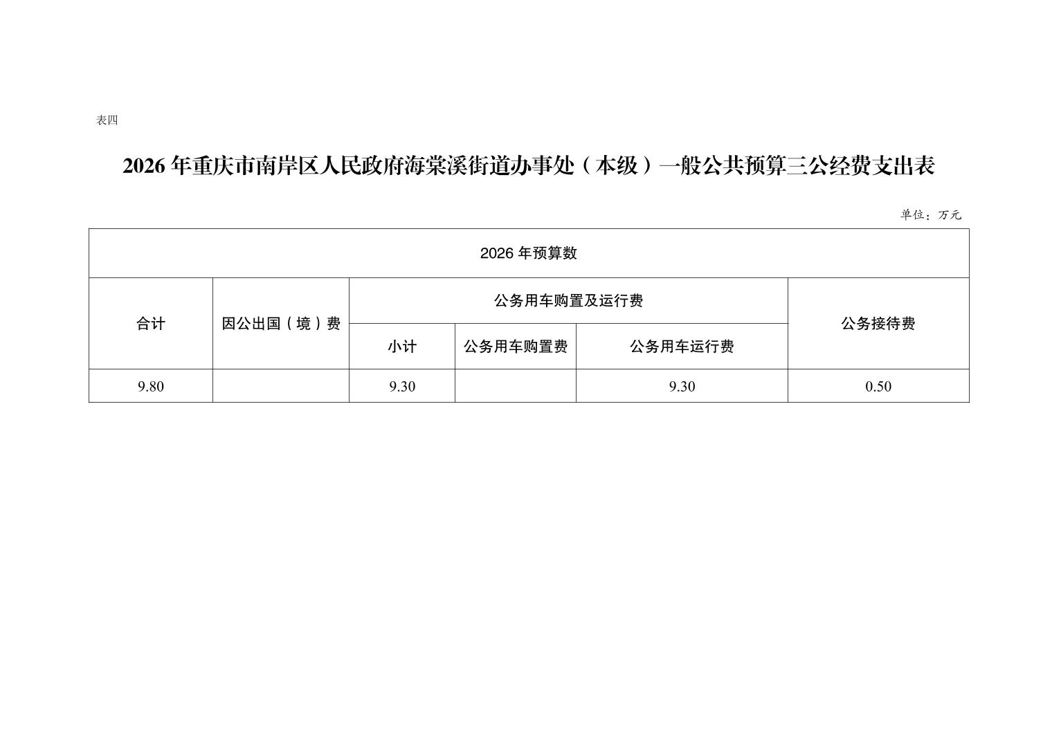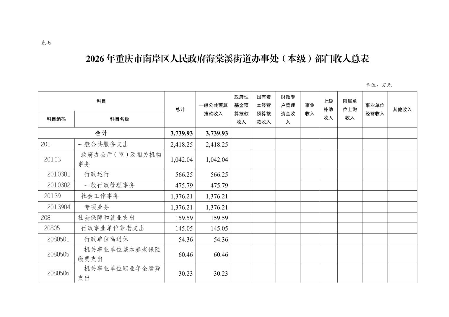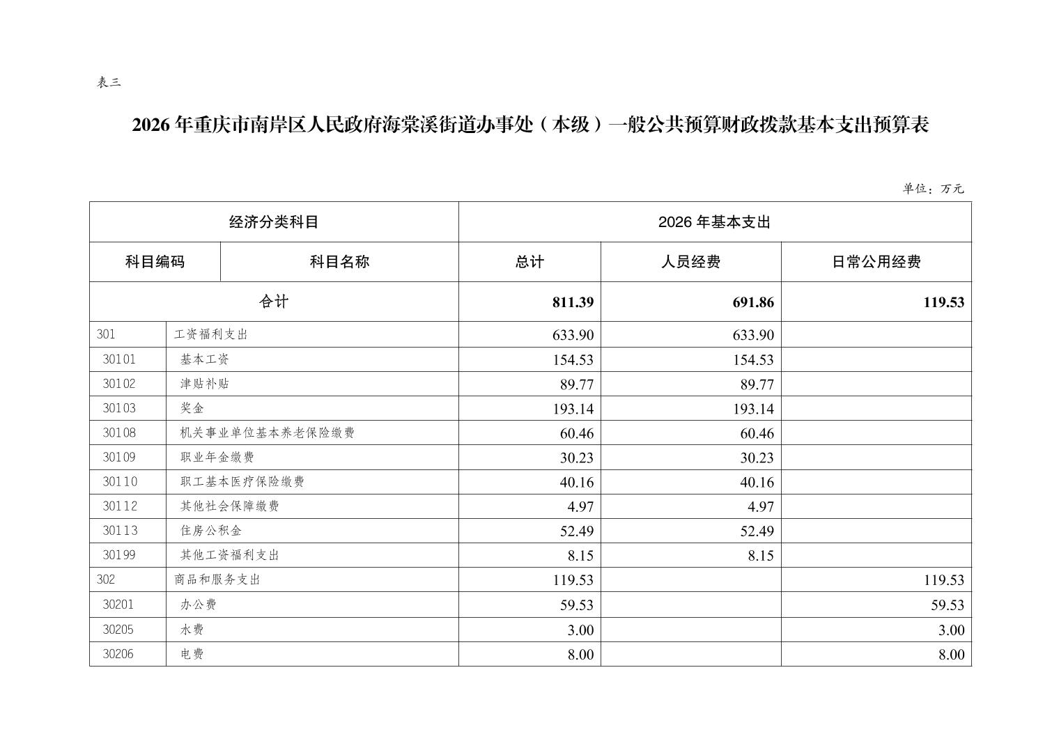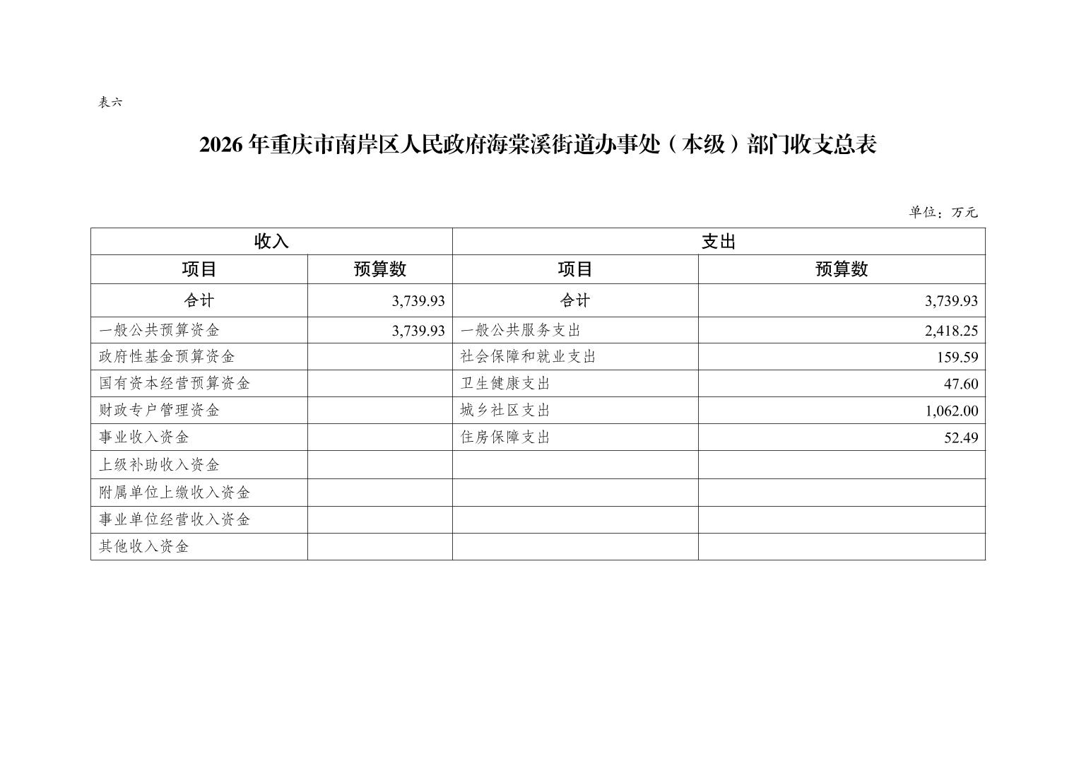 重庆市南岸区人民政府海棠溪街道办事处(本级)2026年部门预算情况说明