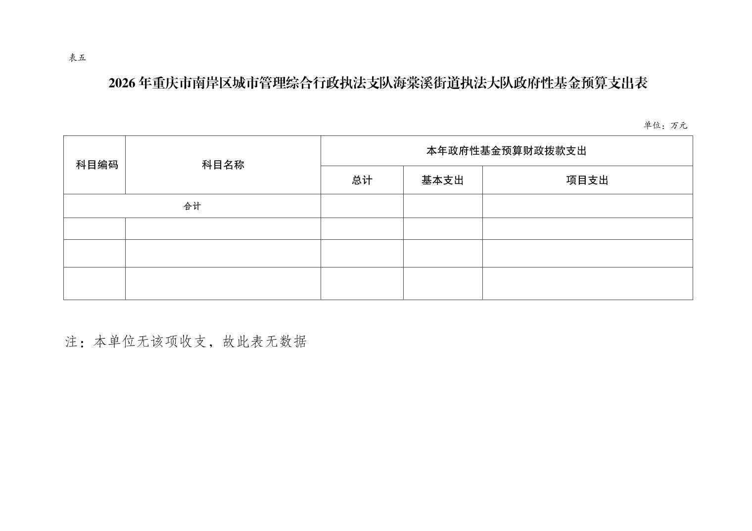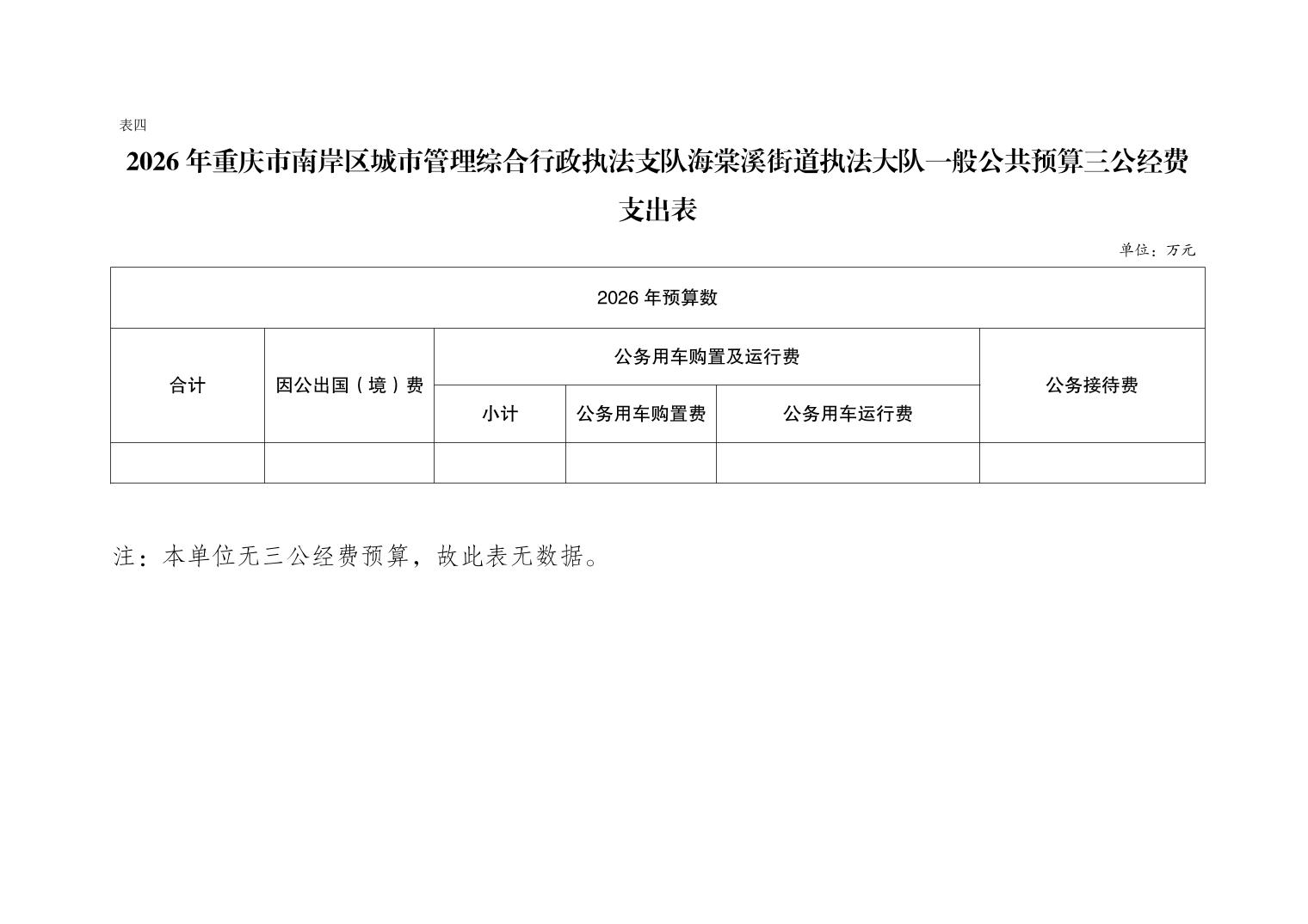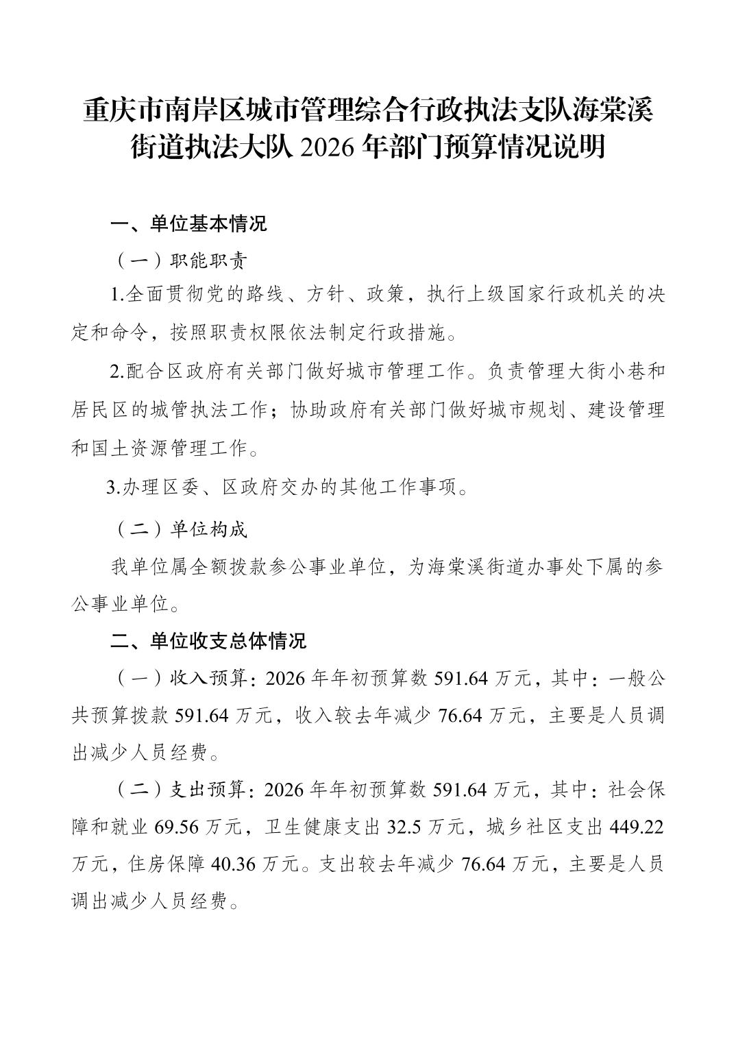重庆市南岸区城市管理综合行政执法支队海棠溪街道执法大队2026年部门预算情况说明