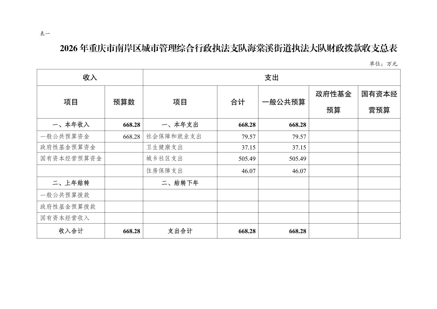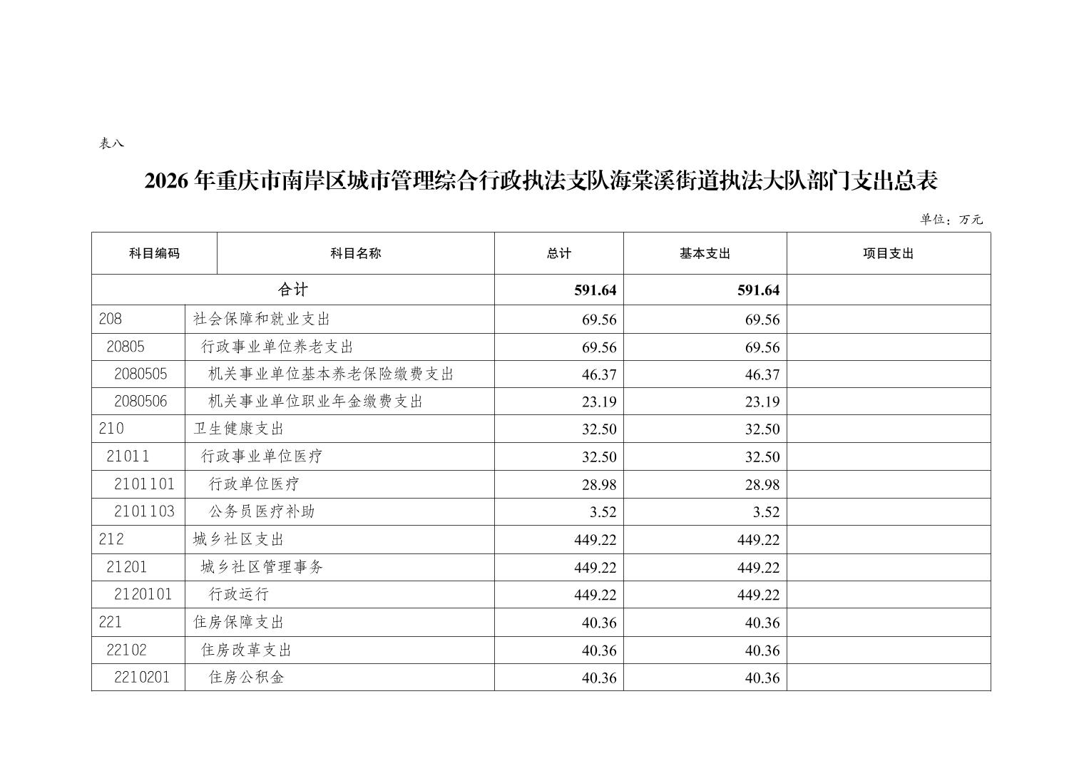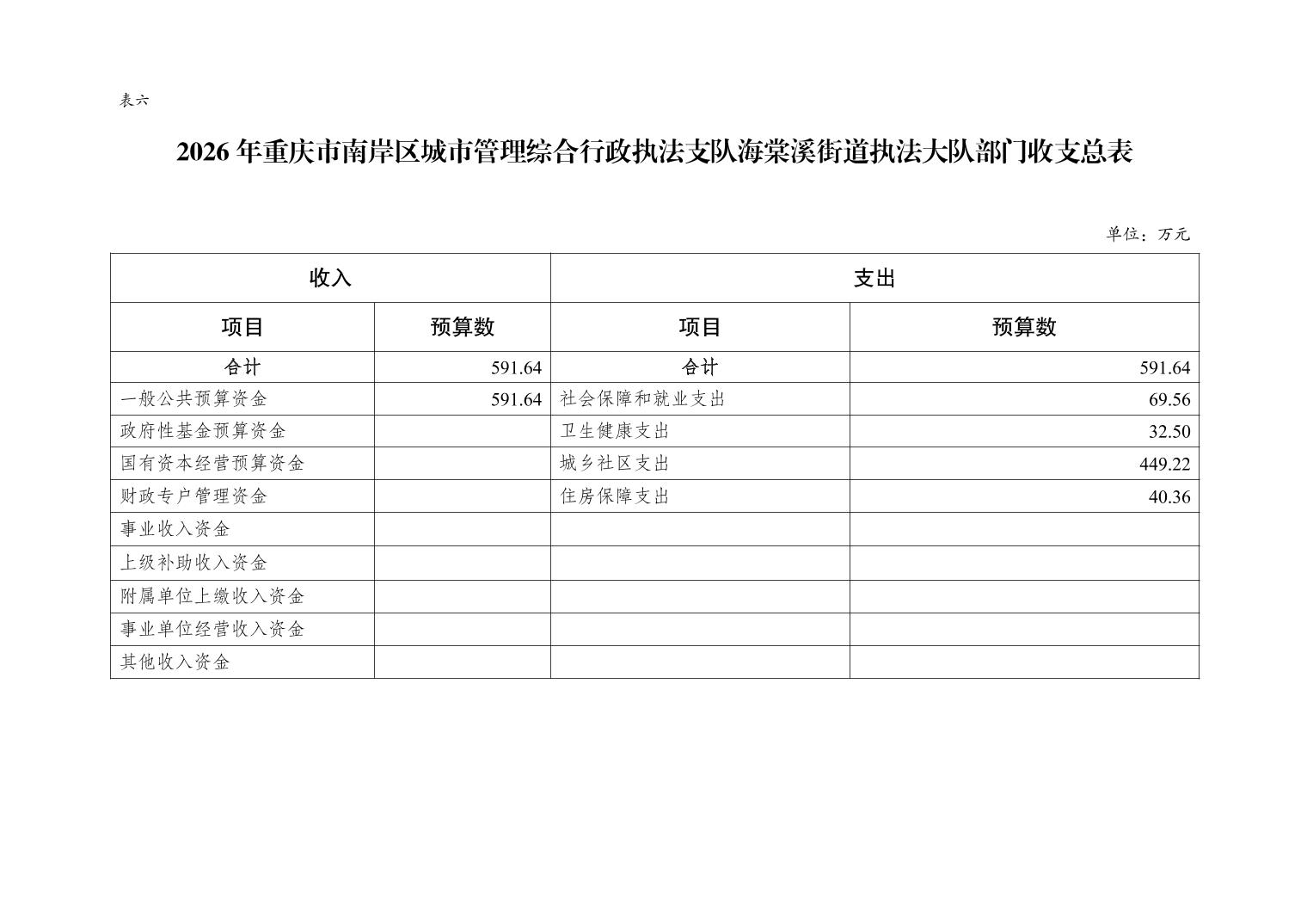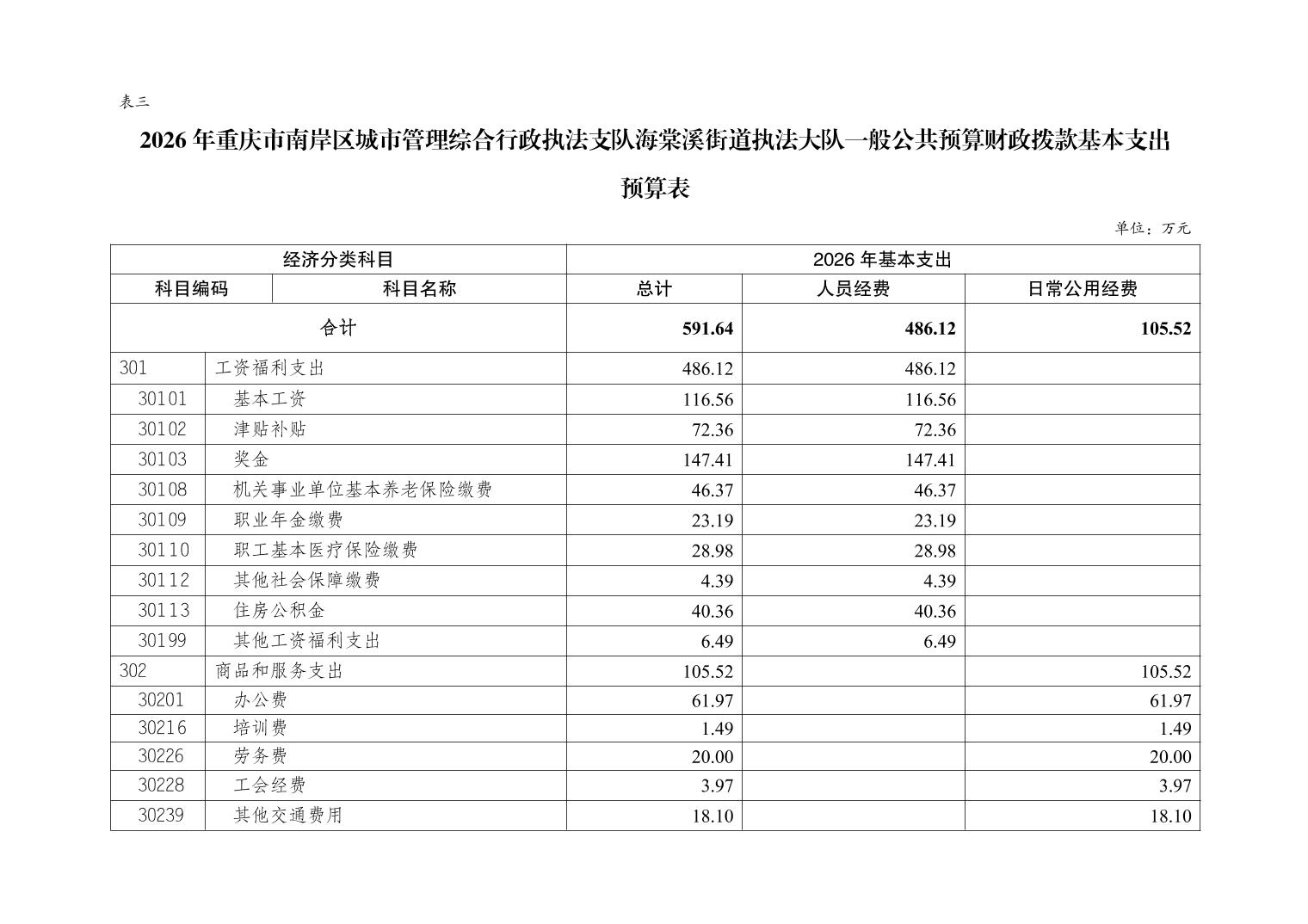 重庆市南岸区城市管理综合行政执法支队海棠溪街道执法大队2026年部门预算情况说明