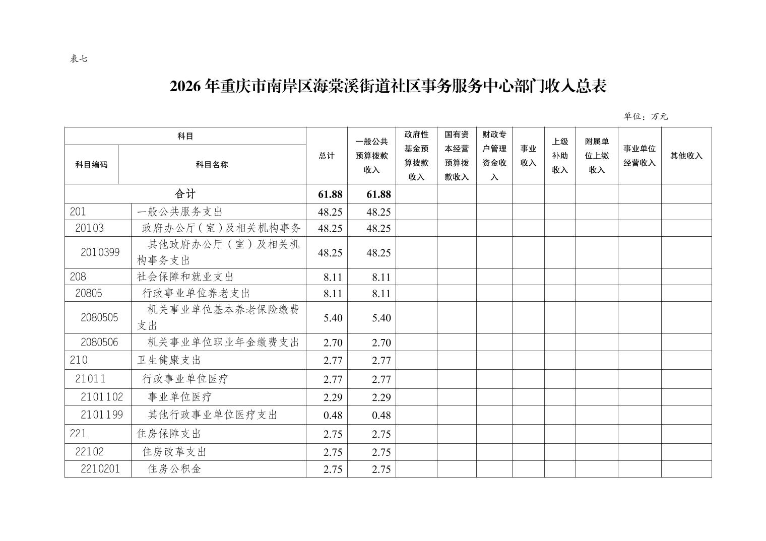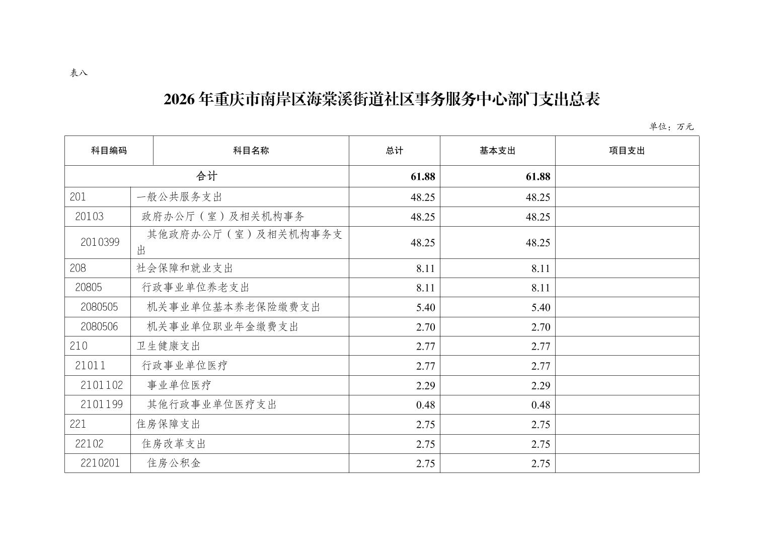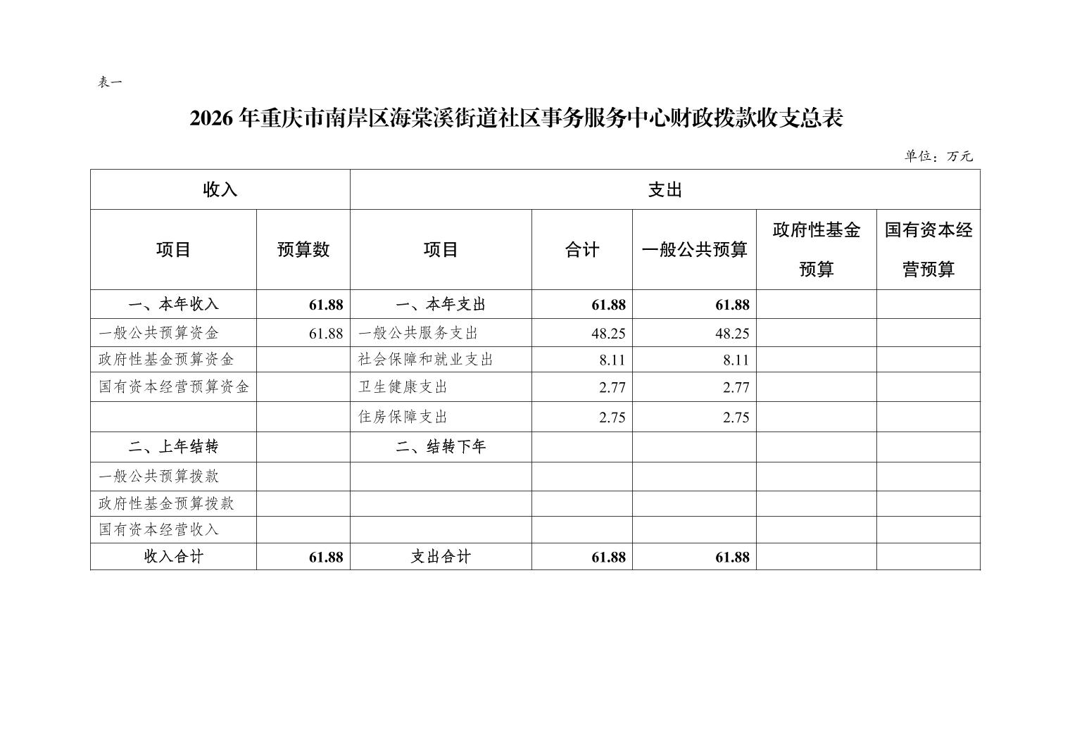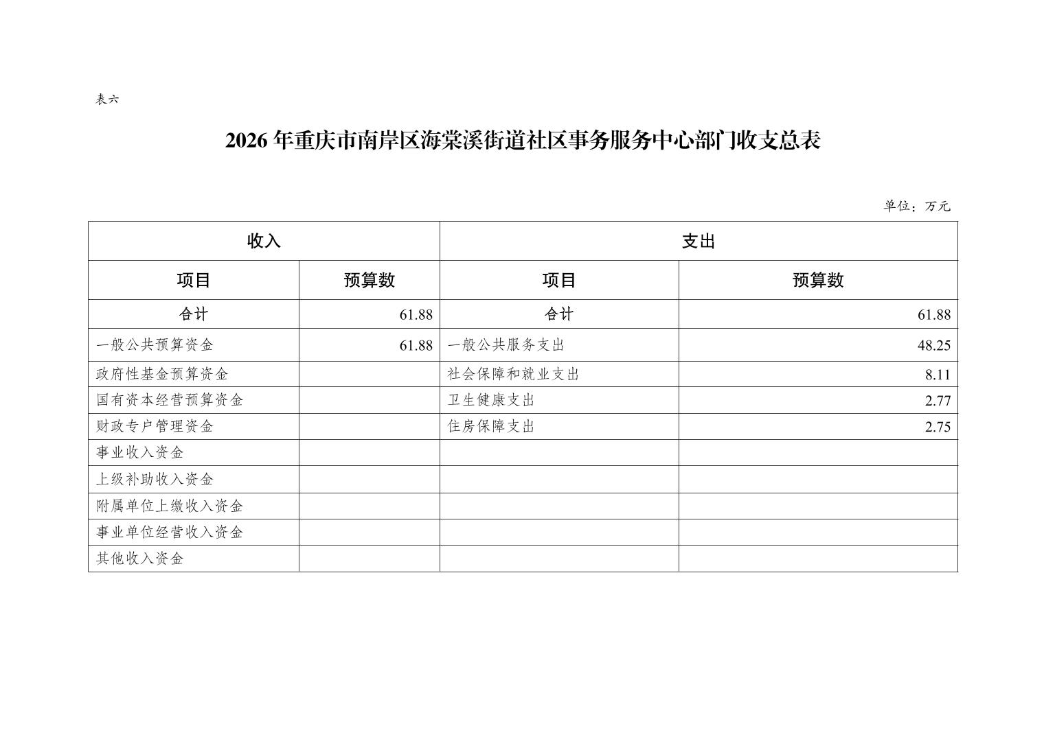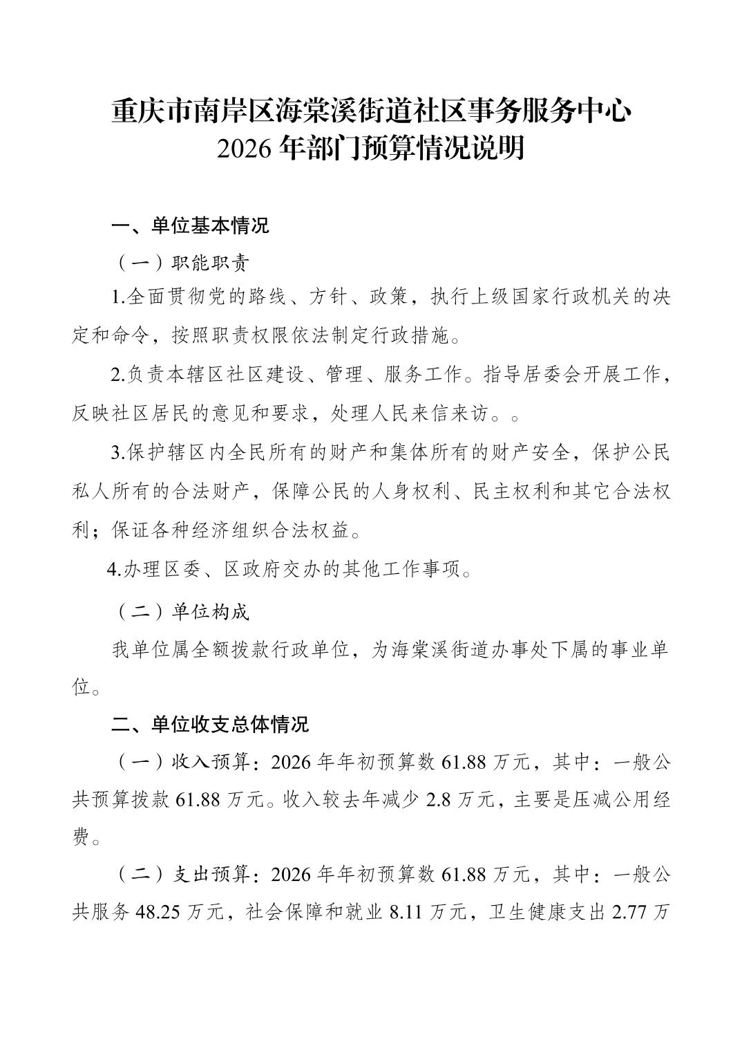 重庆市南岸区海棠溪街道社区事务服务中心2026年部门预算情况说明