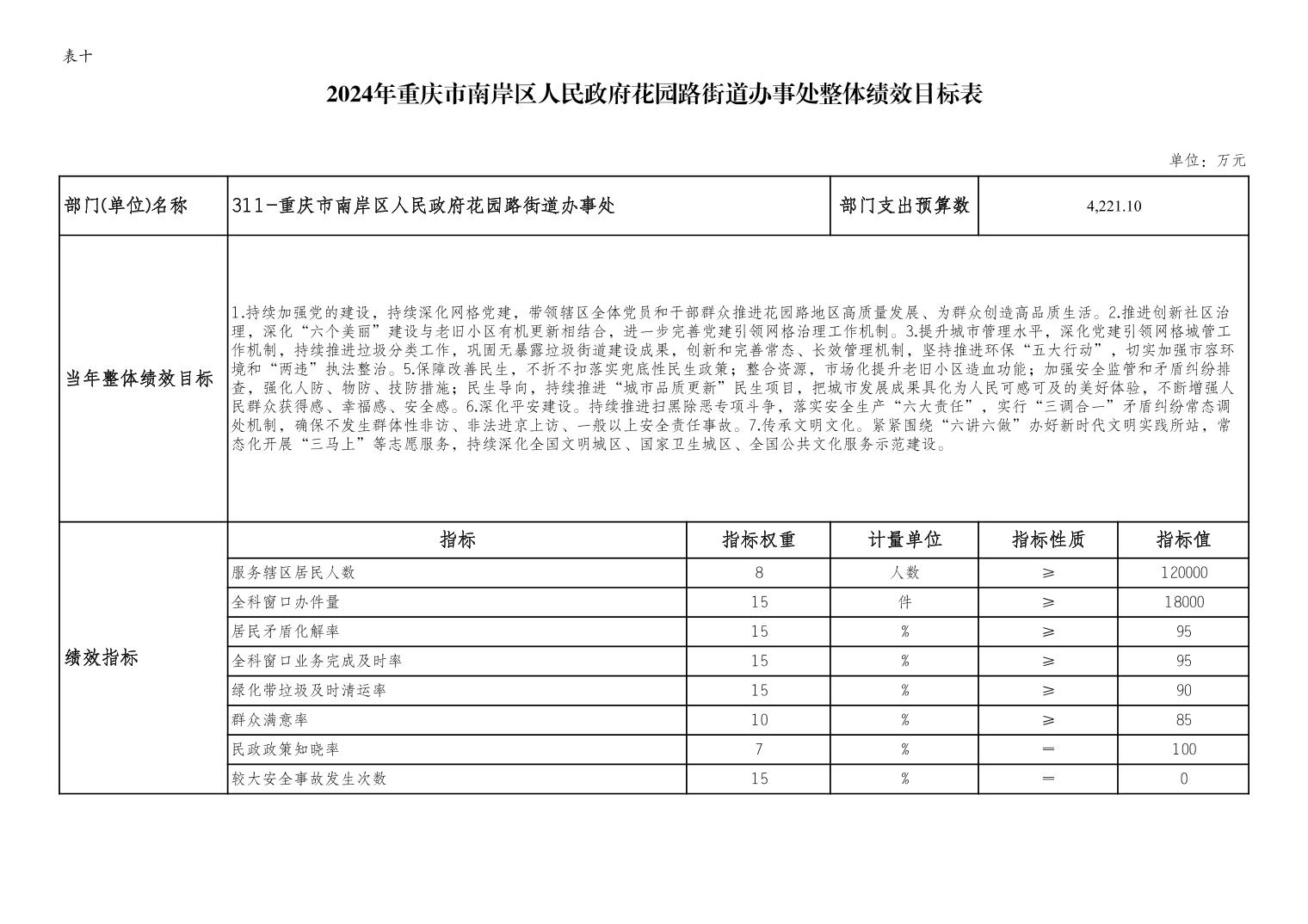 重庆市南岸区人民政府花园路街道办事处2024年部门预算情况说明