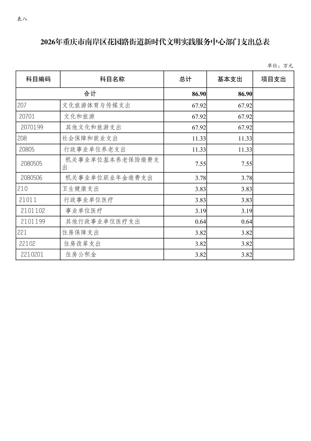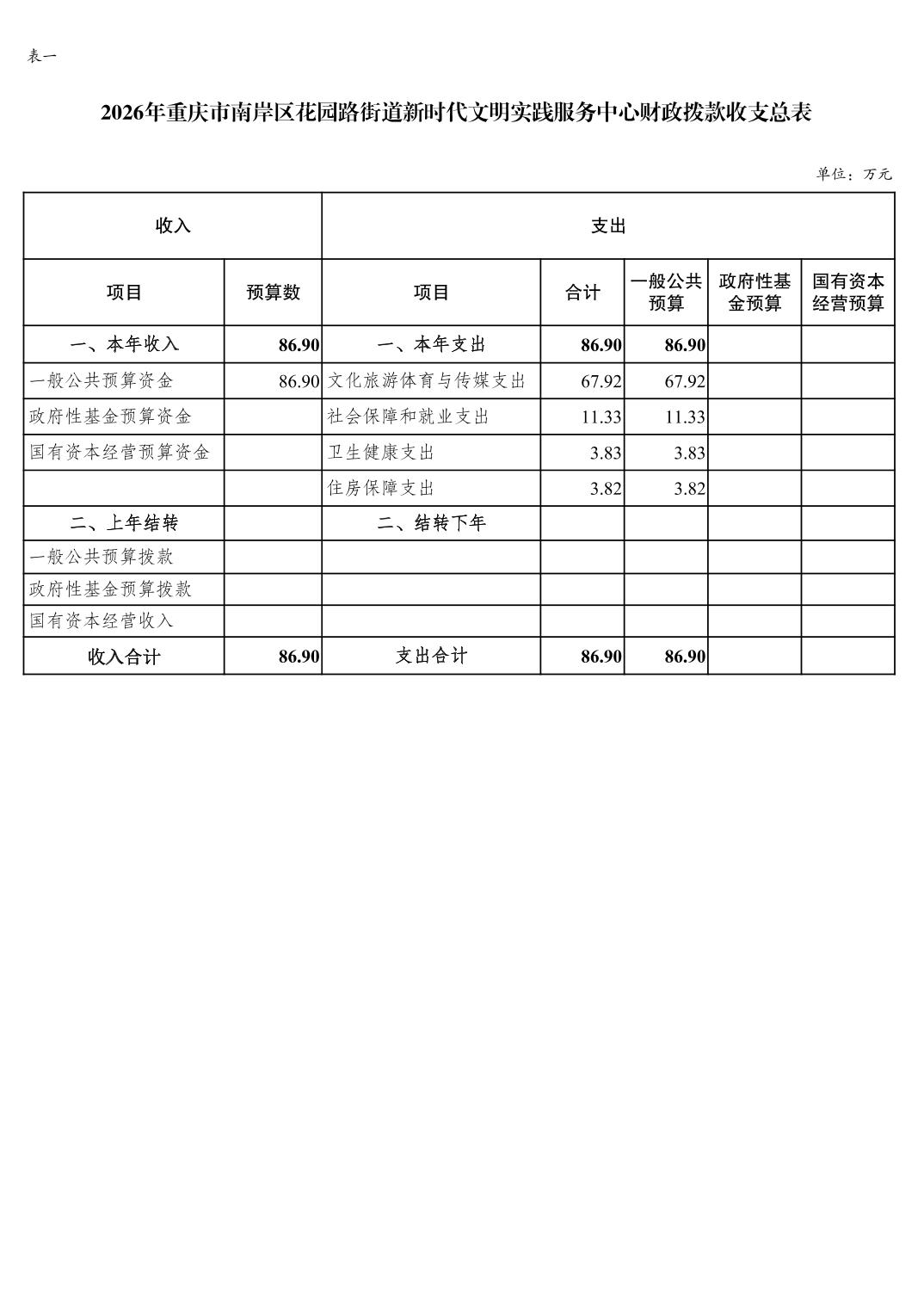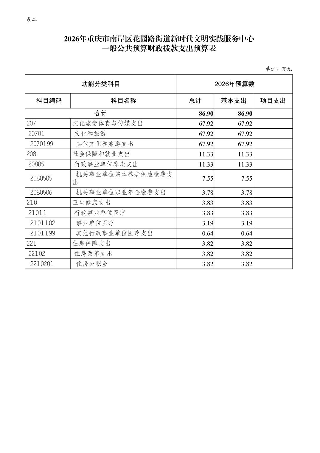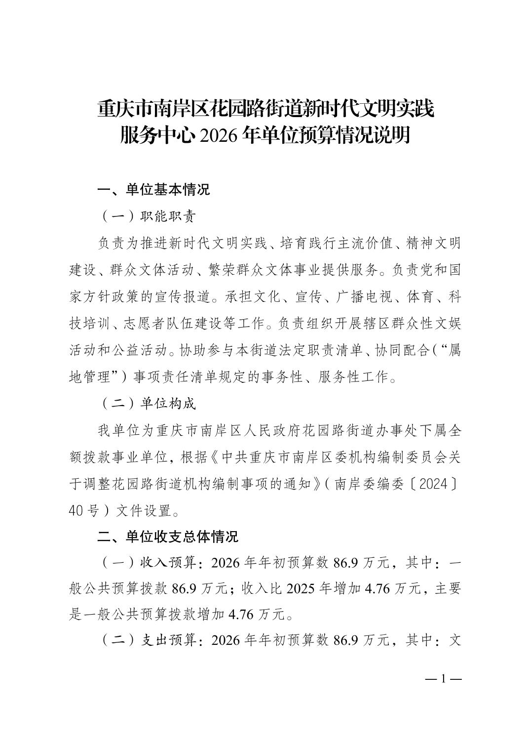 重庆市南岸区花园路街道新时代文明实践服务中心2026年单位预算情况说明