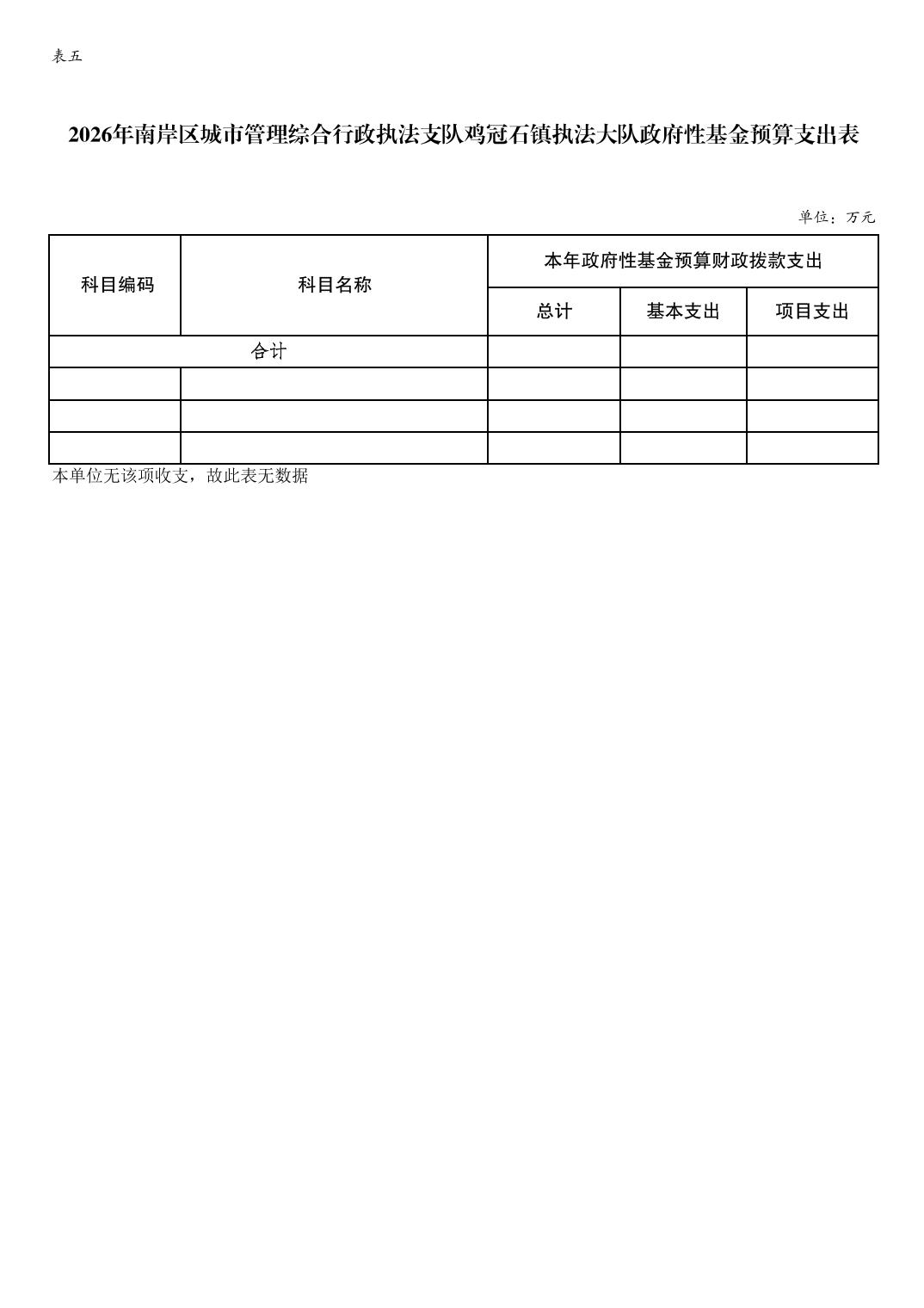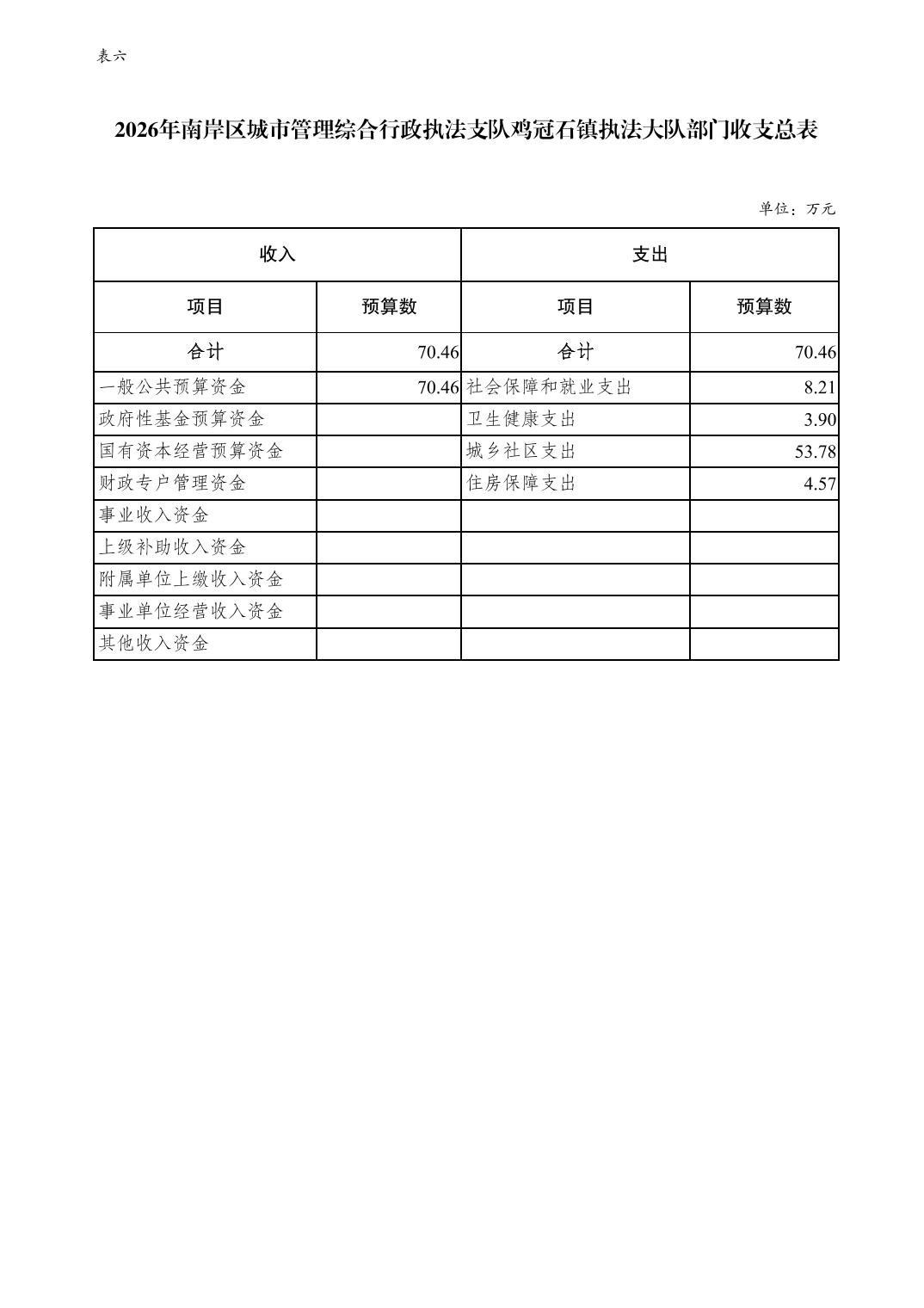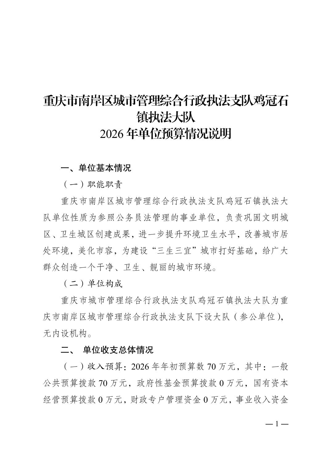 重庆市南岸区城市管理综合行政执法支队鸡冠石镇执法大队2026年单位预算情况说明