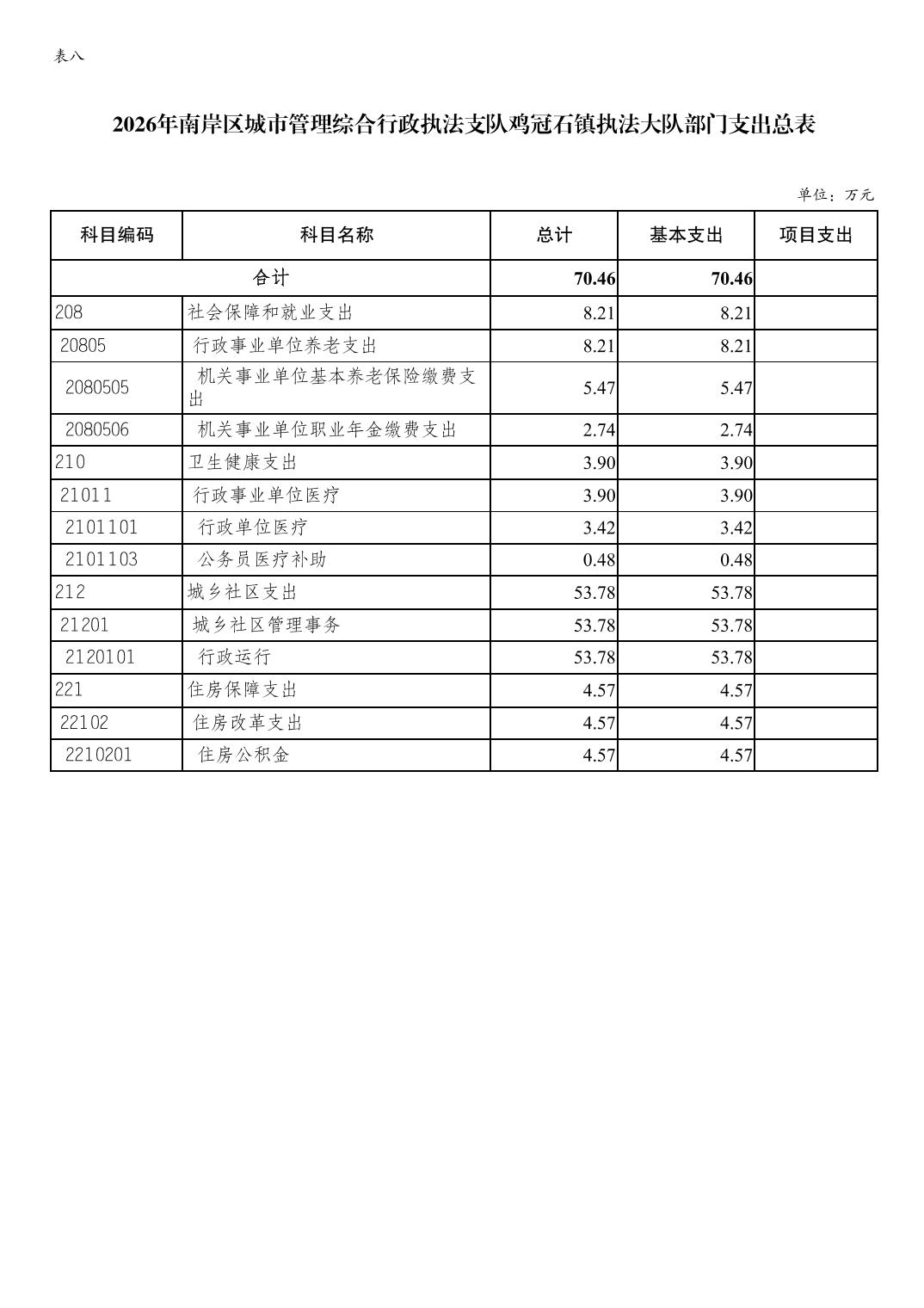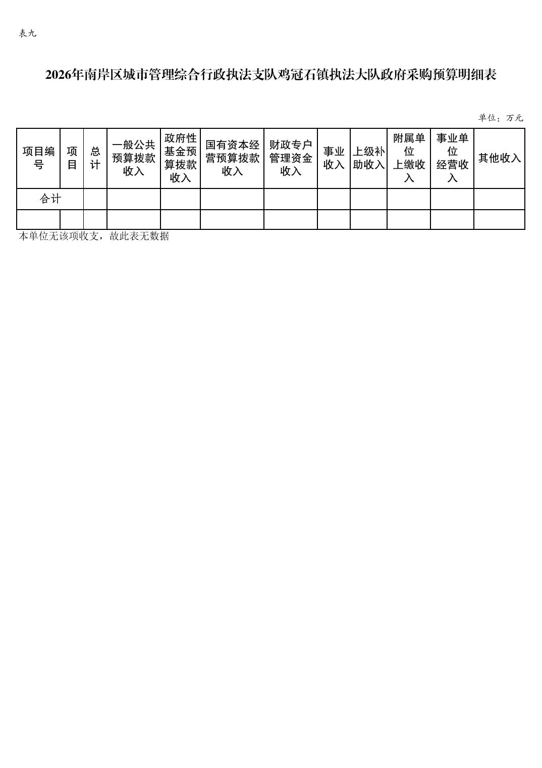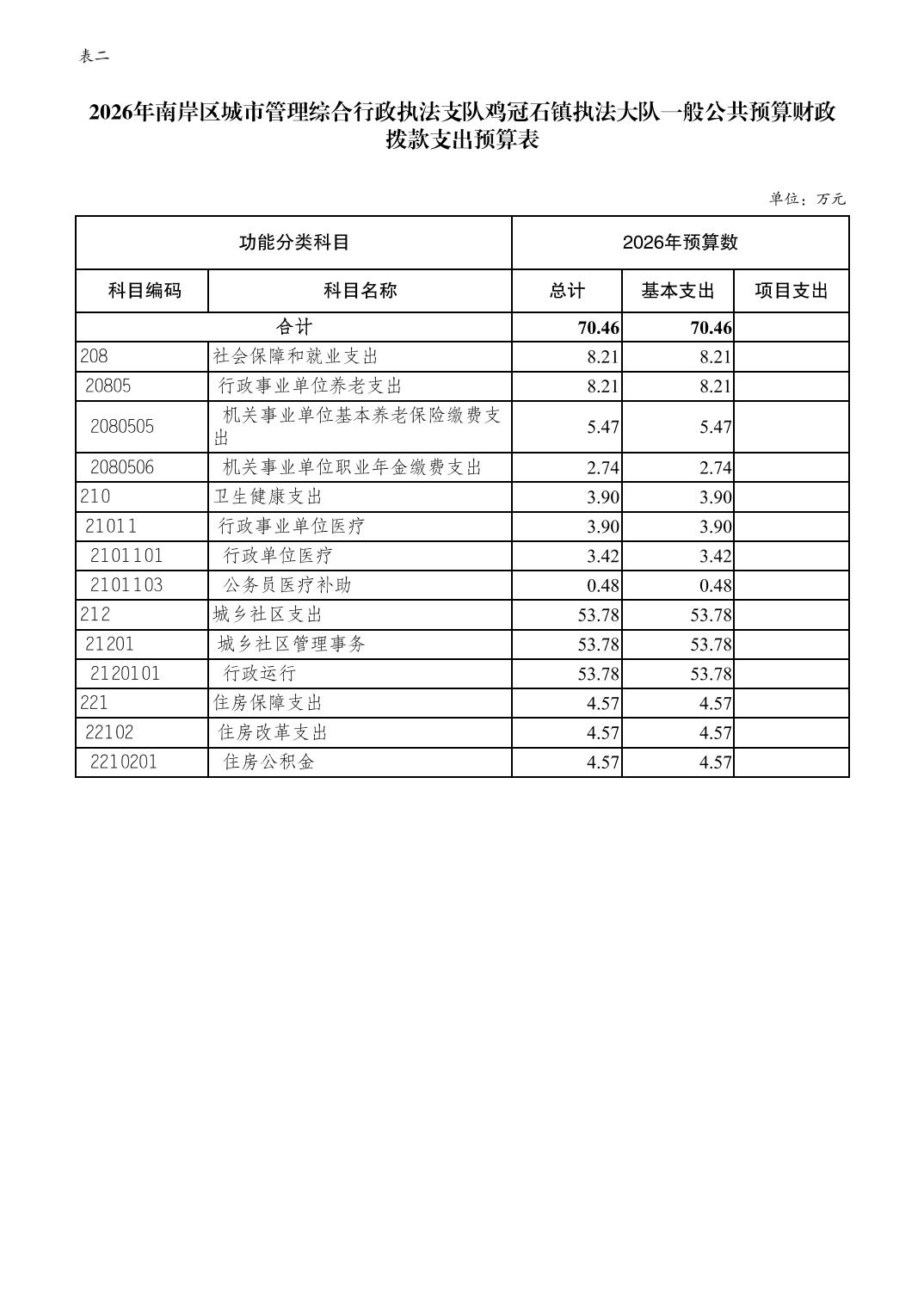 重庆市南岸区城市管理综合行政执法支队鸡冠石镇执法大队2026年单位预算情况说明