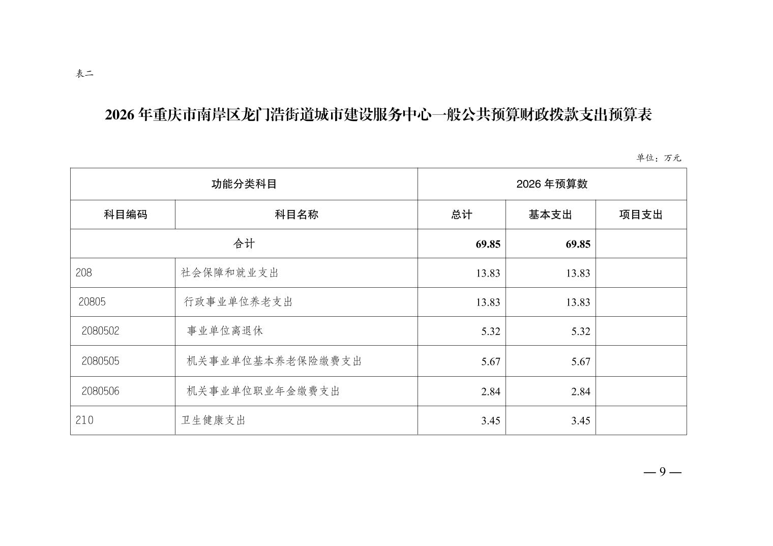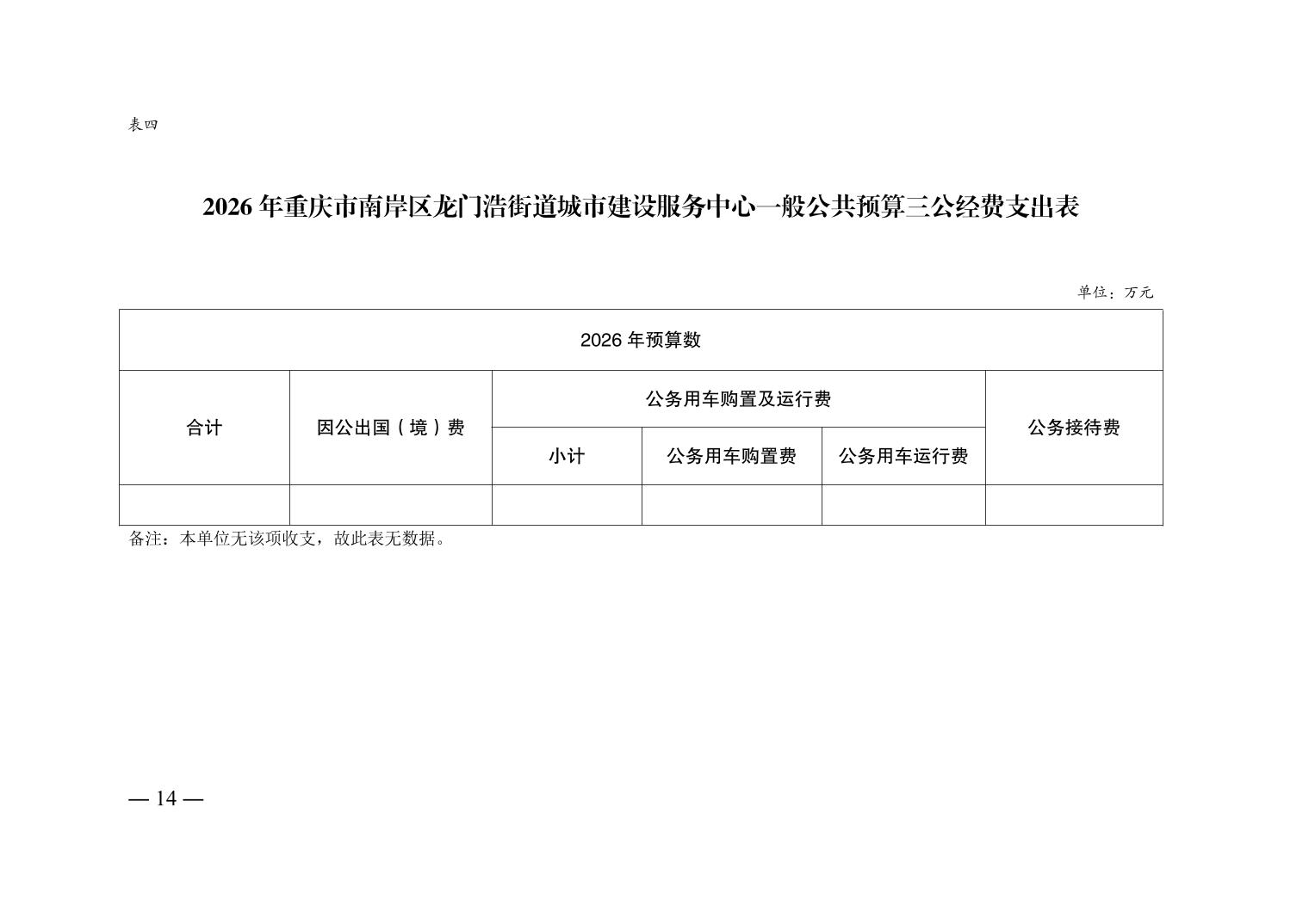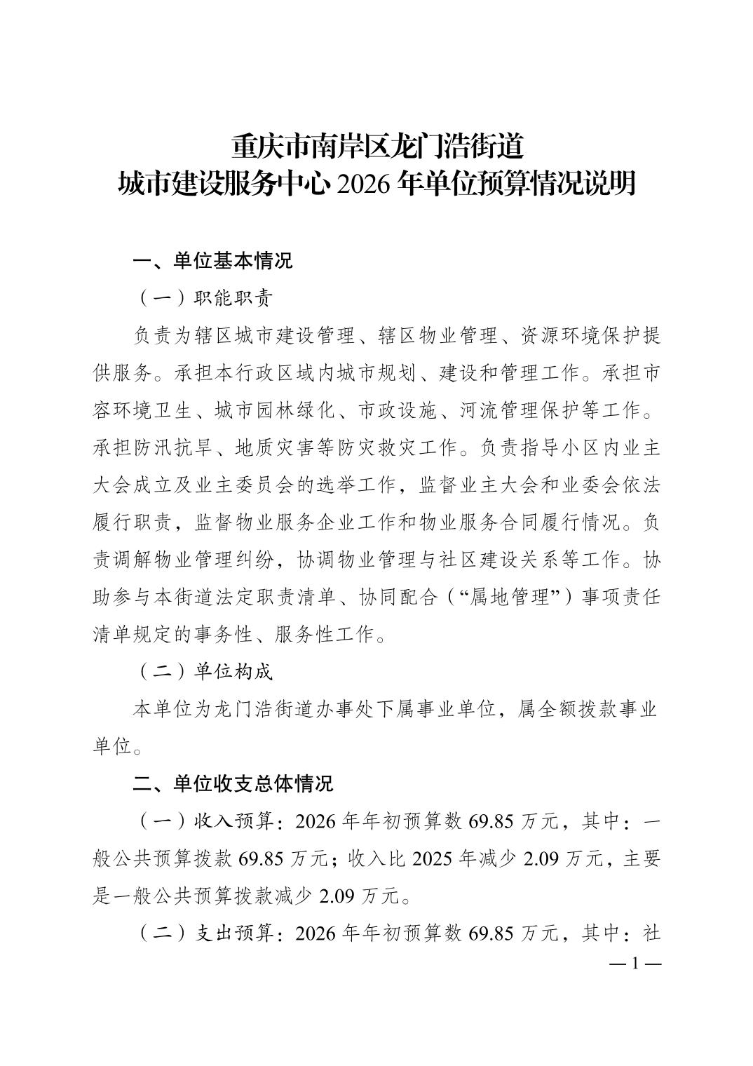 重庆市南岸区龙门浩街道城市建设服务中心2026年单位预算情况说明