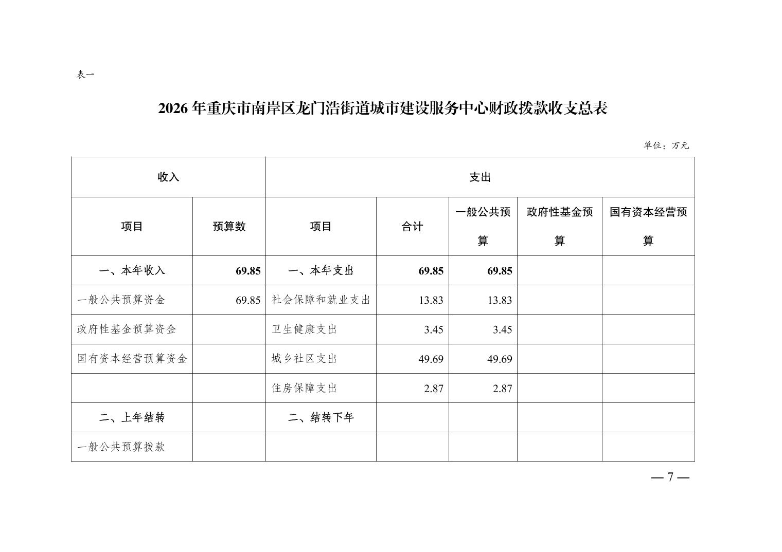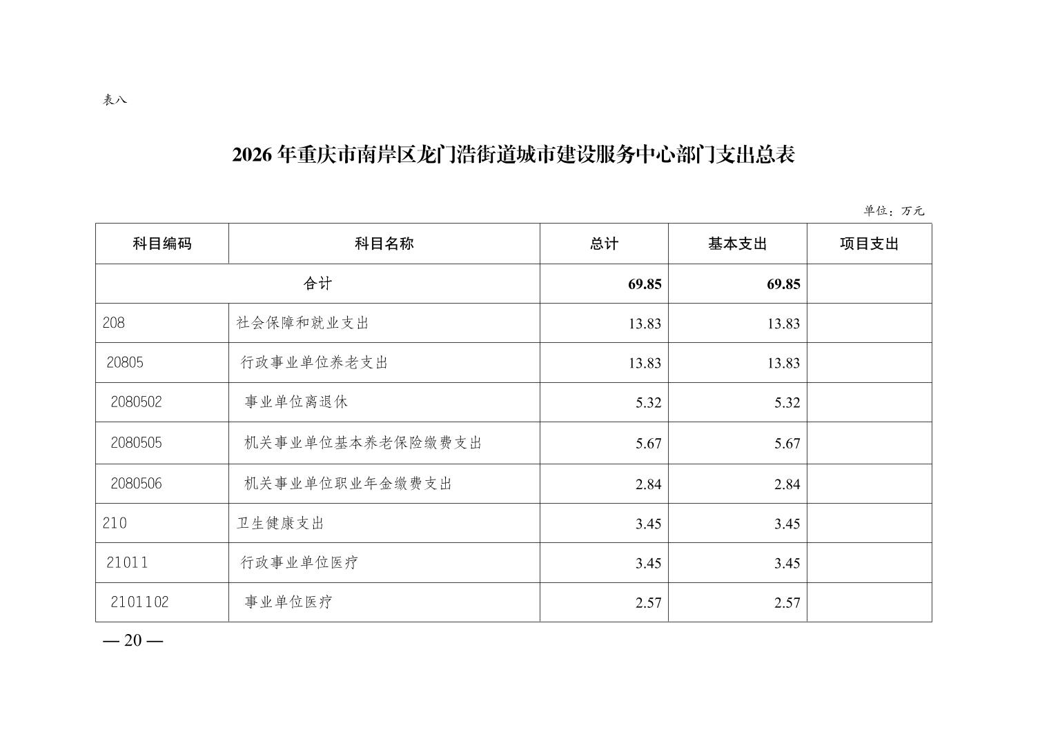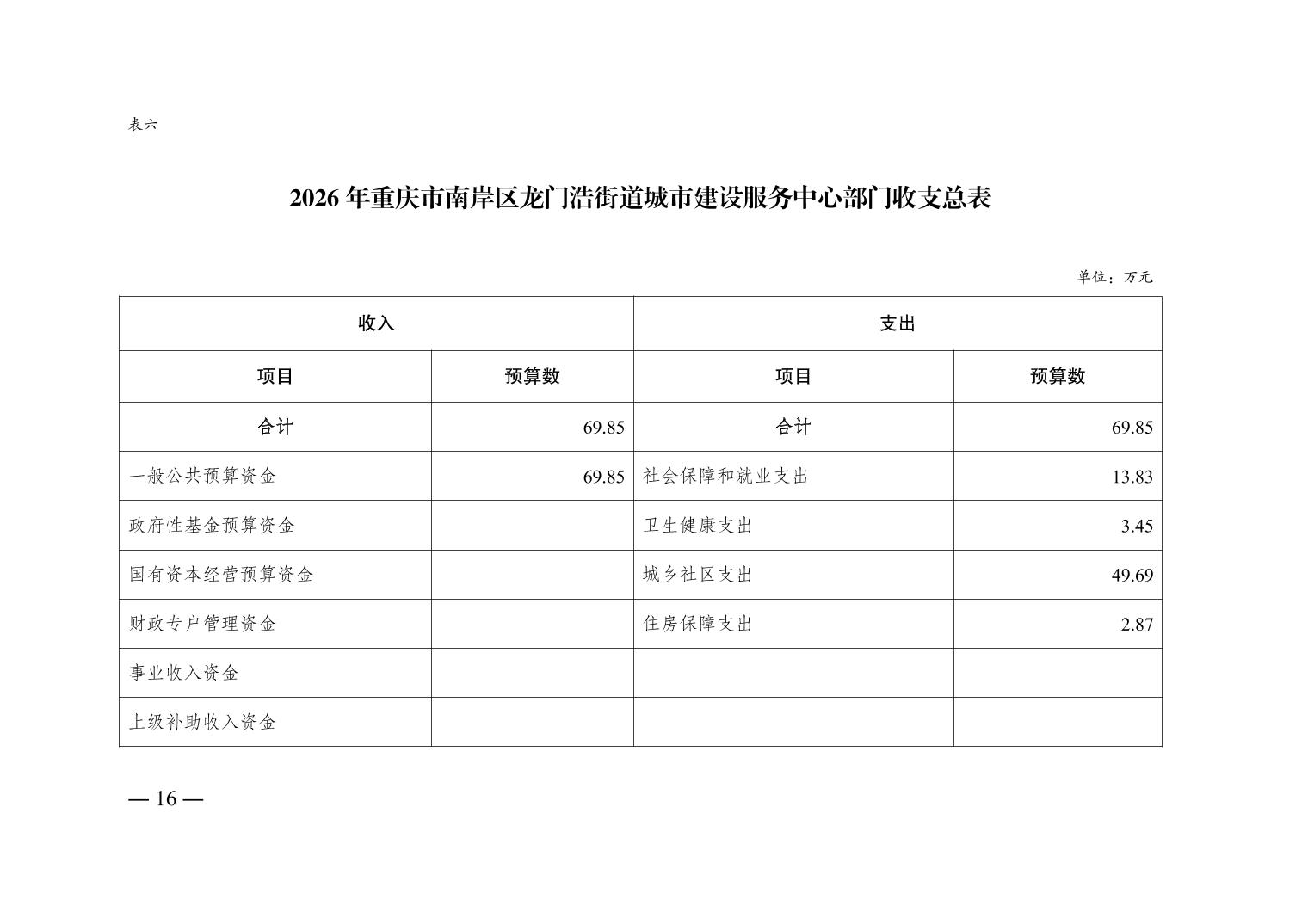 重庆市南岸区龙门浩街道城市建设服务中心2026年单位预算情况说明