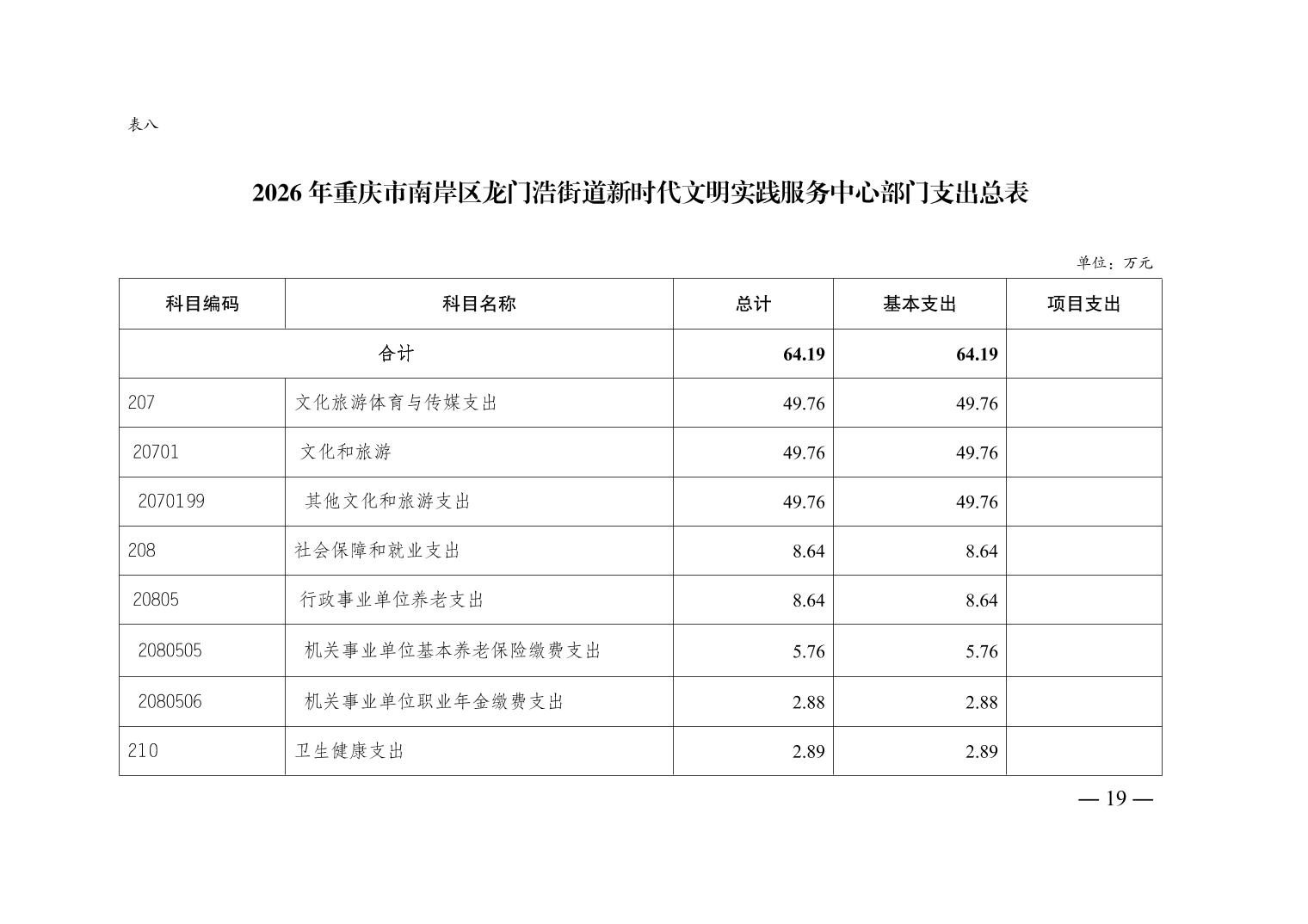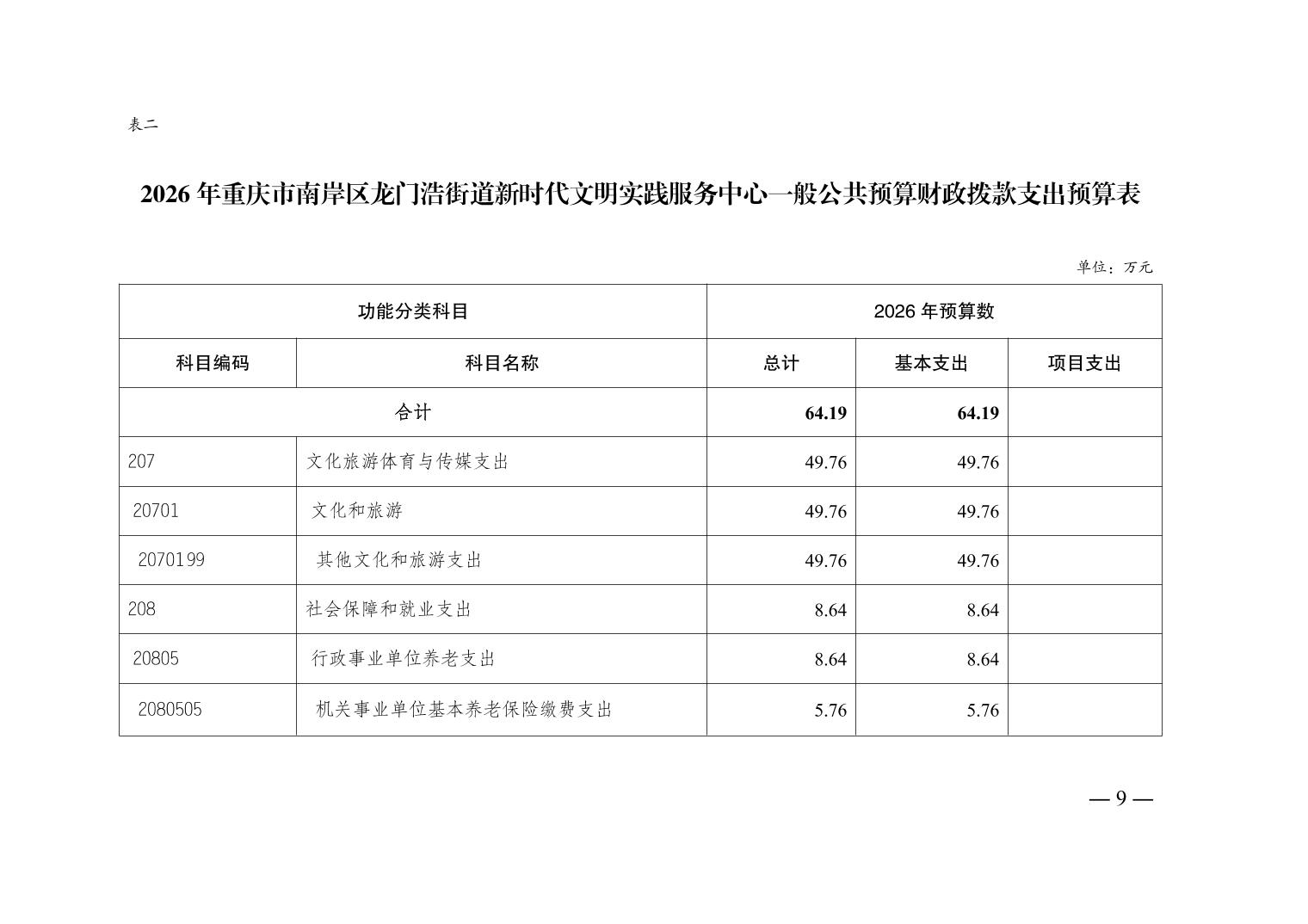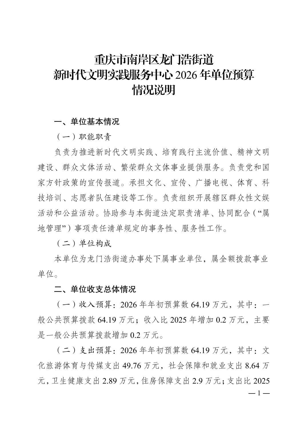 重庆市南岸区龙门浩街道新时代文明实践服务中心2026年单位预算情况说明