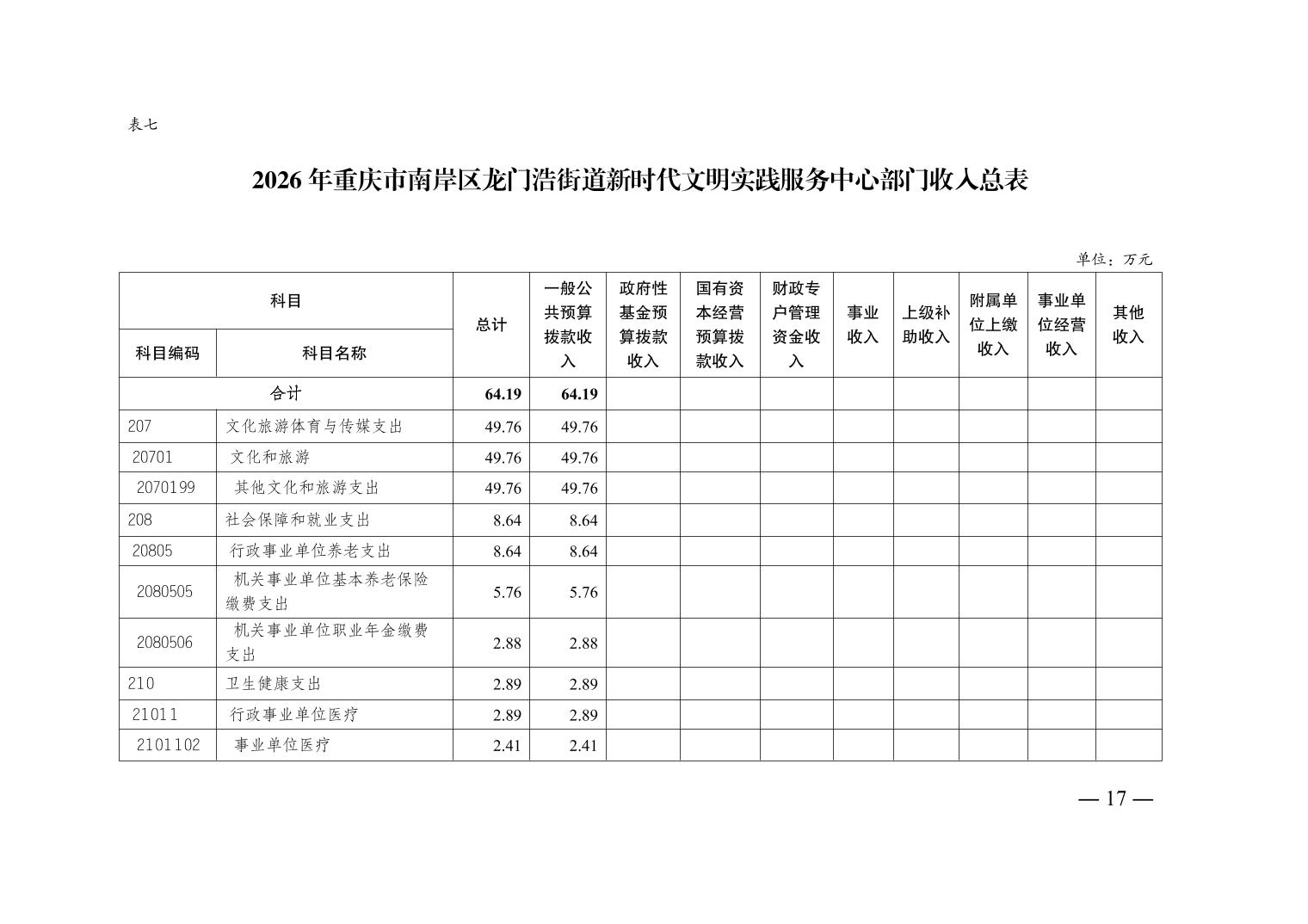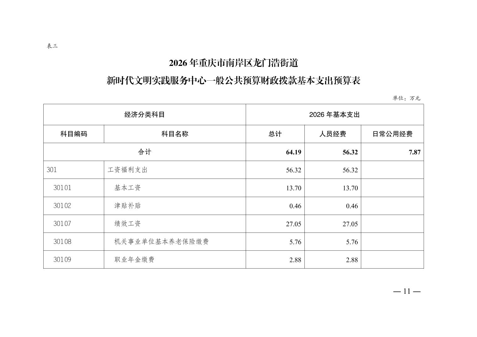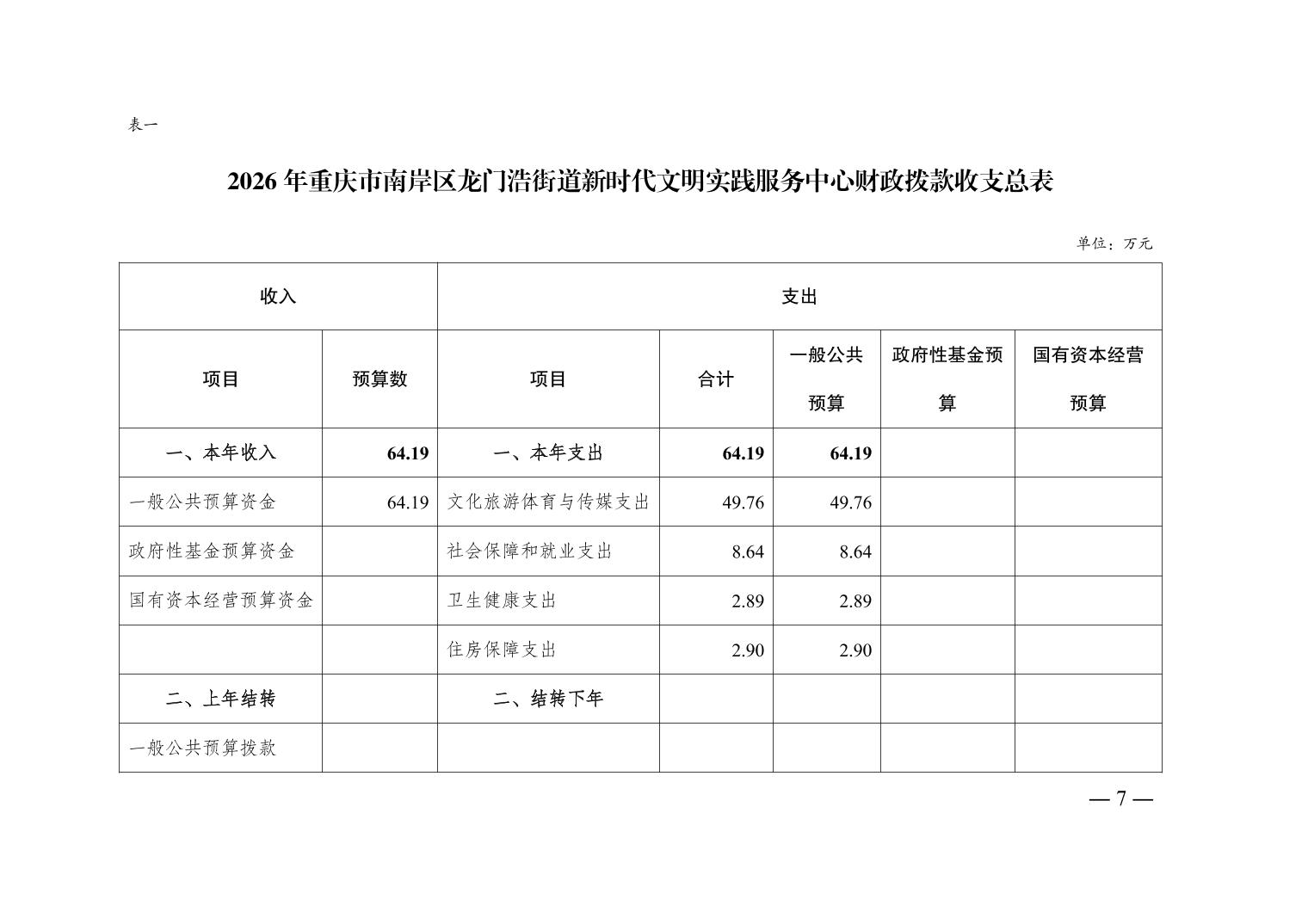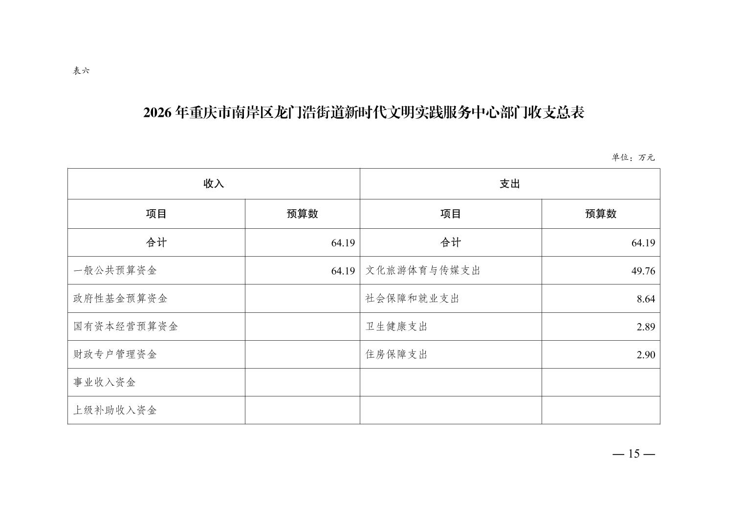 重庆市南岸区龙门浩街道新时代文明实践服务中心2026年单位预算情况说明