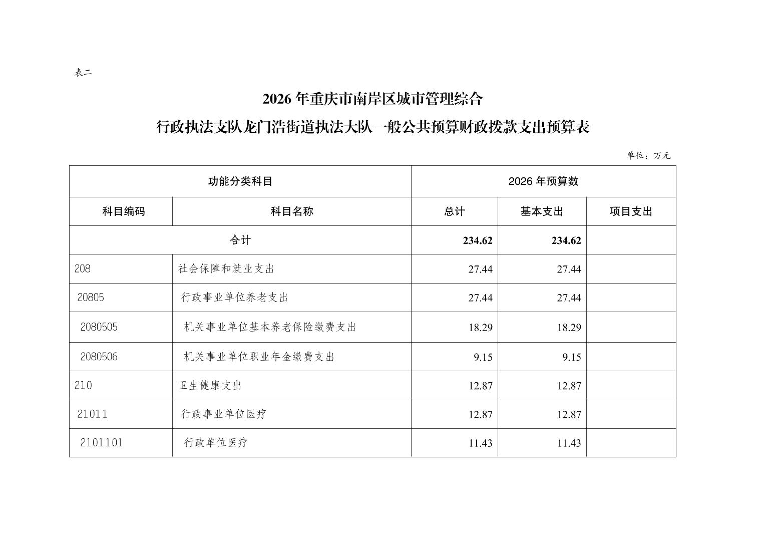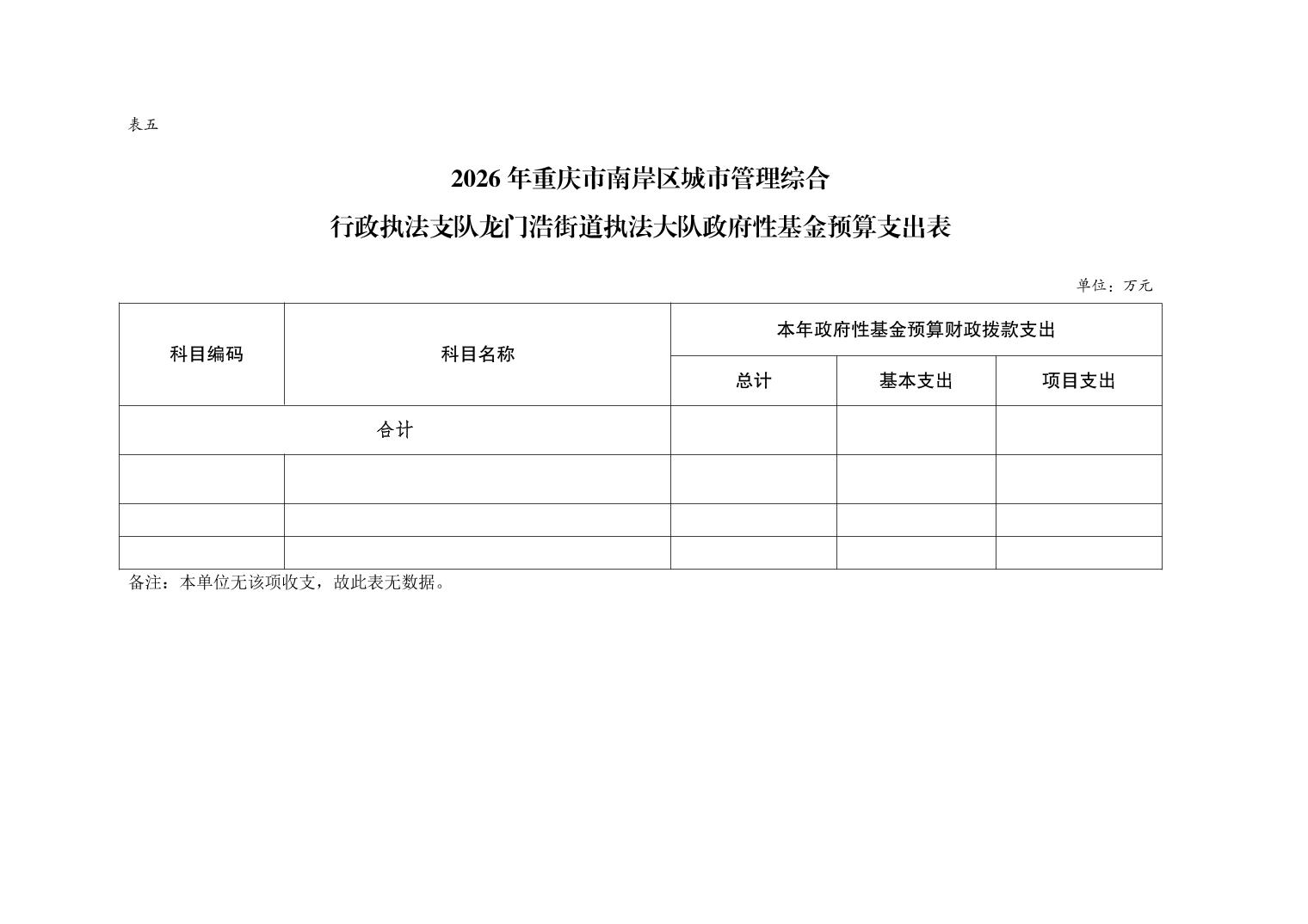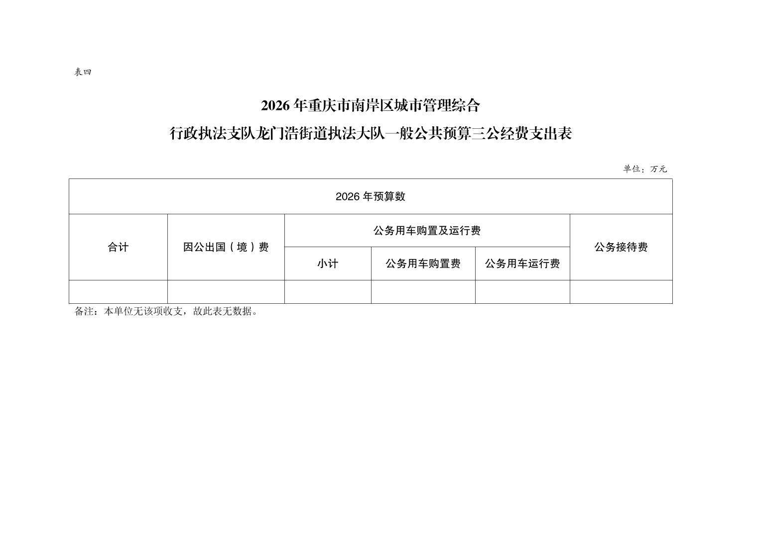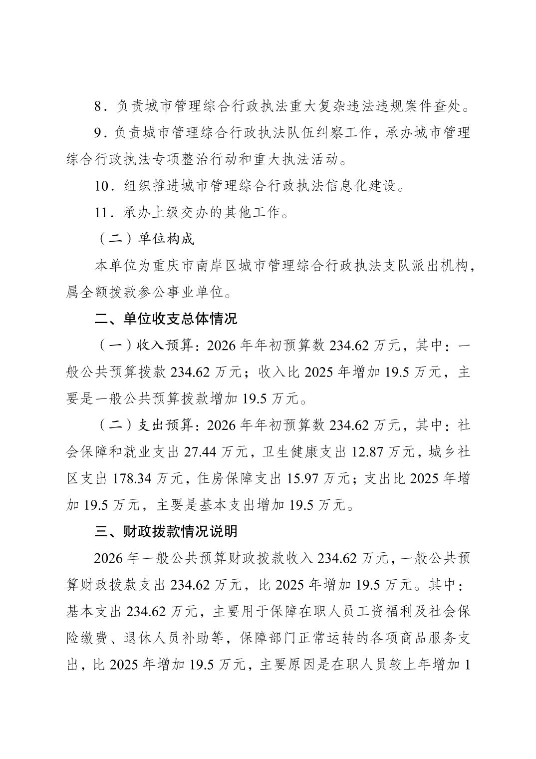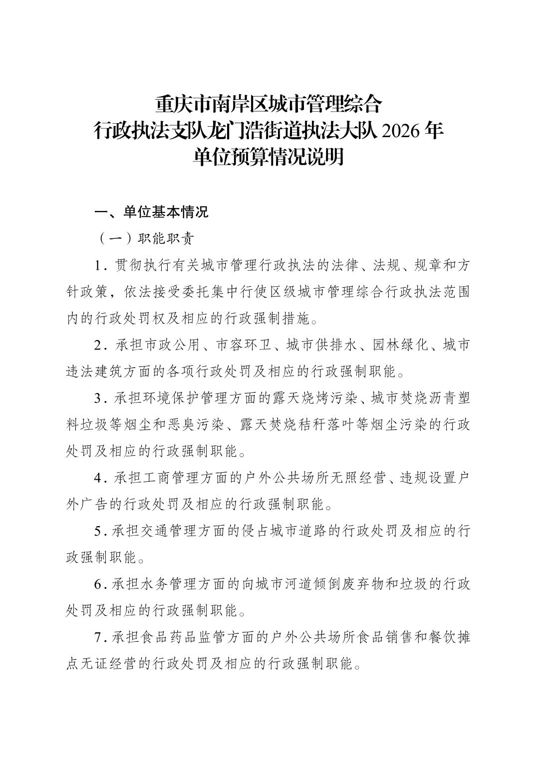 重庆市南岸区城市管理综合行政执法支队龙门浩街道执法大队2026年单位预算情况说明