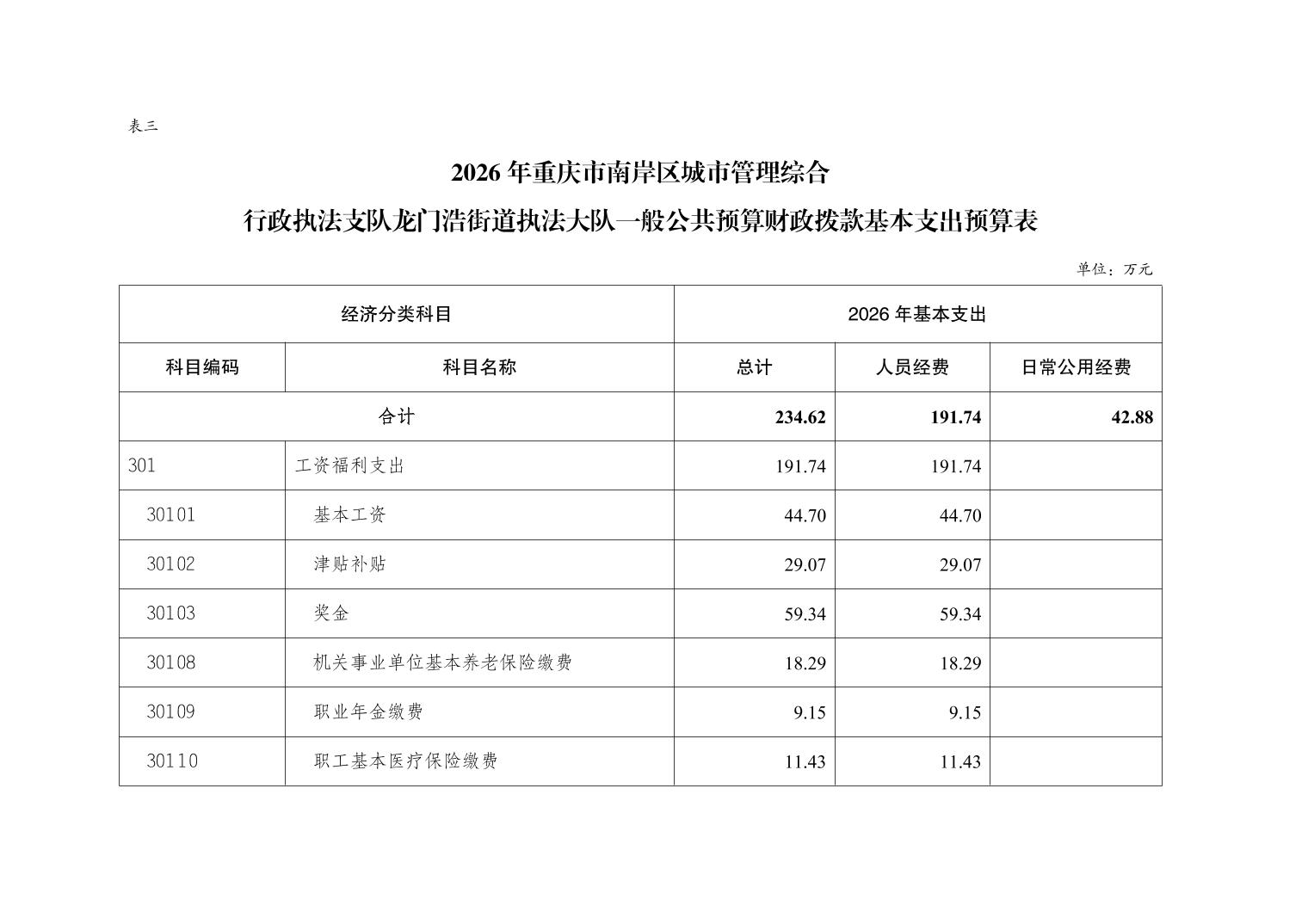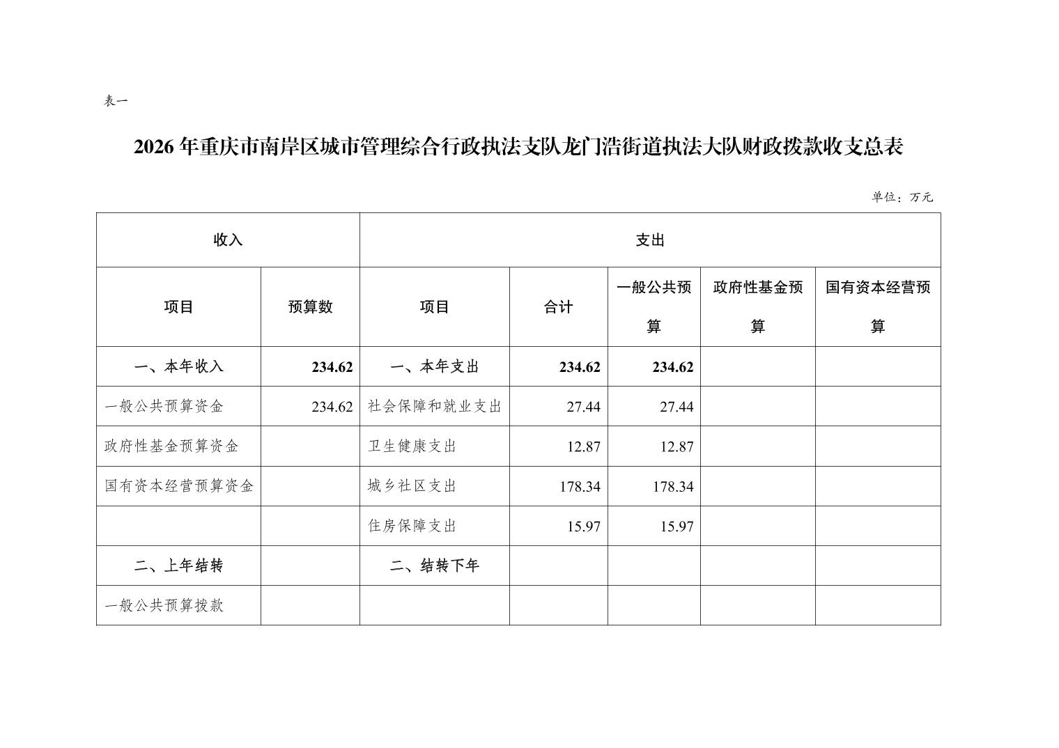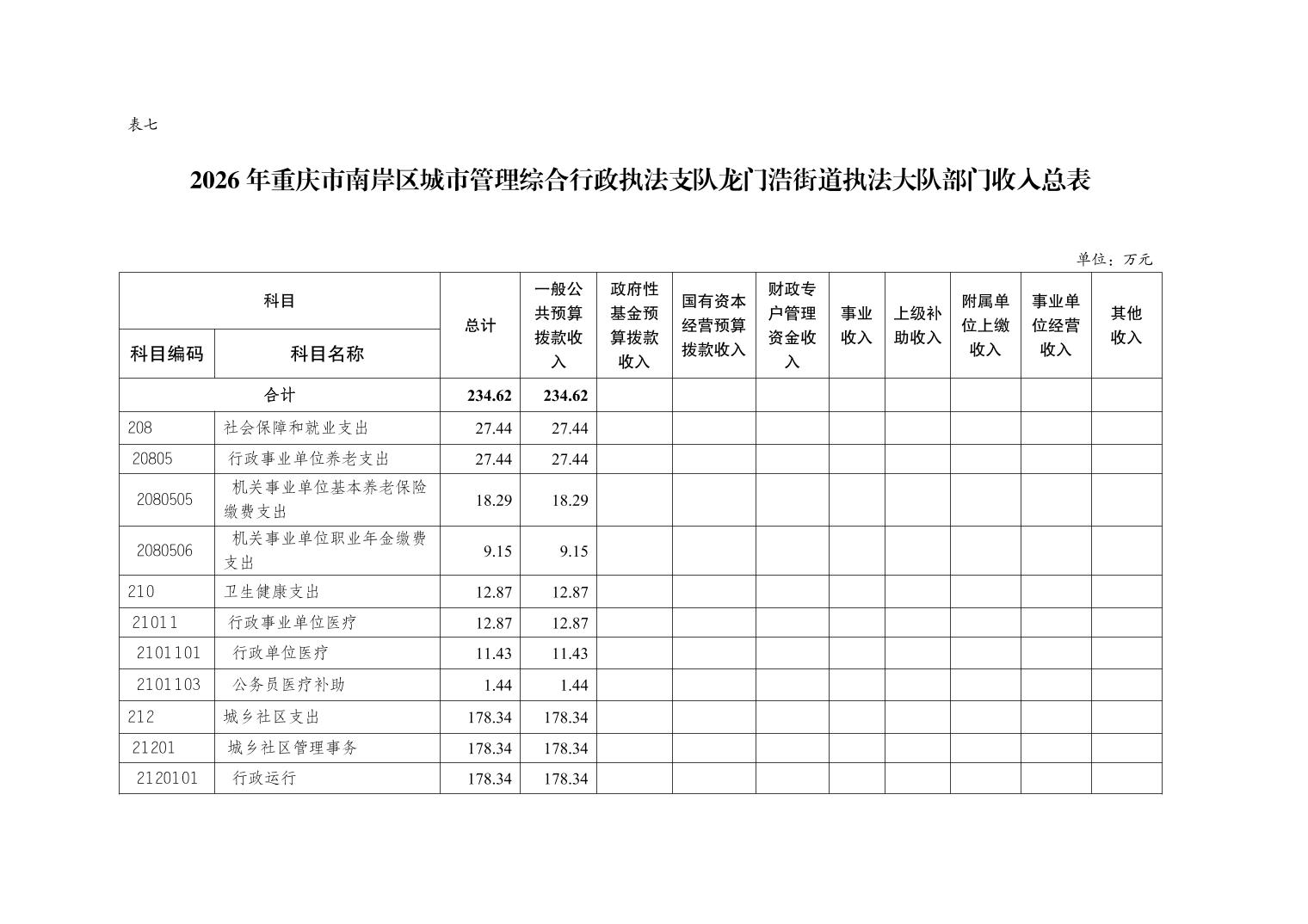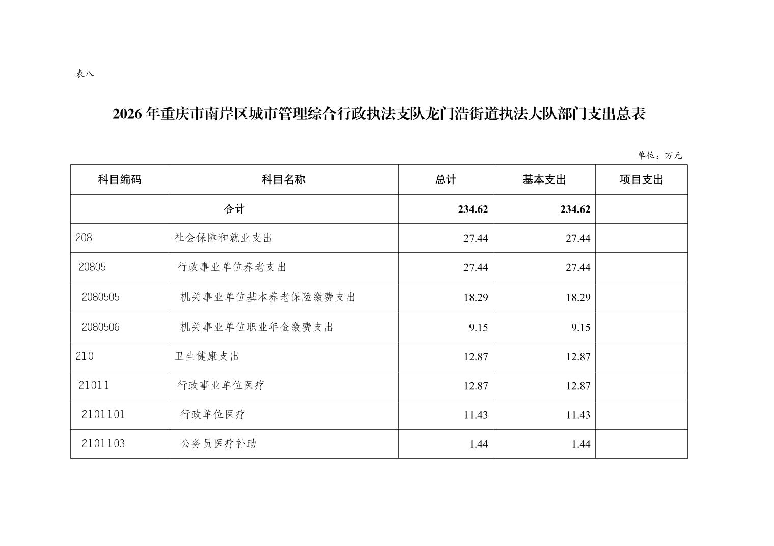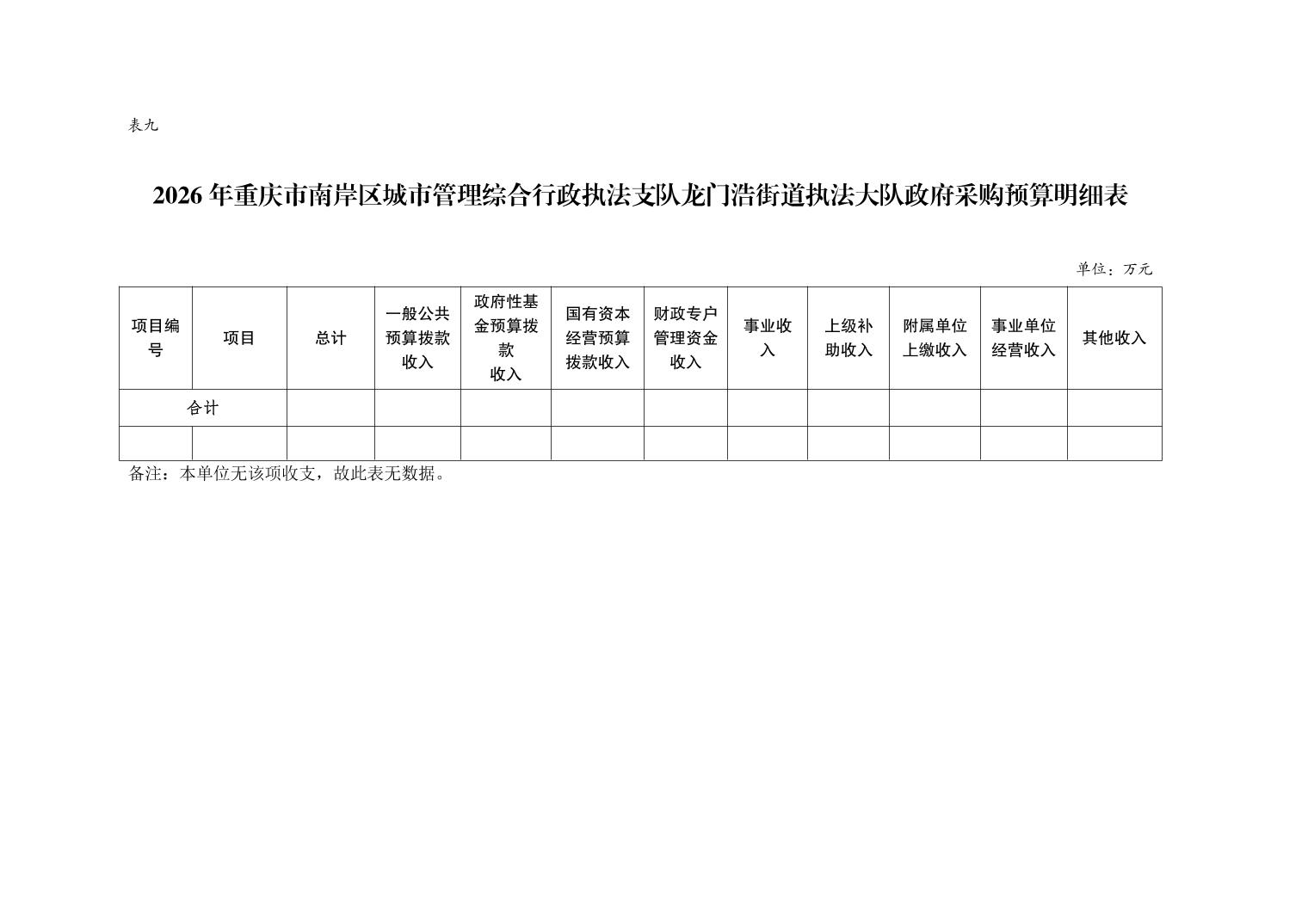 重庆市南岸区城市管理综合行政执法支队龙门浩街道执法大队2026年单位预算情况说明