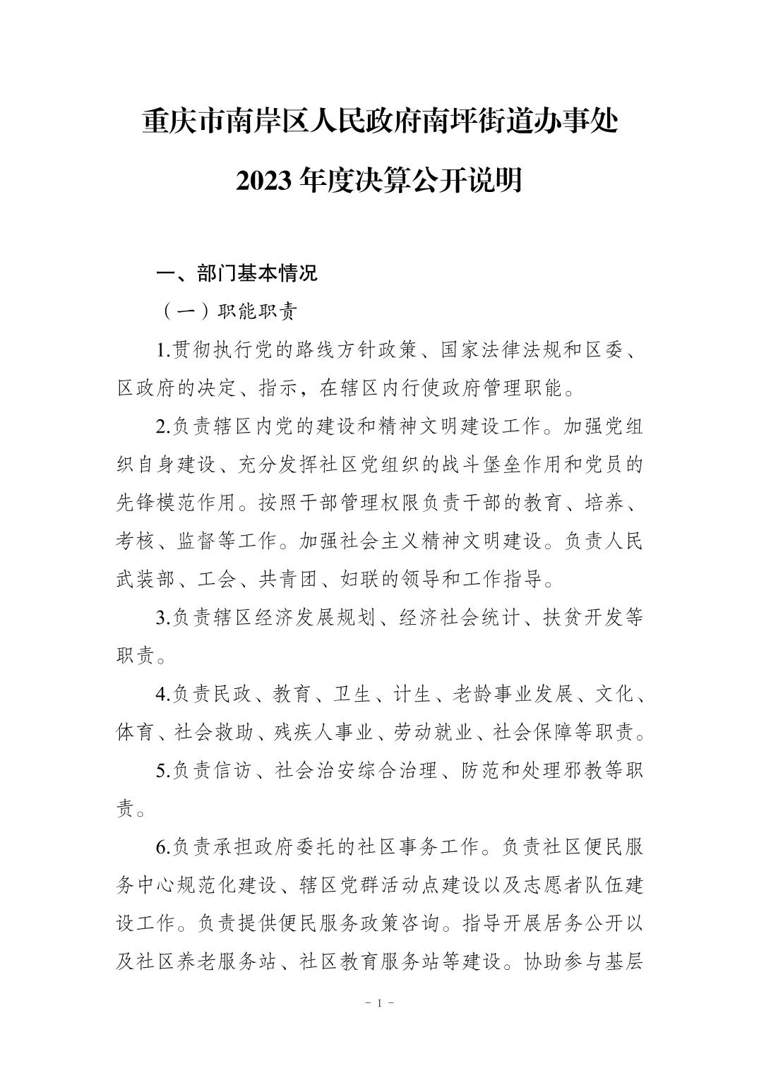 重庆市南岸区人民政府南坪街道办事处2023年度决算公开说明