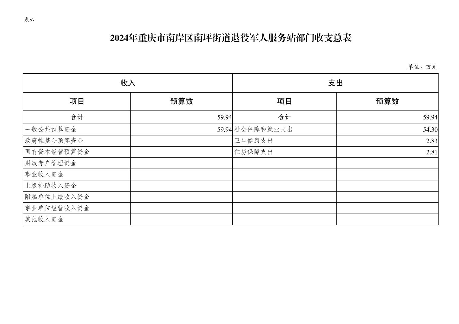 重庆市南岸区南坪街道退役军人服务站2024年单位预算情况说明