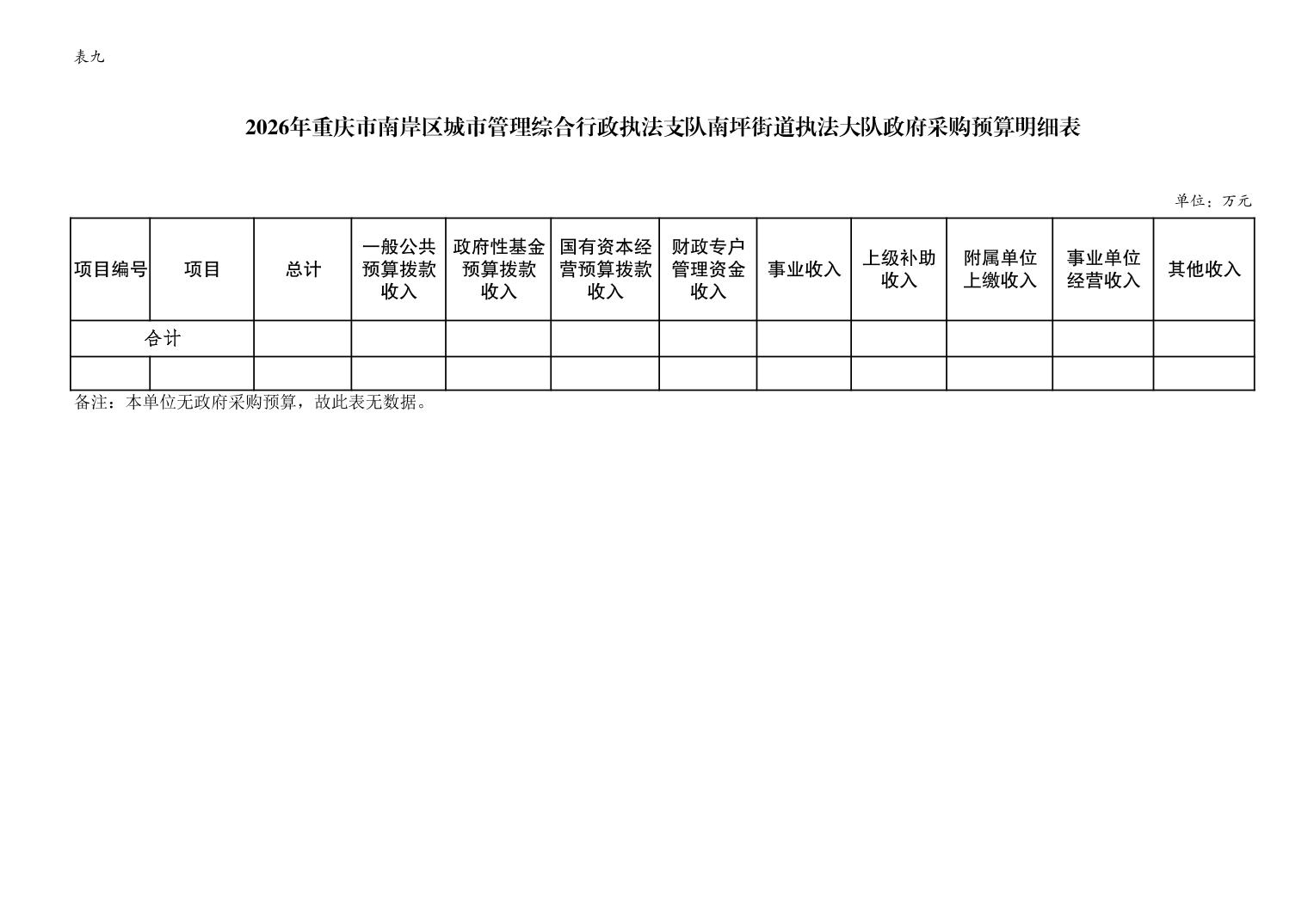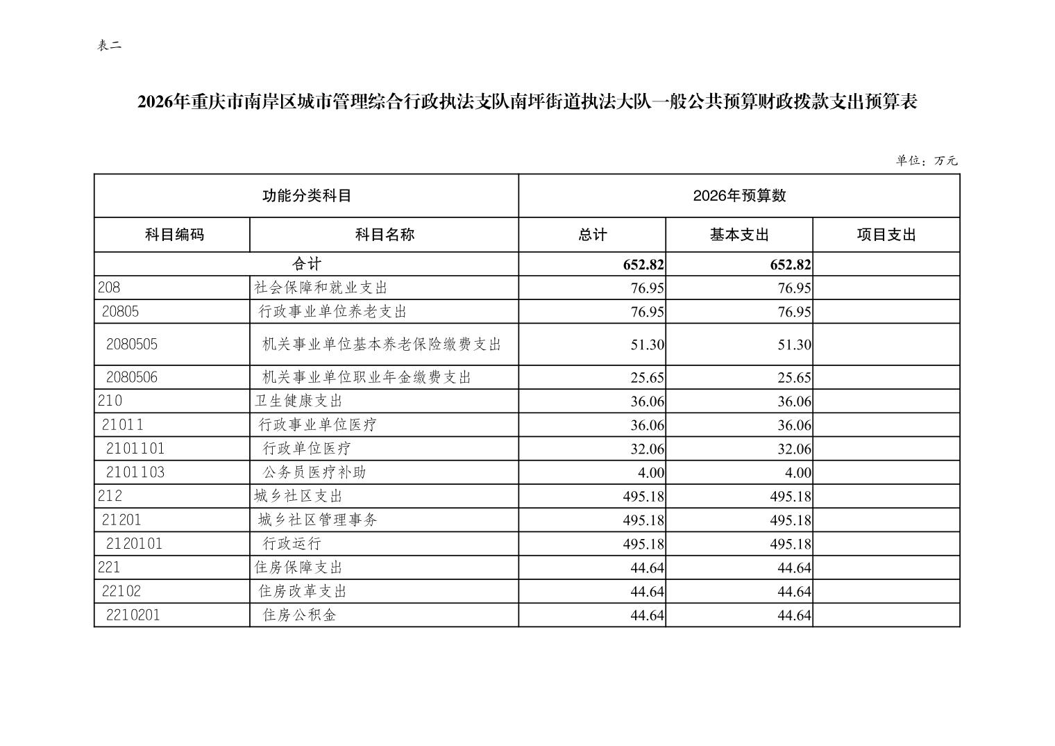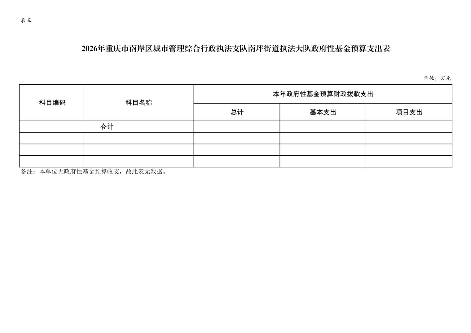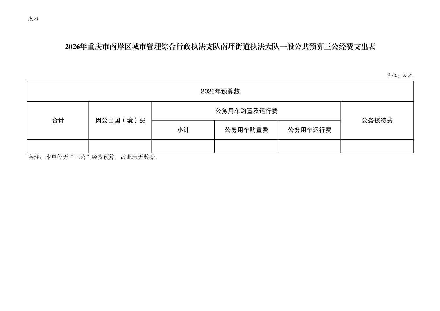 重庆市南岸区城市管理综合行政执法支队南坪街道执法大队2026年单位预算情况说明