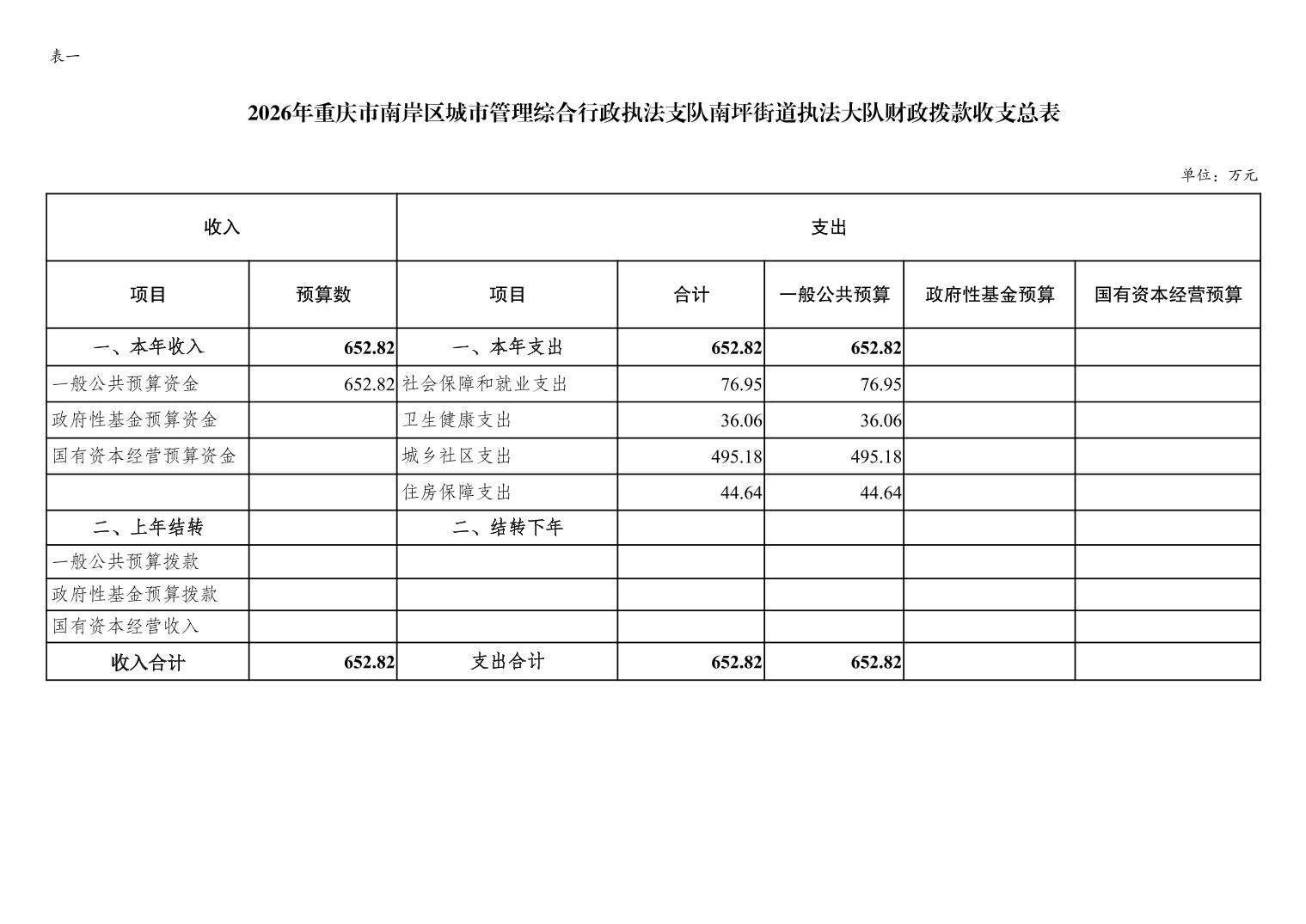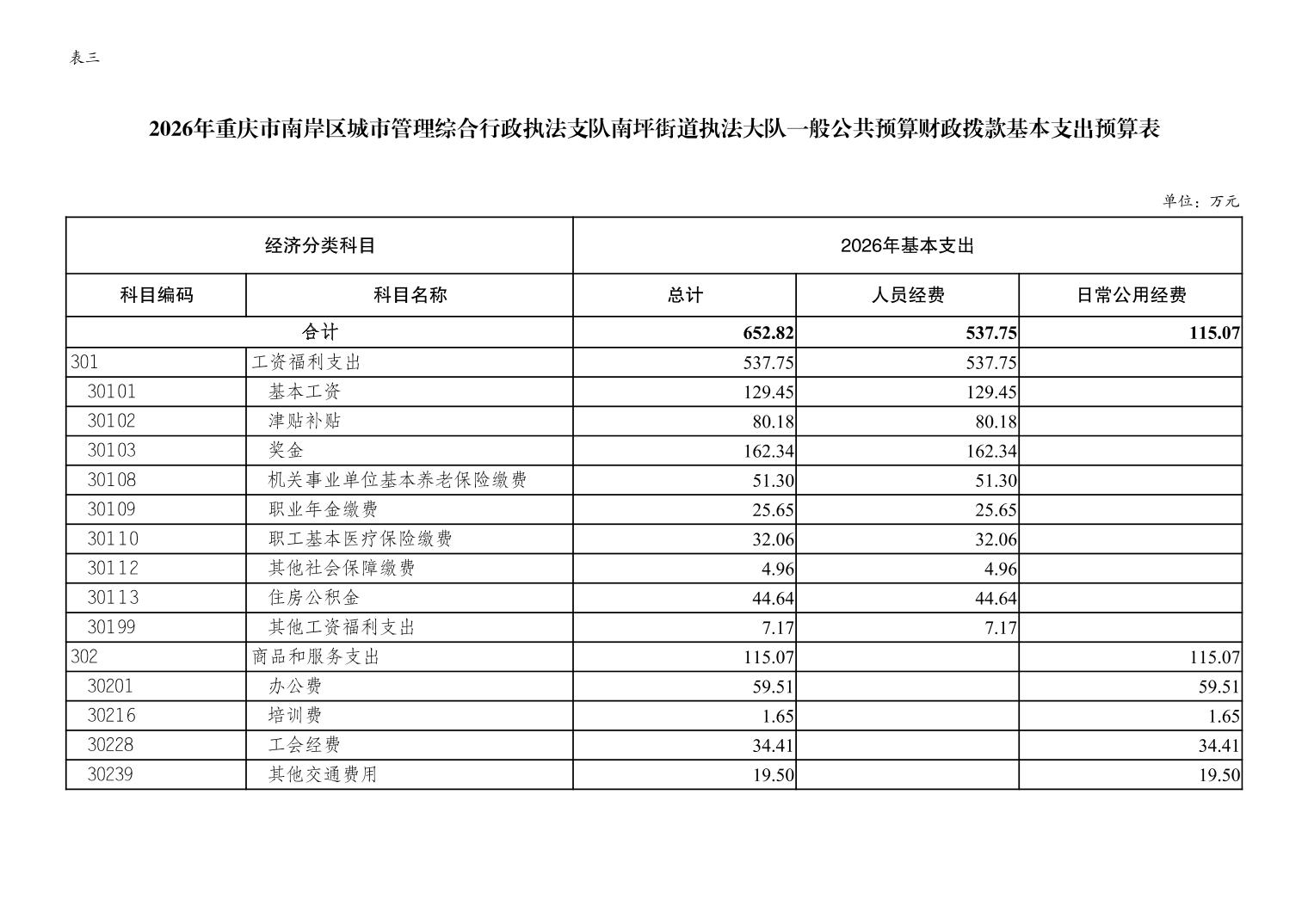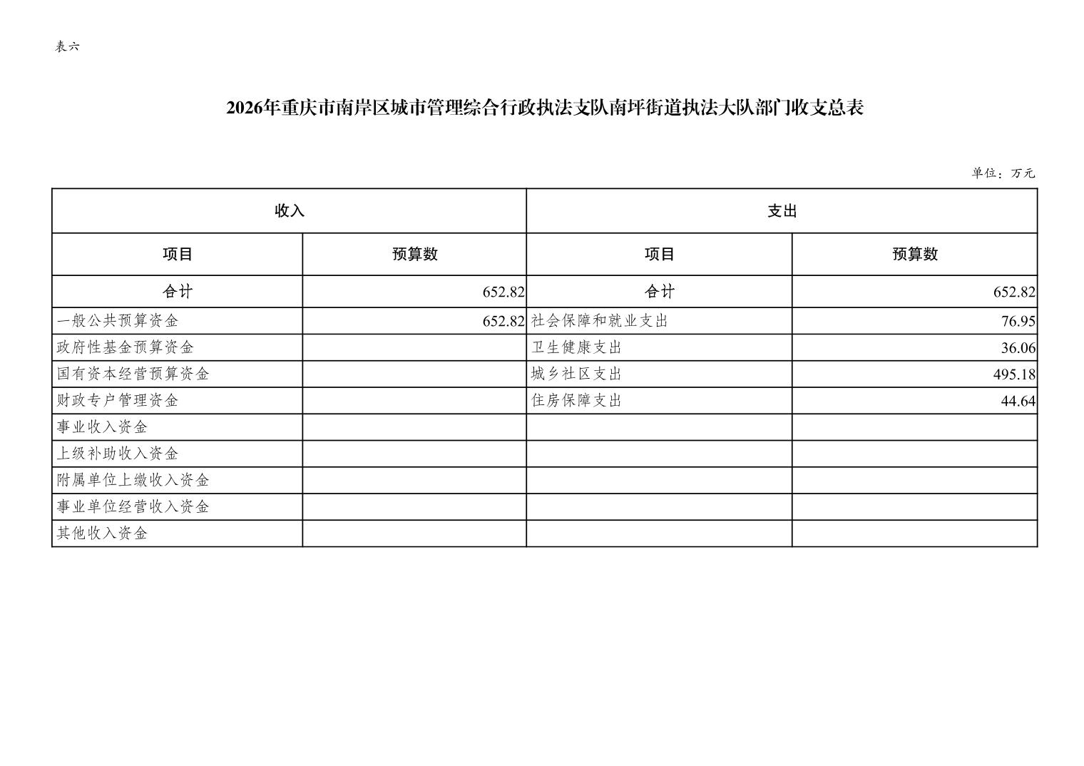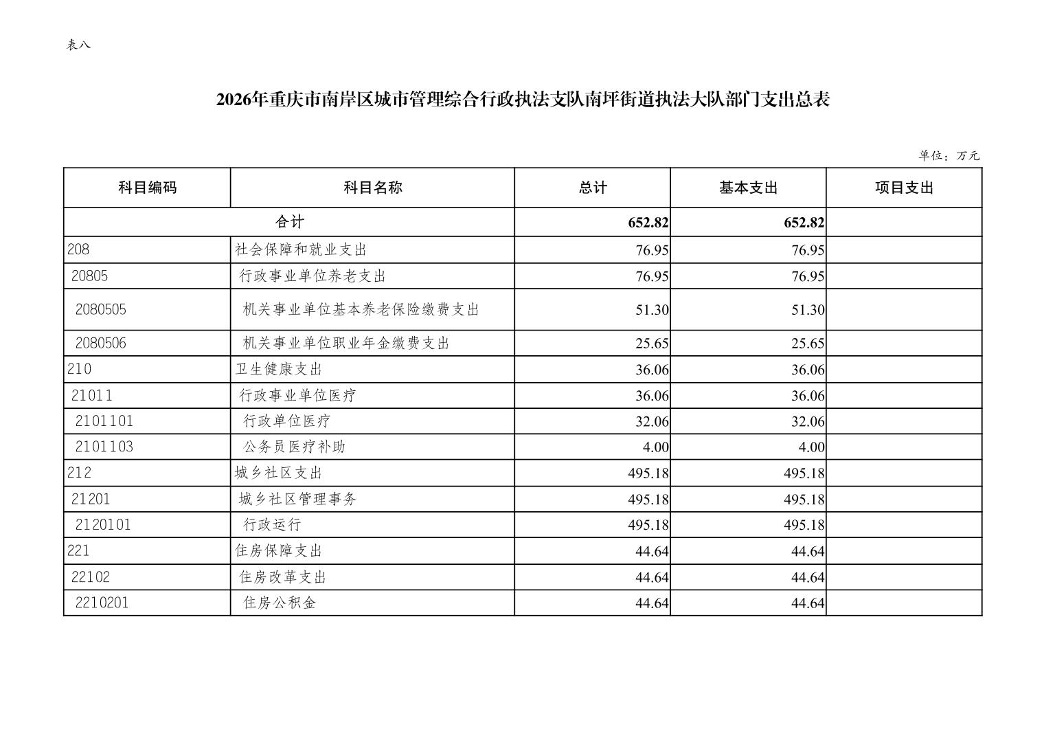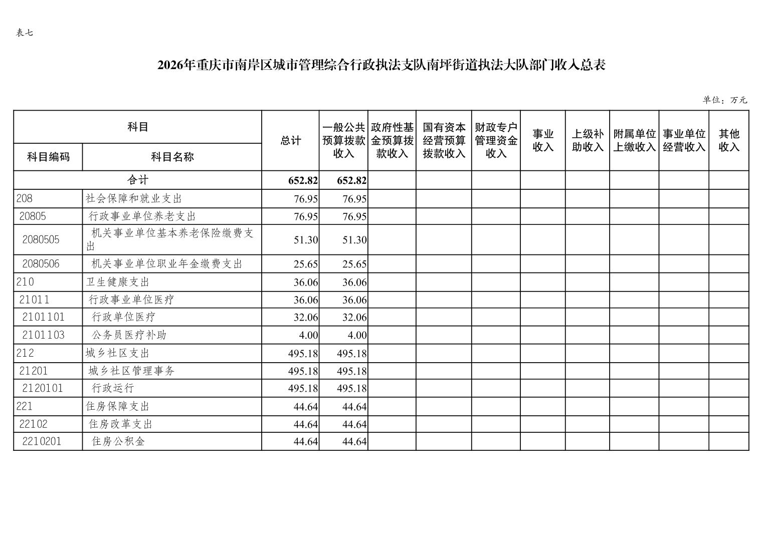 重庆市南岸区城市管理综合行政执法支队南坪街道执法大队2026年单位预算情况说明