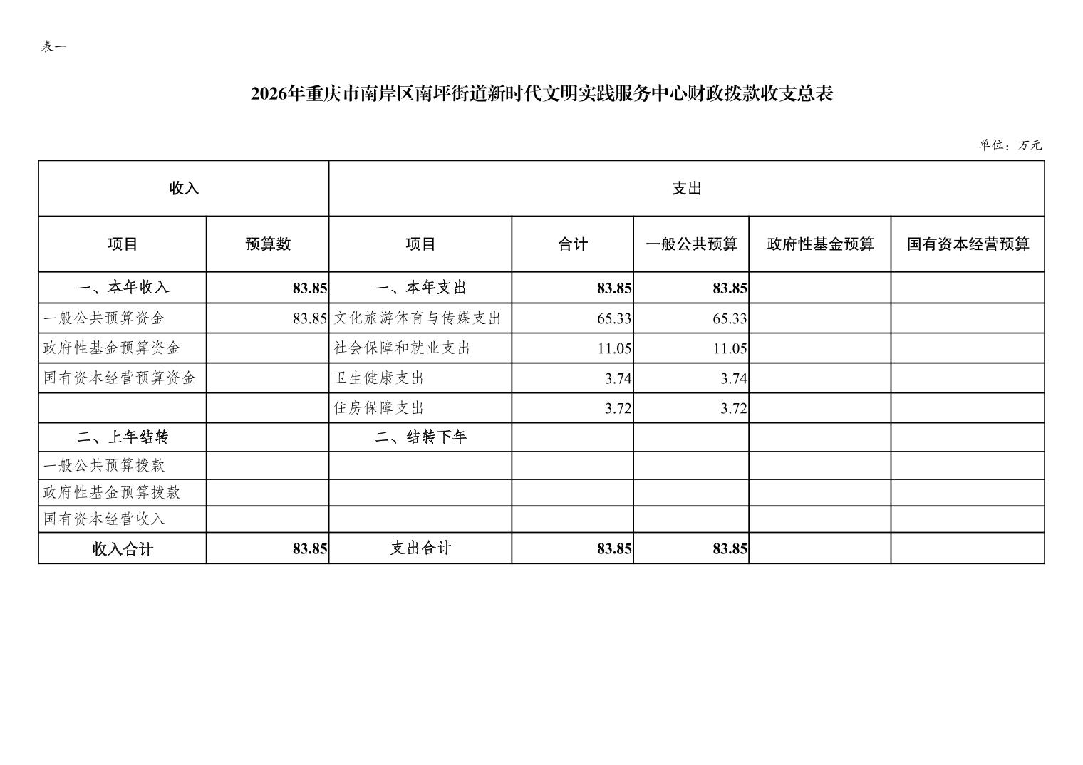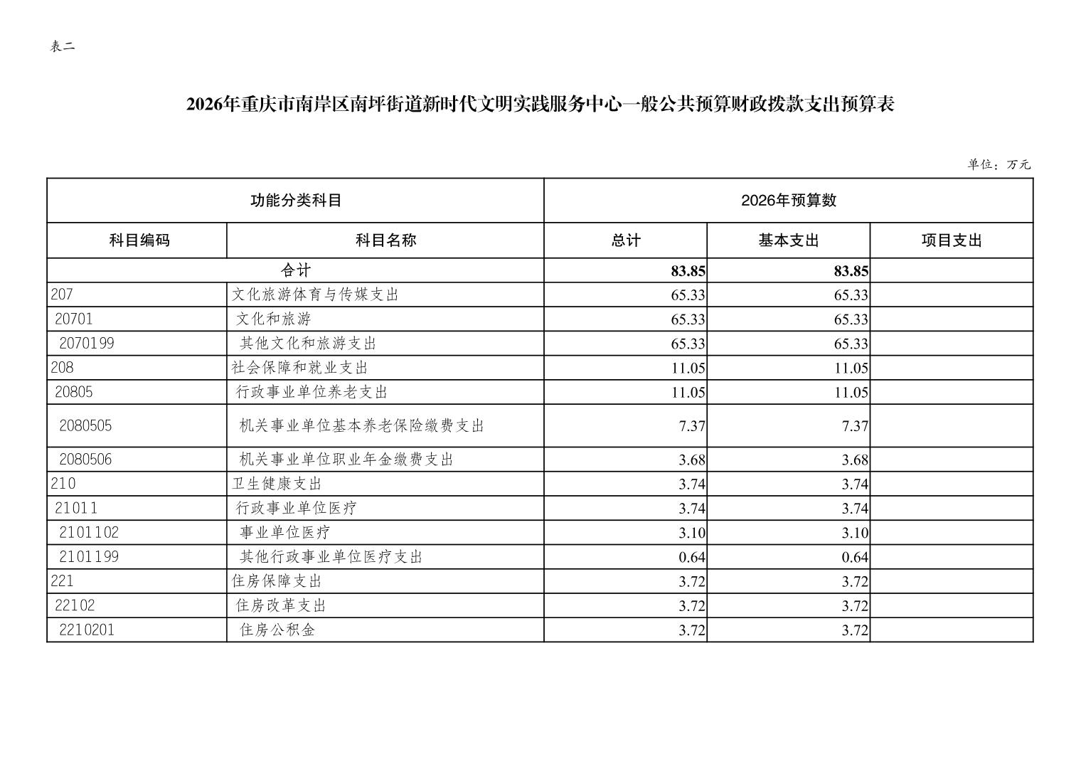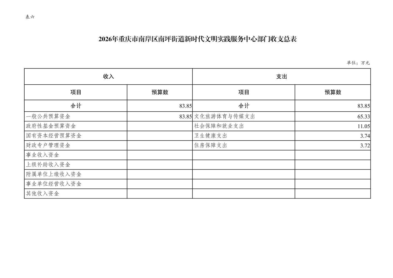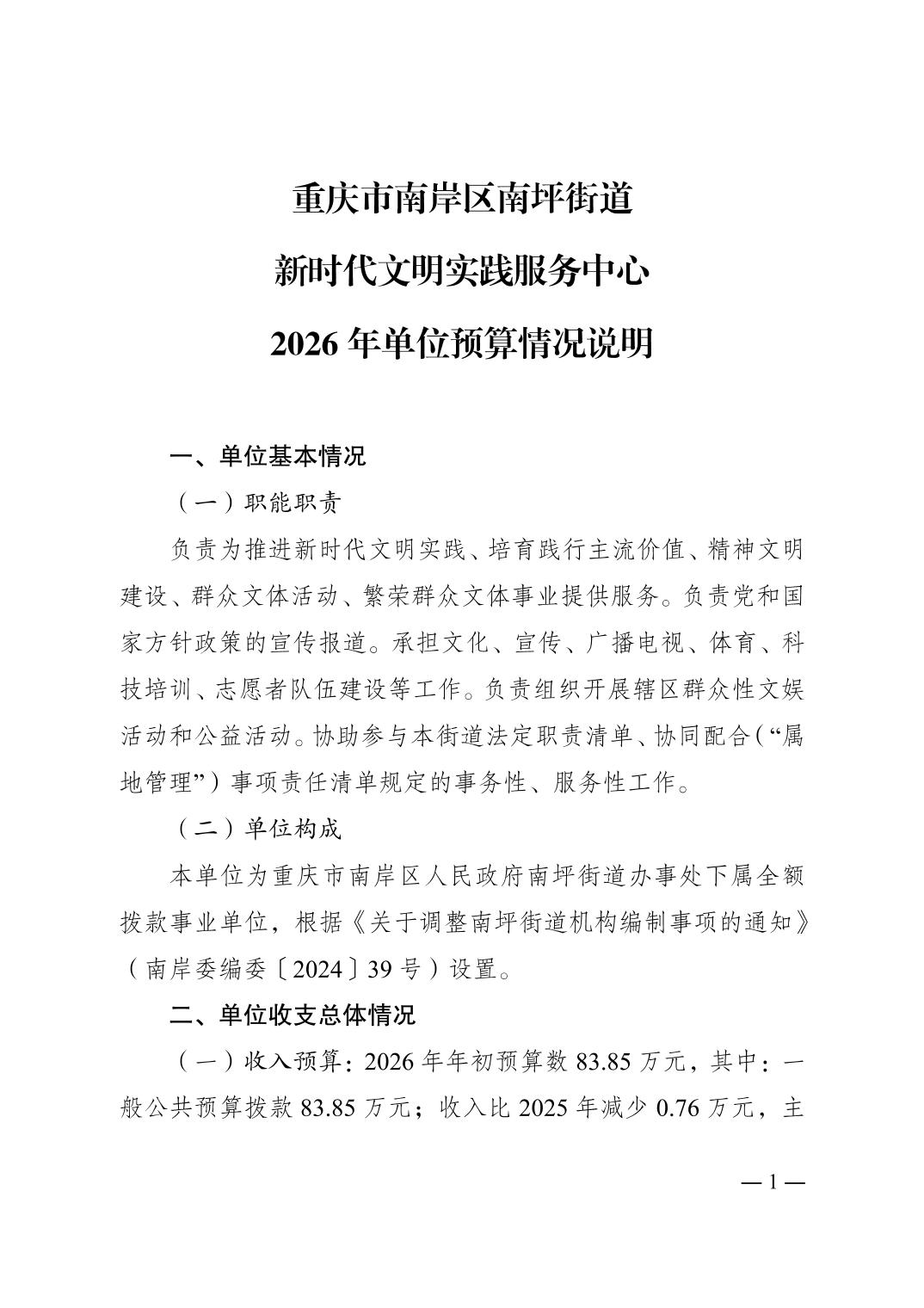 重庆市南岸区南坪街道新时代文明实践服务中心2026年单位预算情况说明