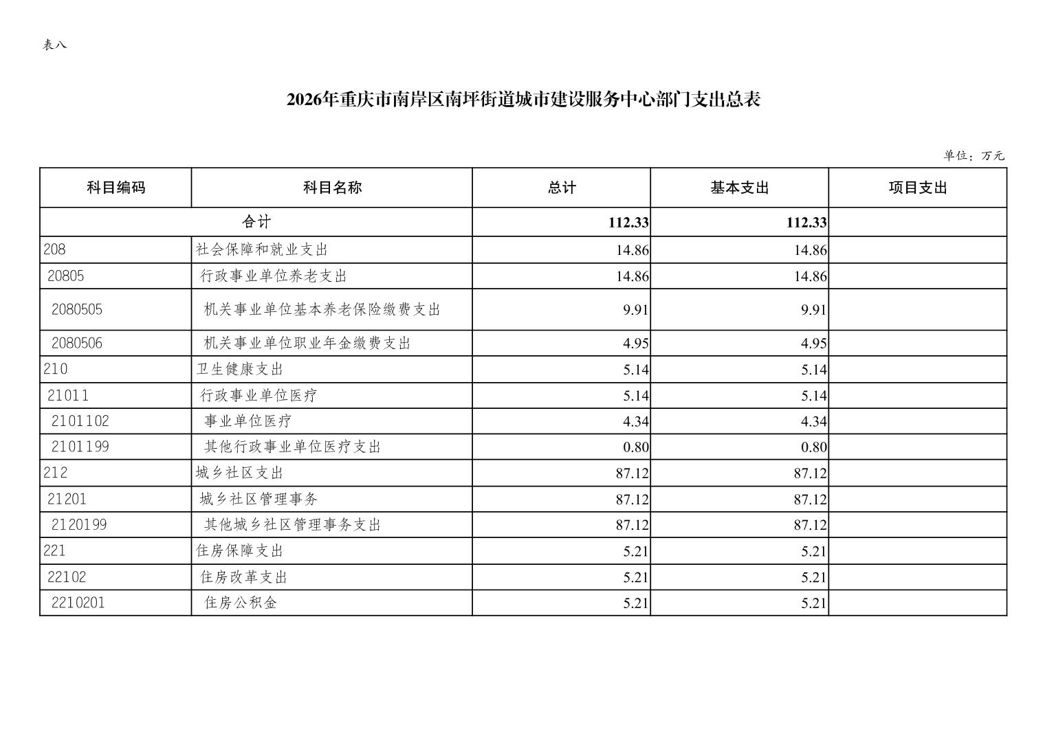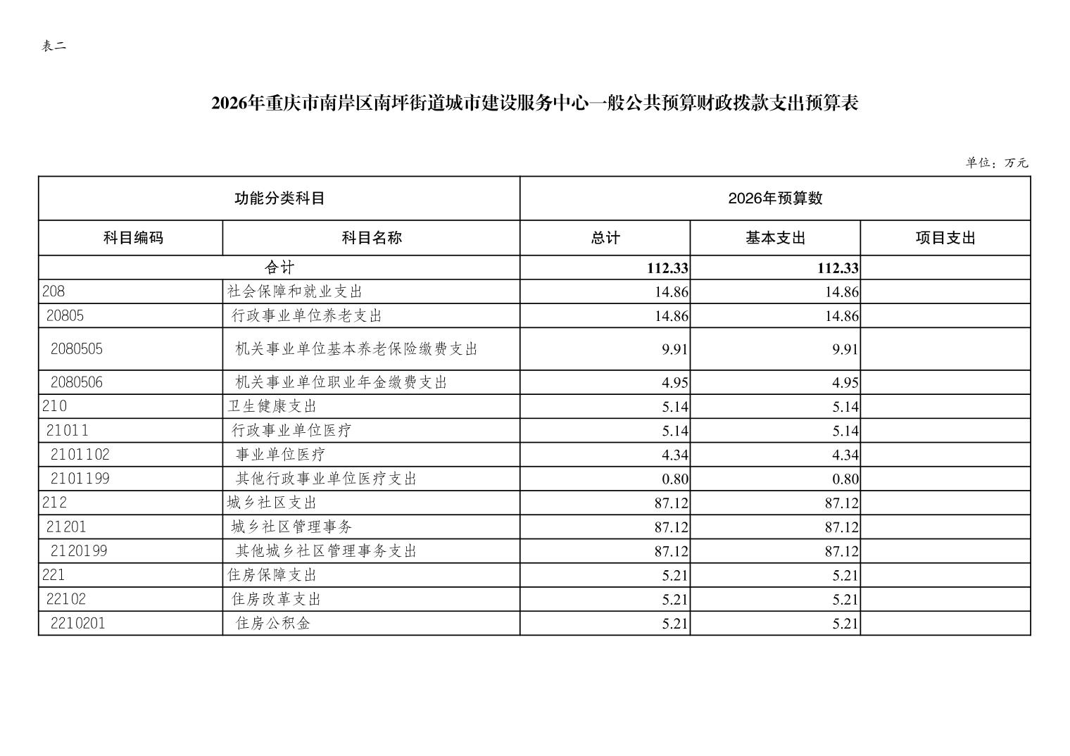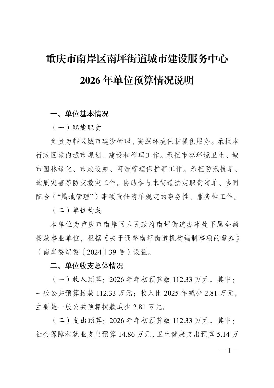 重庆市南岸区南坪街道城市建设服务中心2026年单位预算情况说明