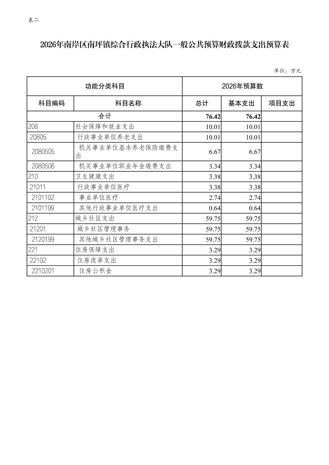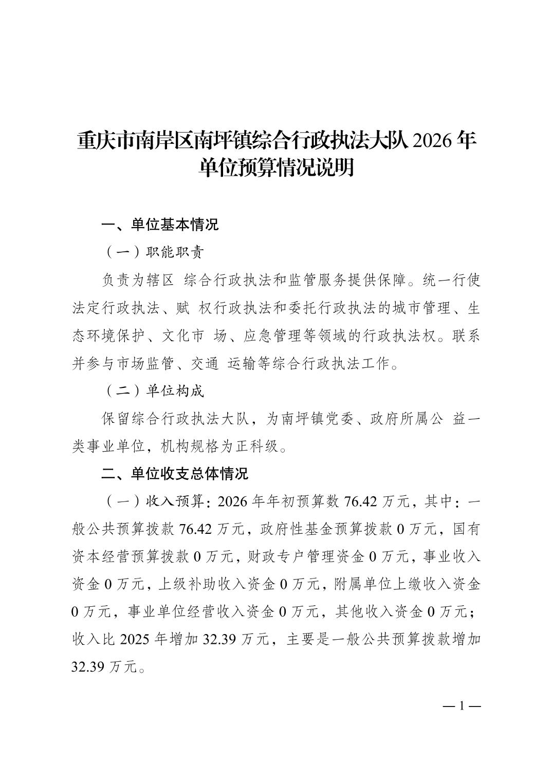 重庆市南岸区南坪镇综合行政执法大队2026年单位预算情况说明