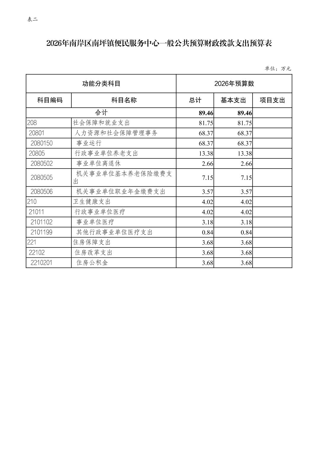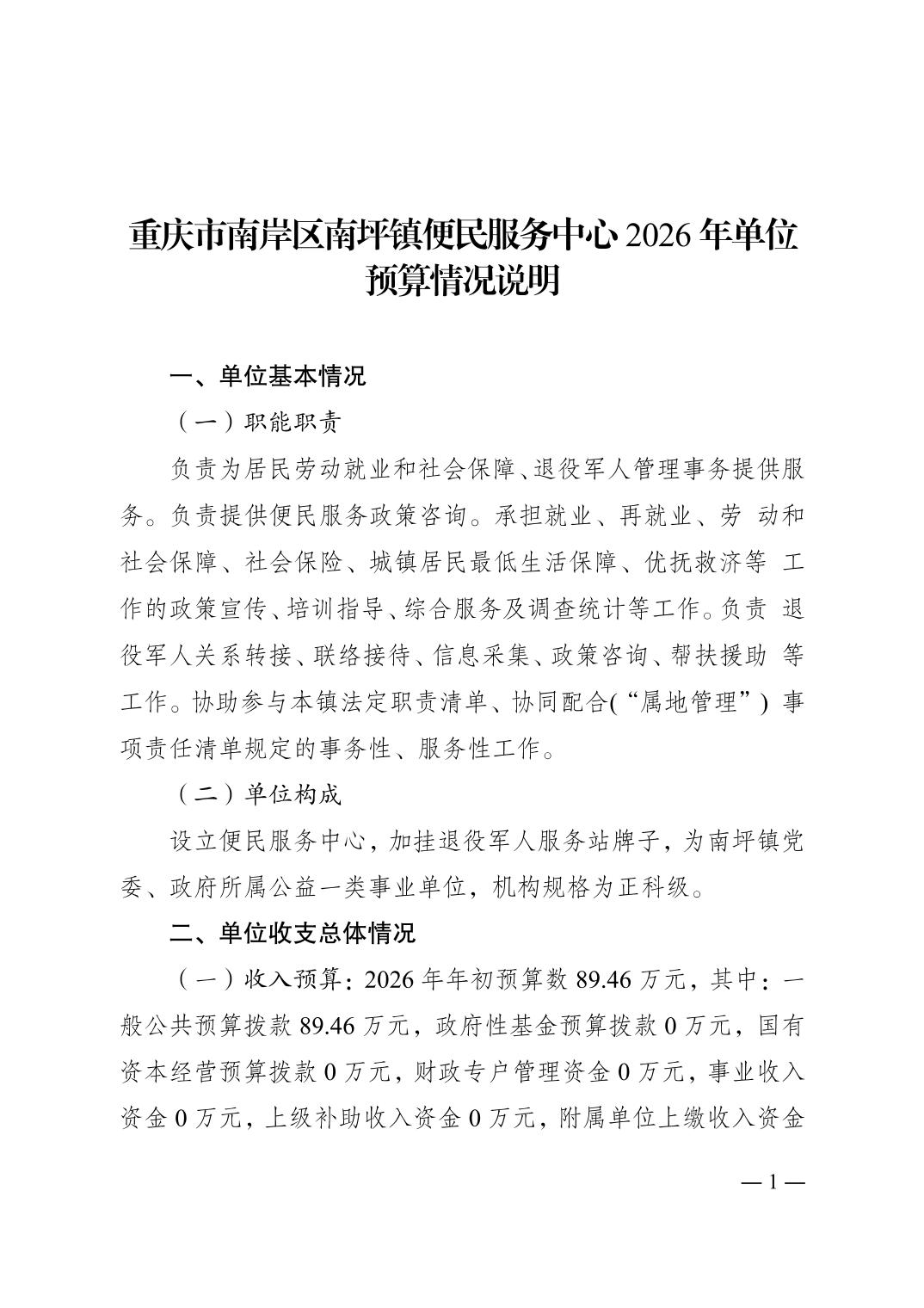 重庆市南岸区南坪镇便民服务中心2026年单位预算情况说明