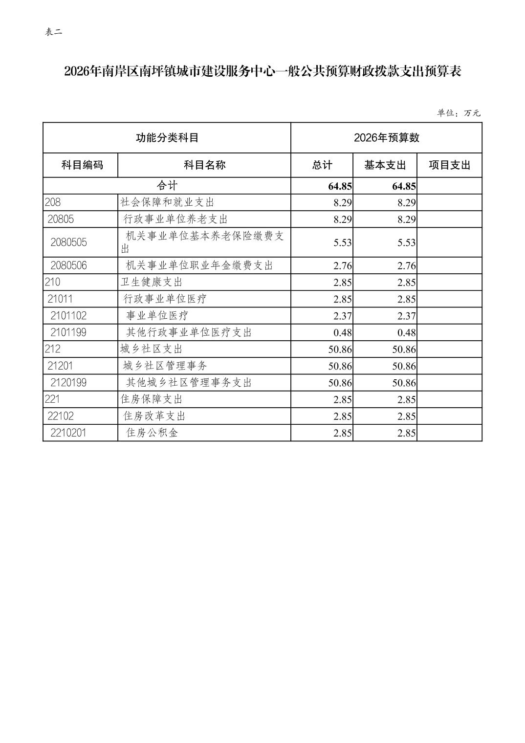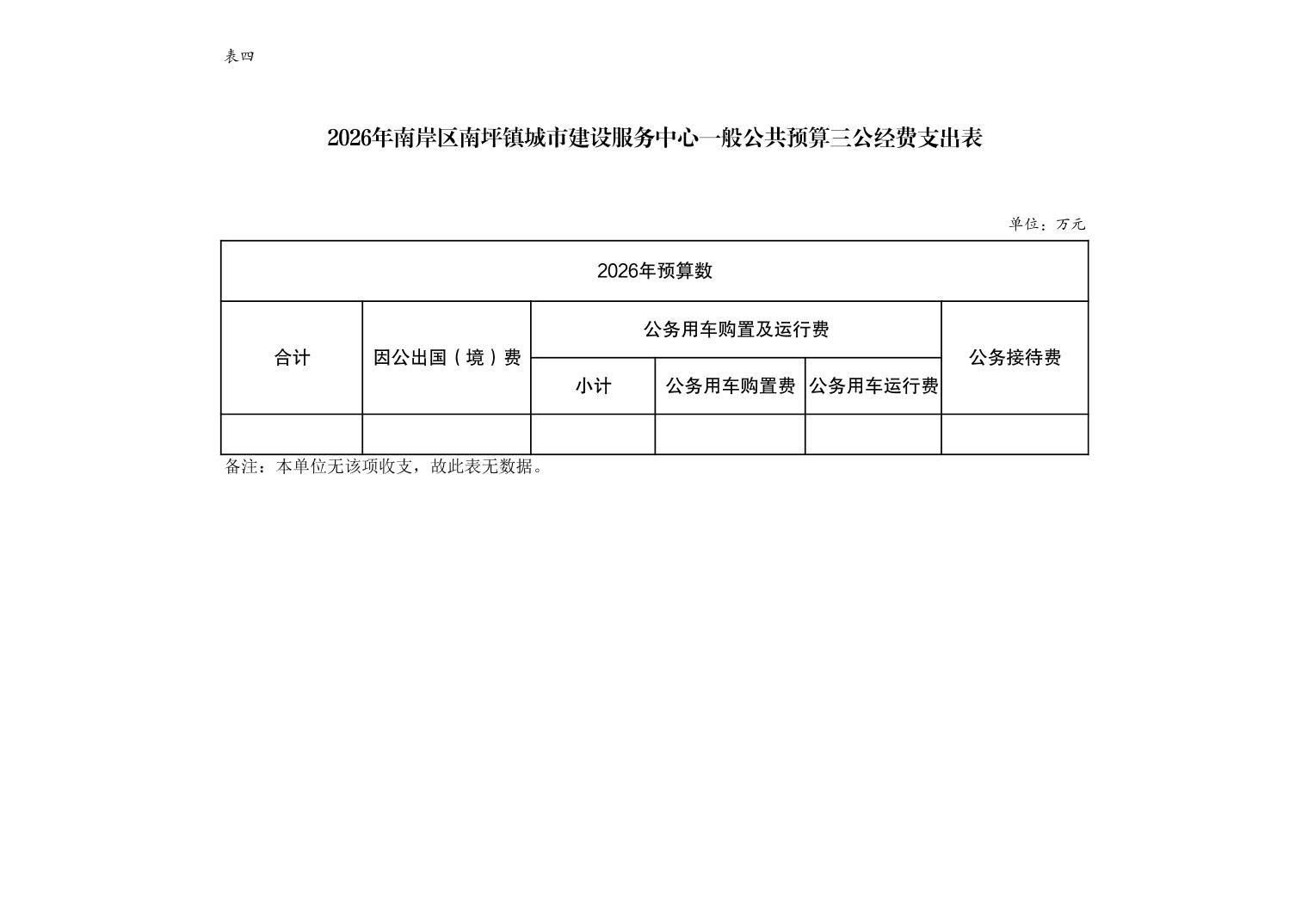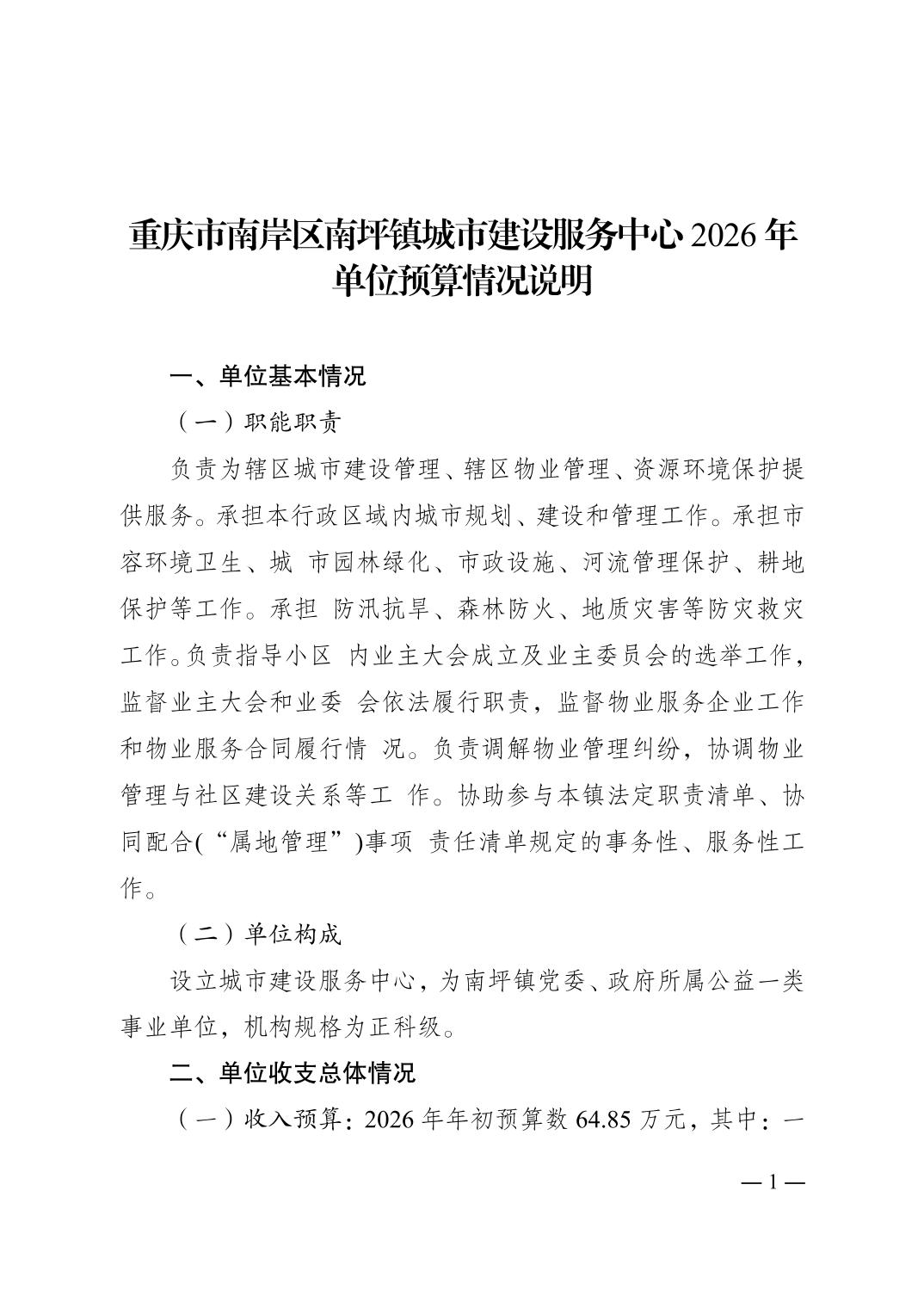 重庆市南岸区南坪镇城市建设服务中心2026年单位预算情况说明