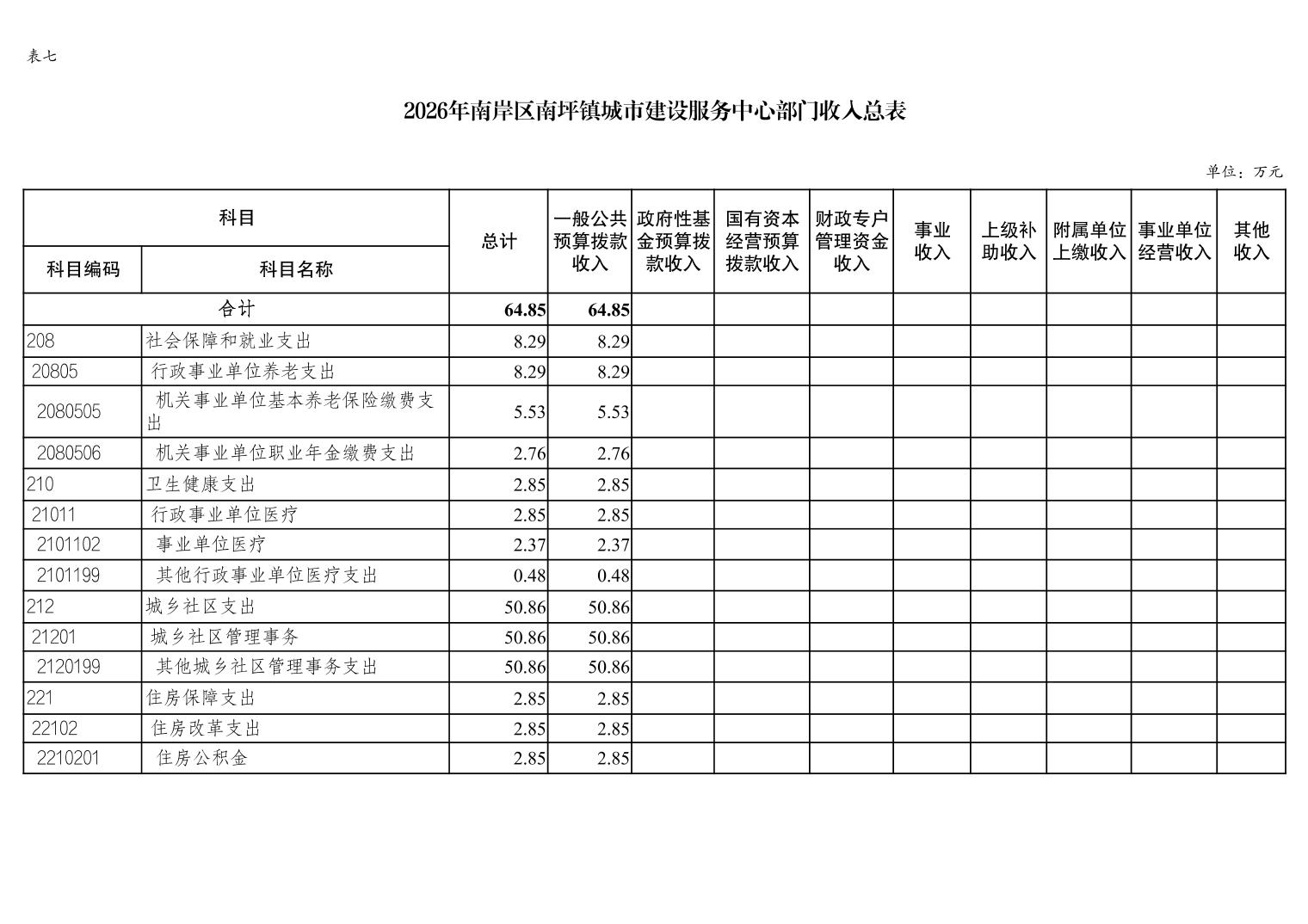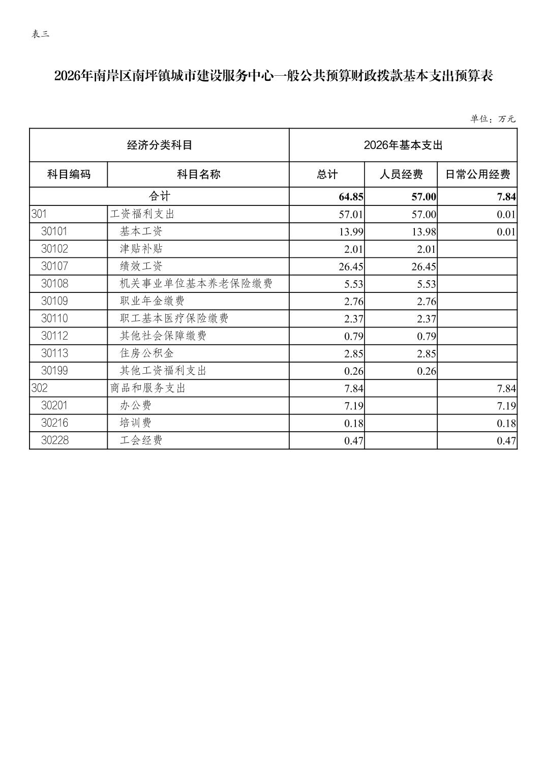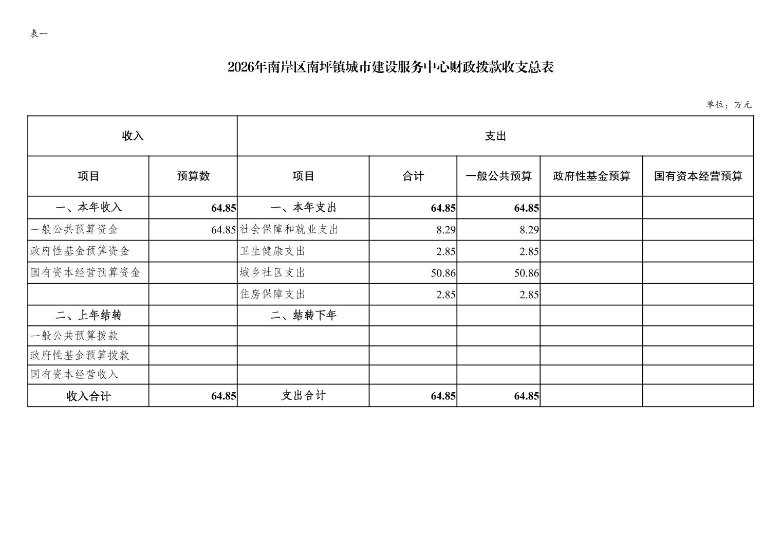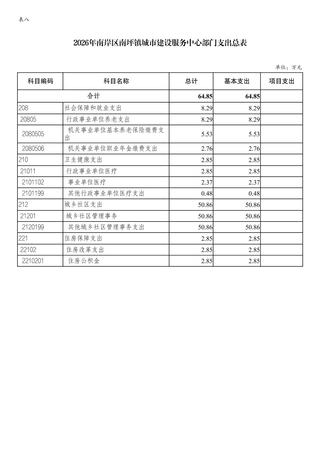 重庆市南岸区南坪镇城市建设服务中心2026年单位预算情况说明