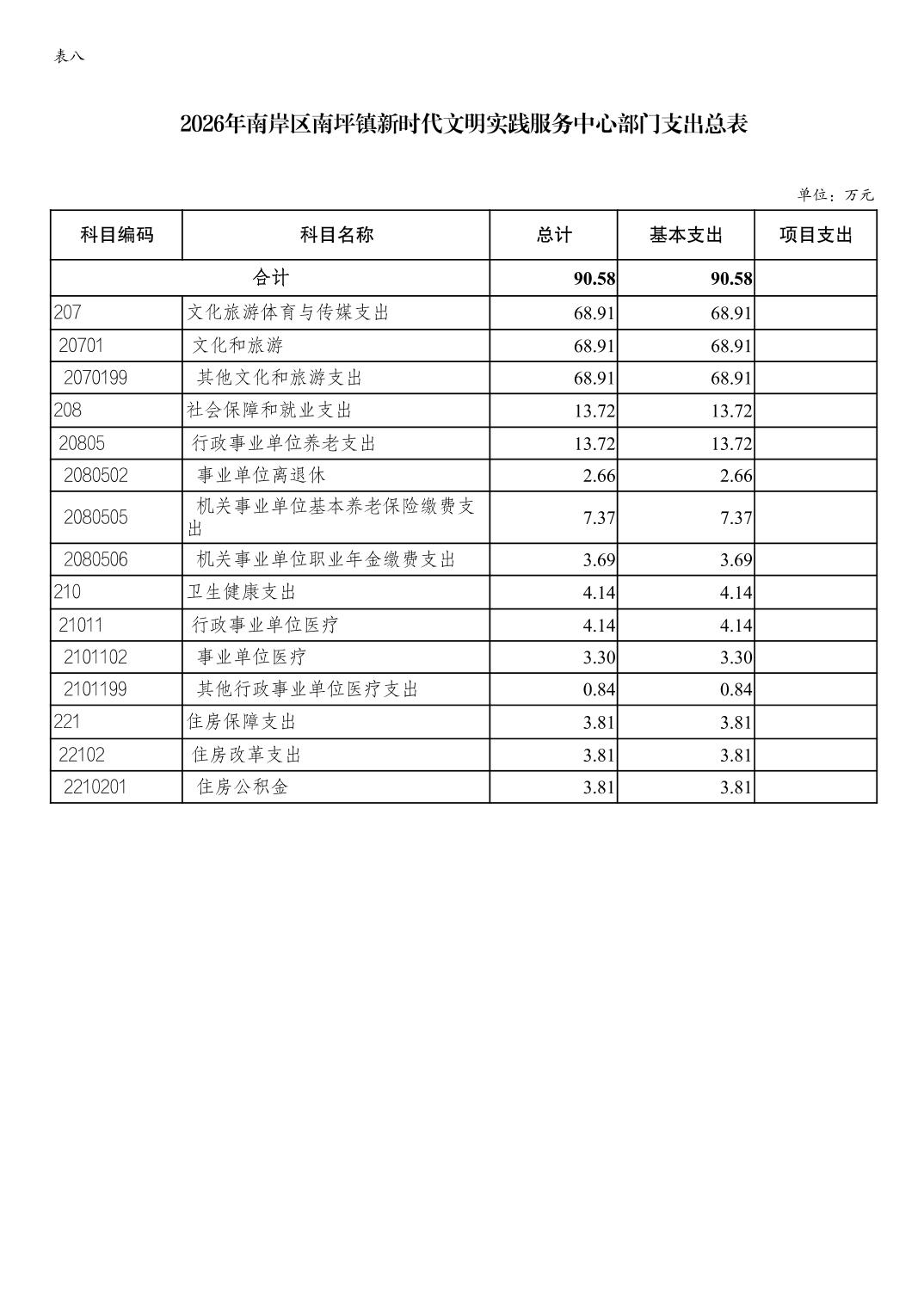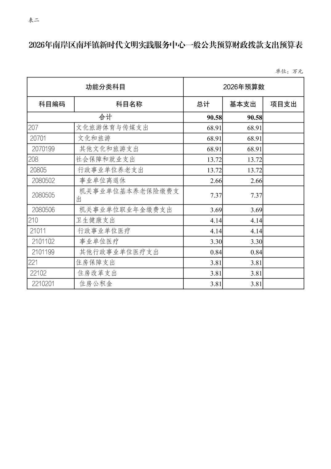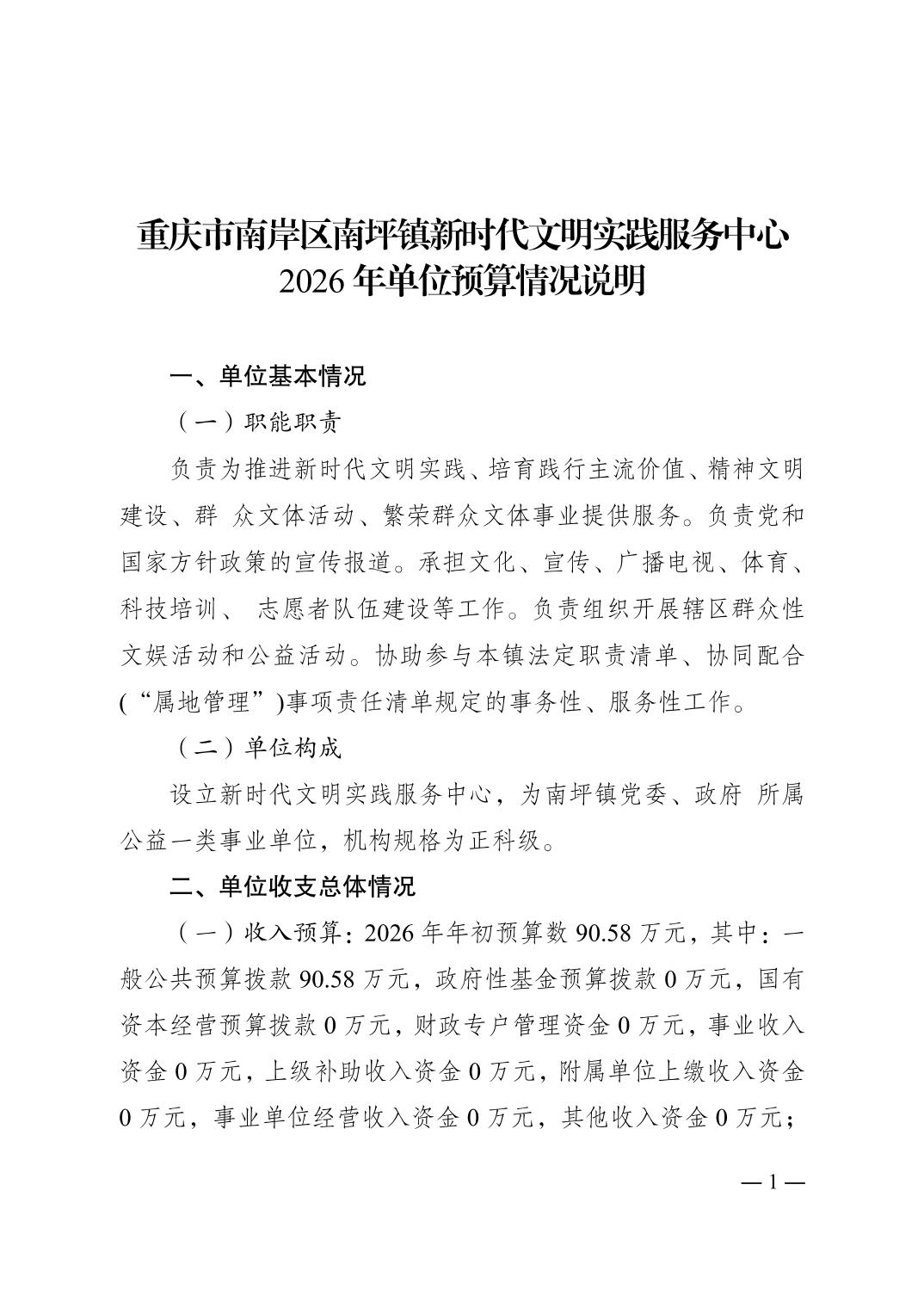 重庆市南岸区南坪镇新时代文明实践服务中心2026年单位预算情况说明