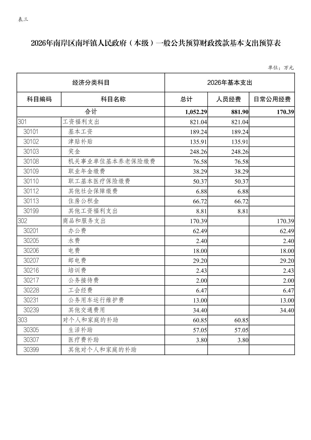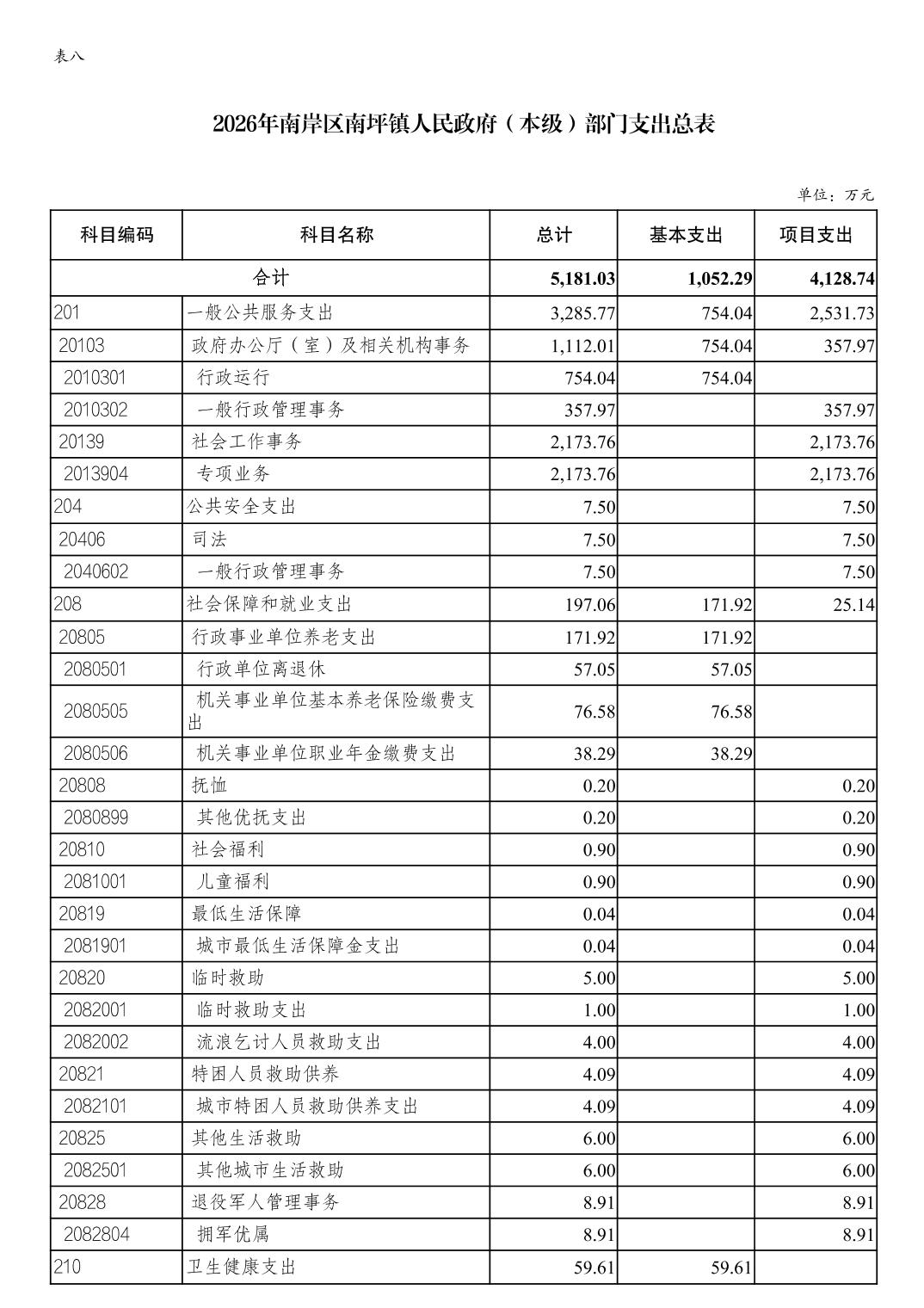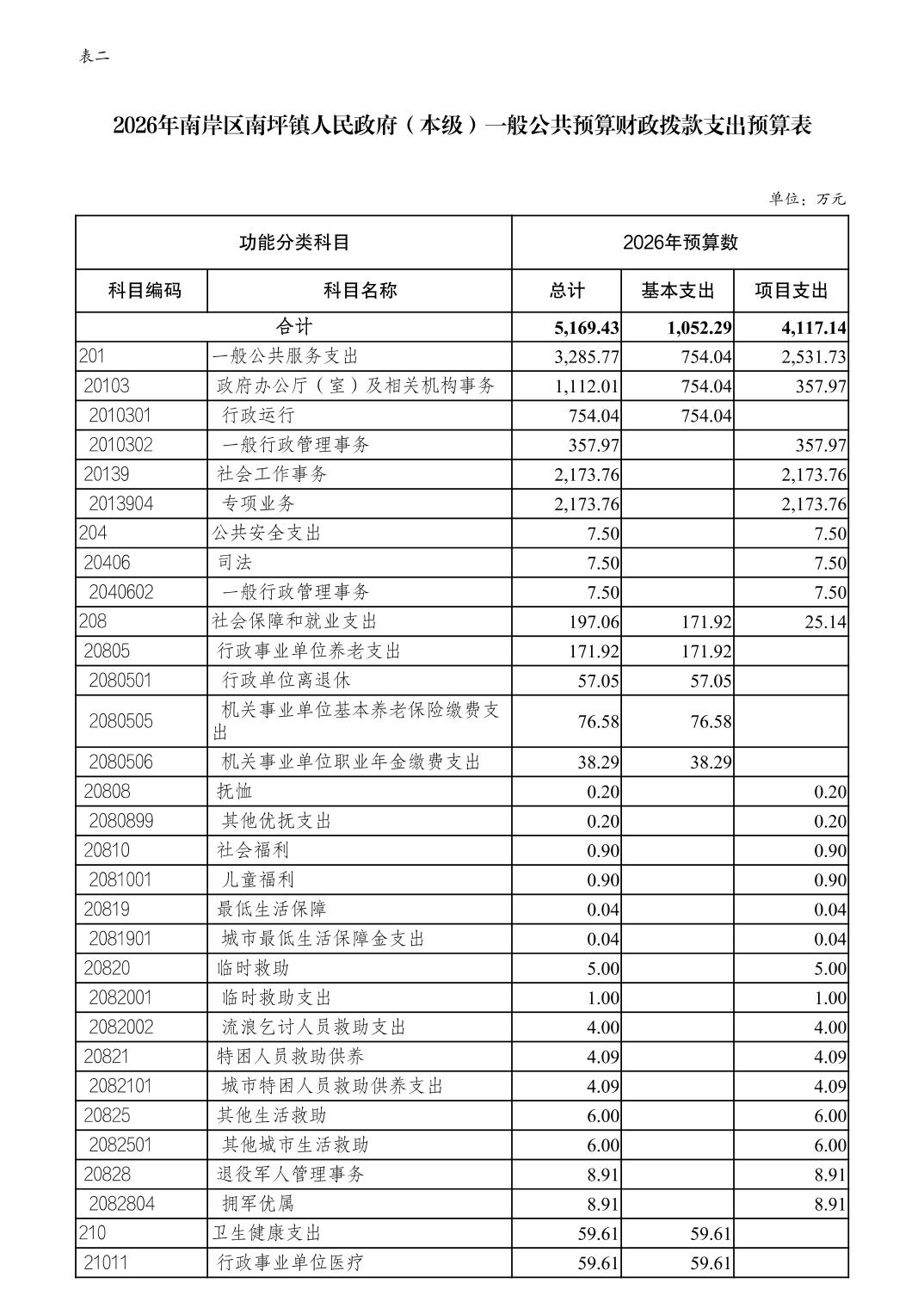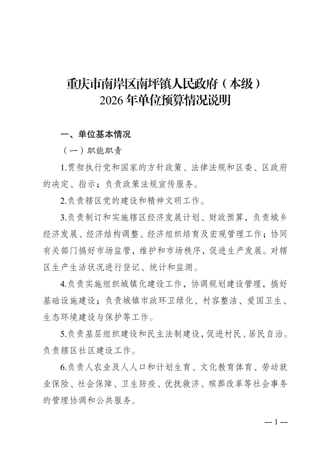 重庆市南岸区南坪镇人民政府(本级)2026年单位预算情况说明