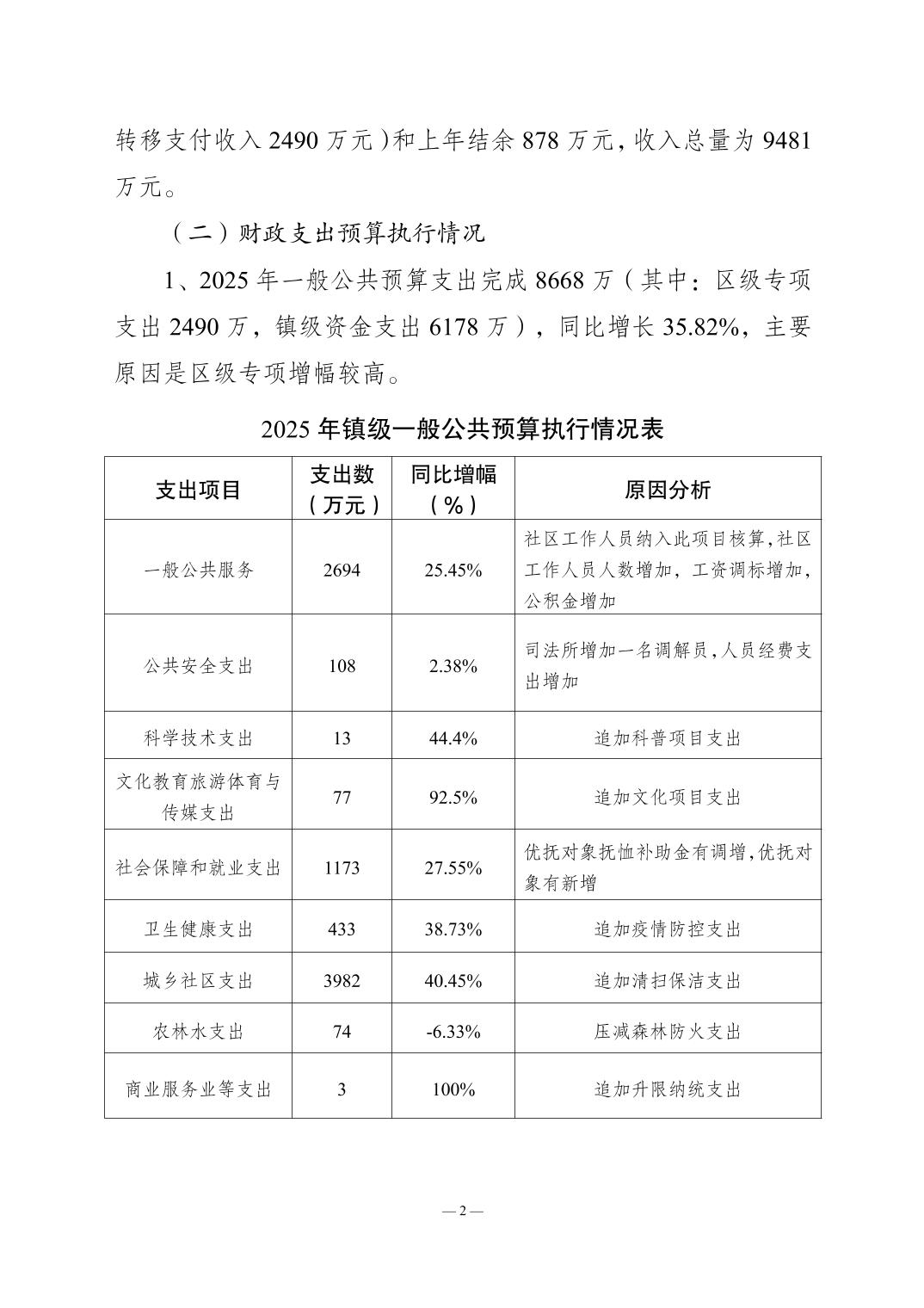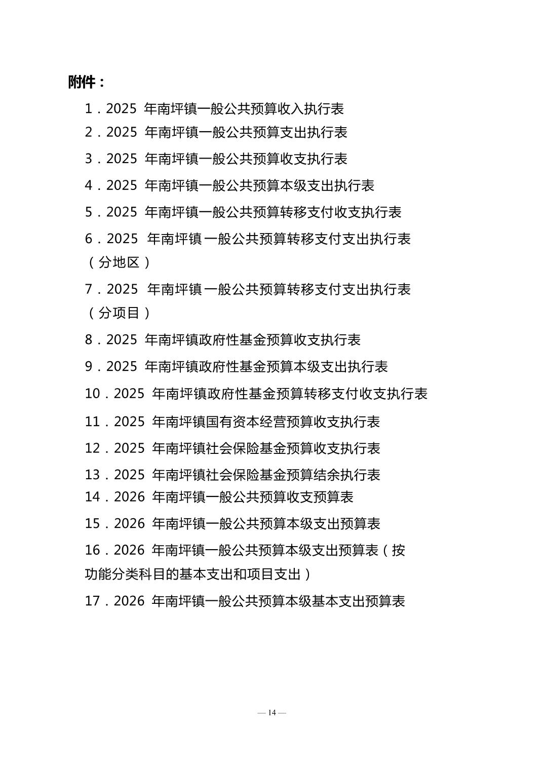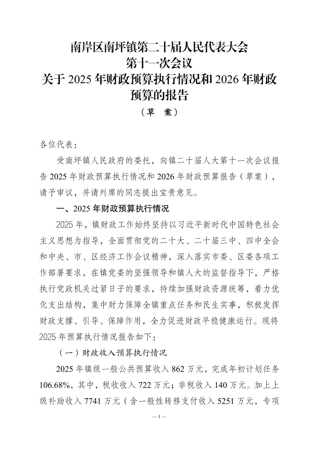 重庆市南岸区南坪镇2025年财政预算执行情况和2026年财政预算(草案)的报告