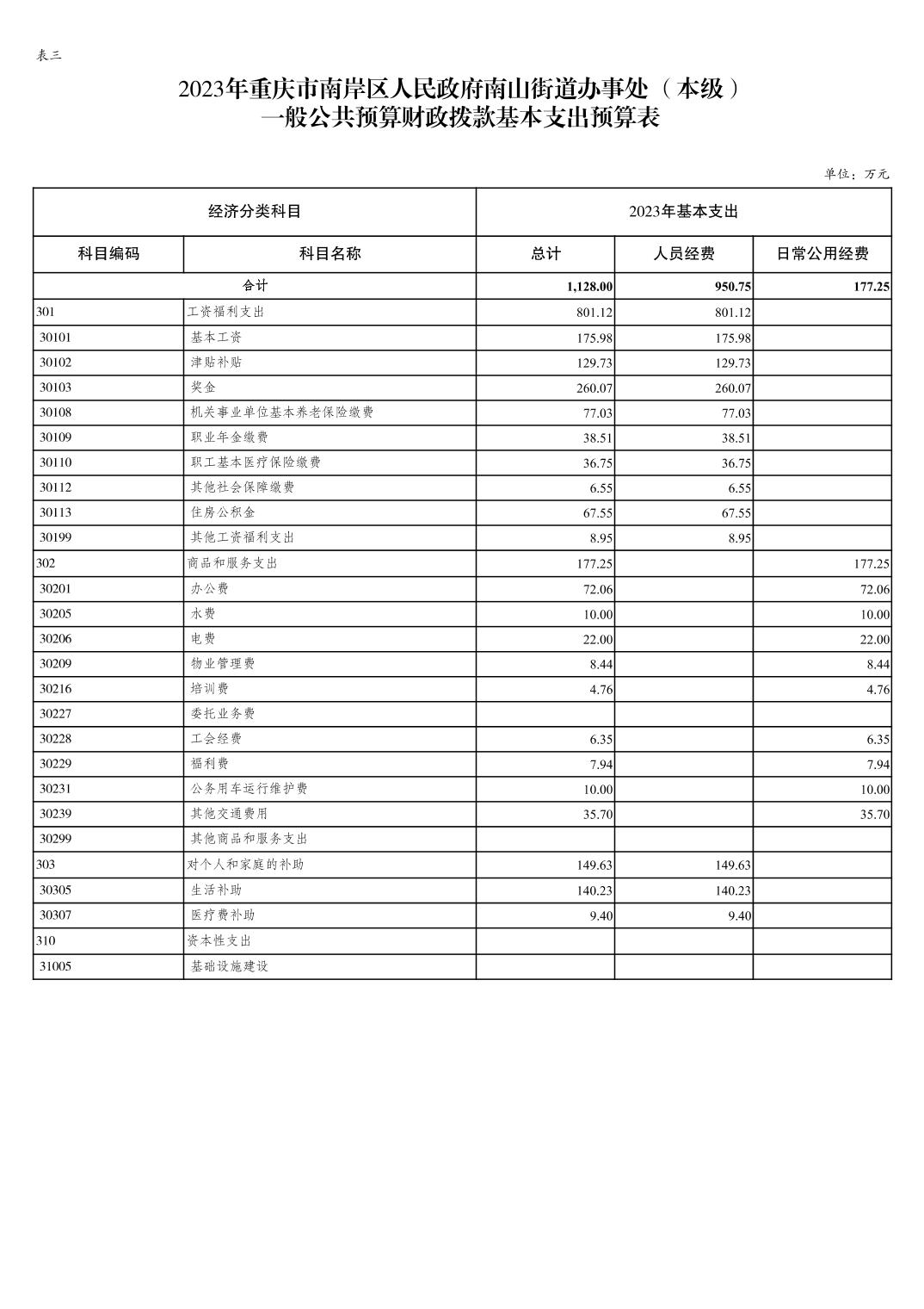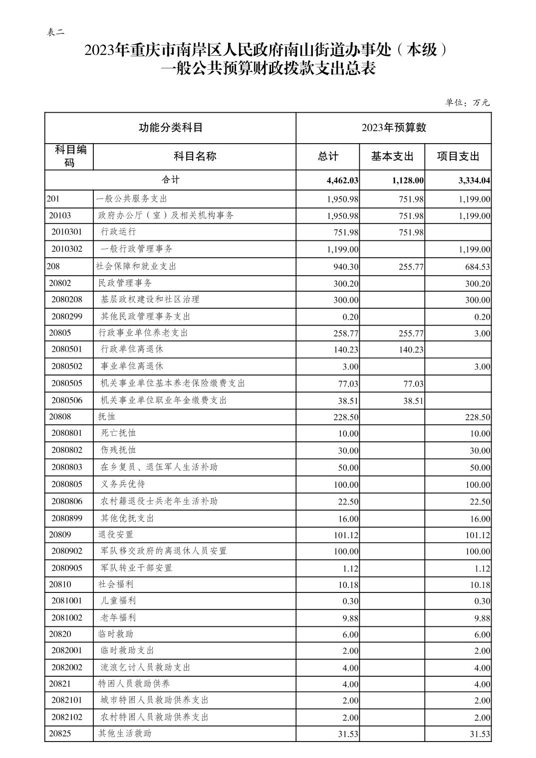 重庆市南岸区人民政府南山街道办事处(本级)2023年单位预算情况说明
