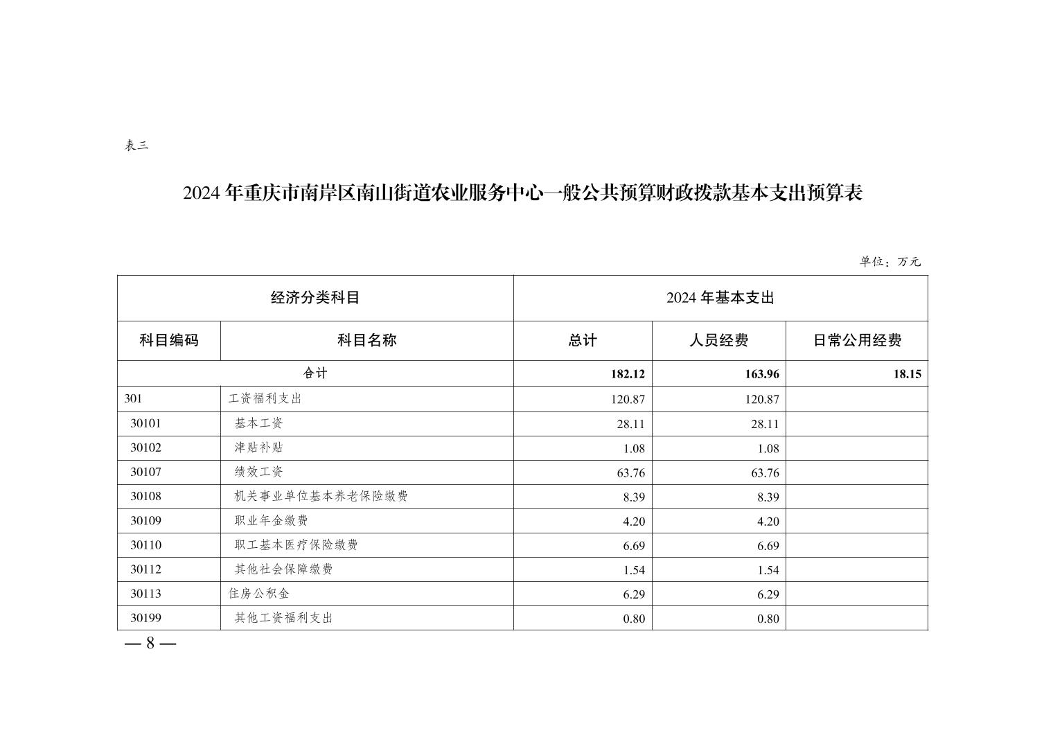 重庆市南岸区南山街道农业服务中心2024年单位预算情况说明