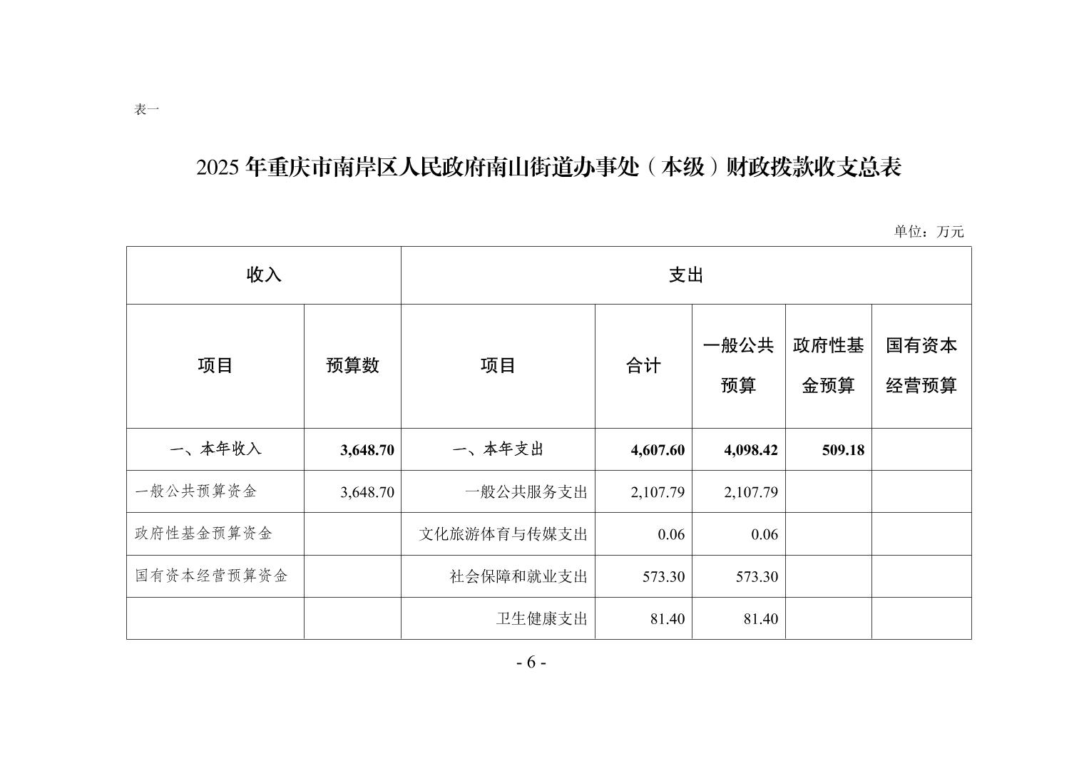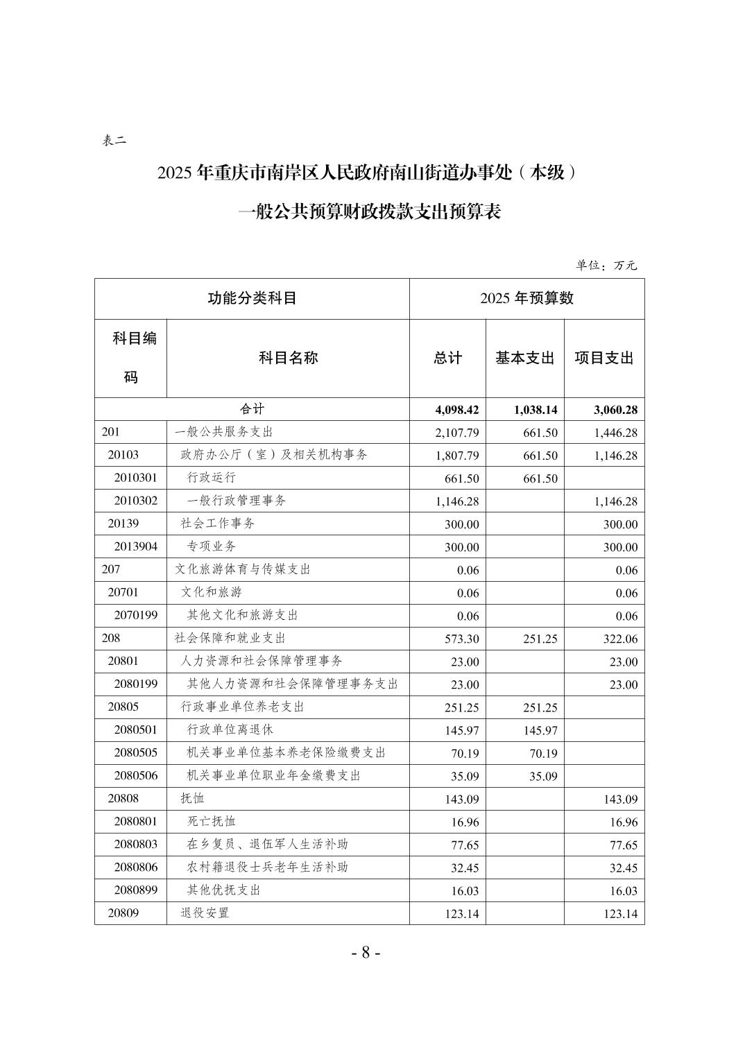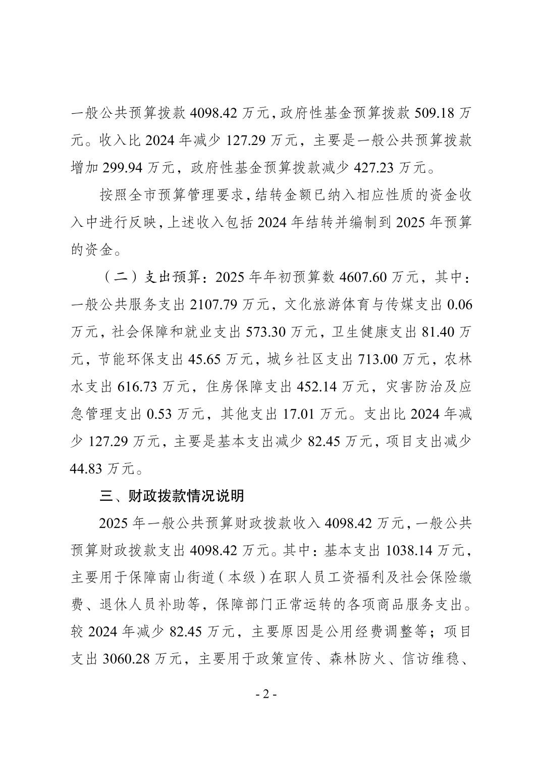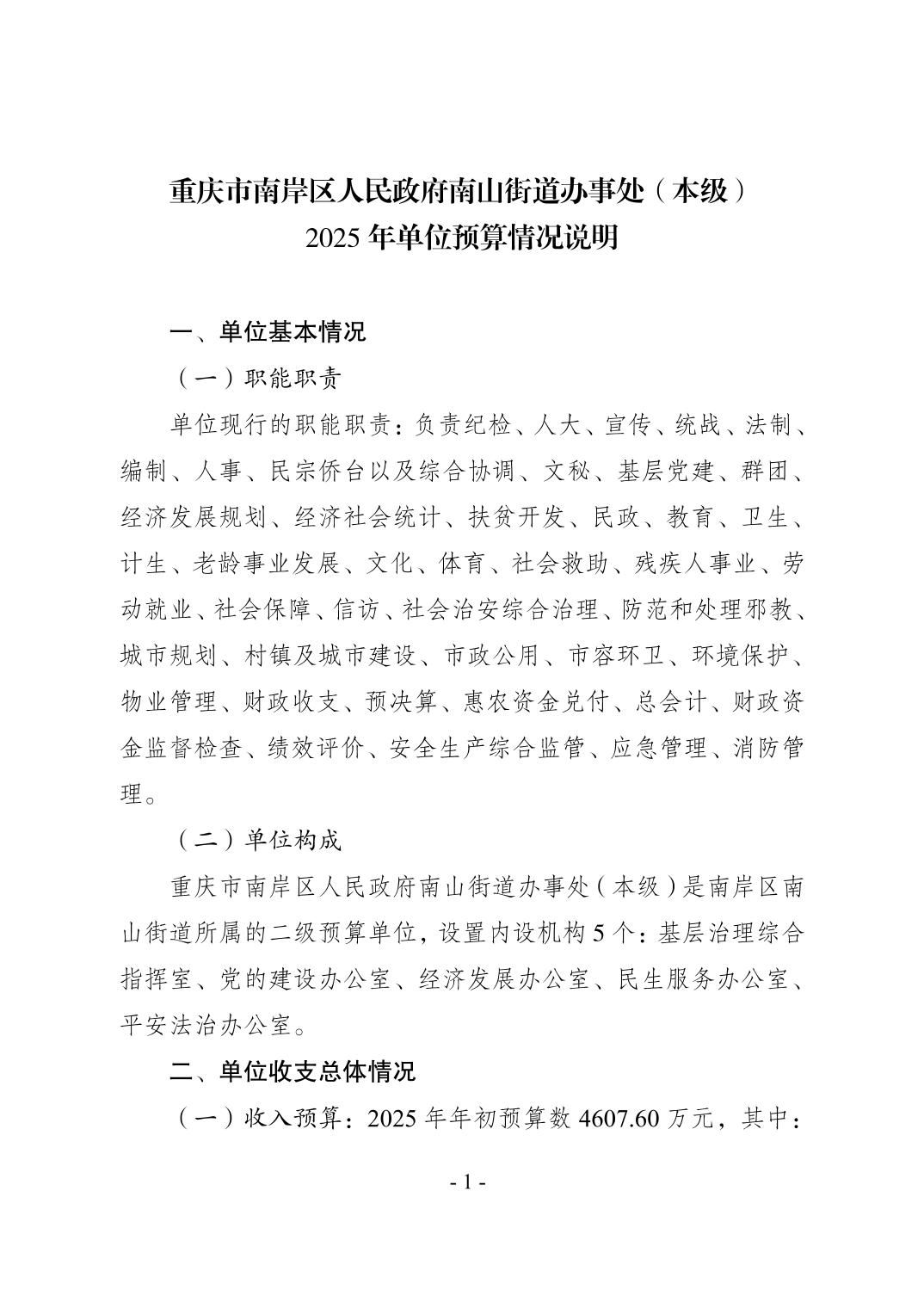 重庆市南岸区人民政府南山街道办事处(本级)2025年单位预算情况说明