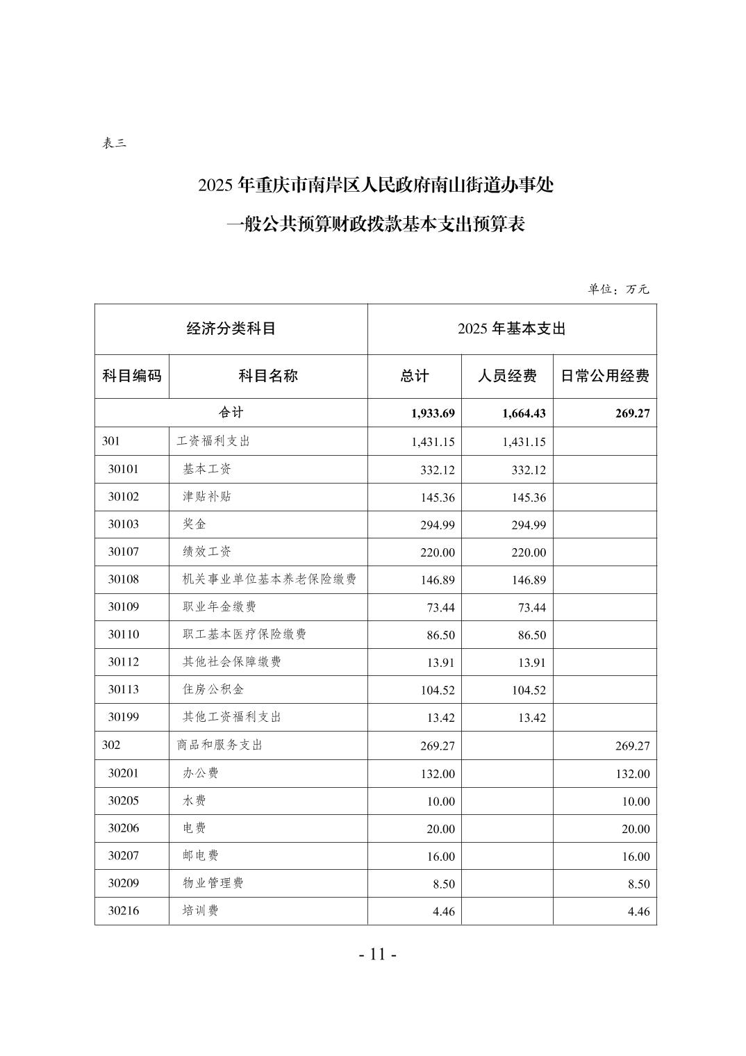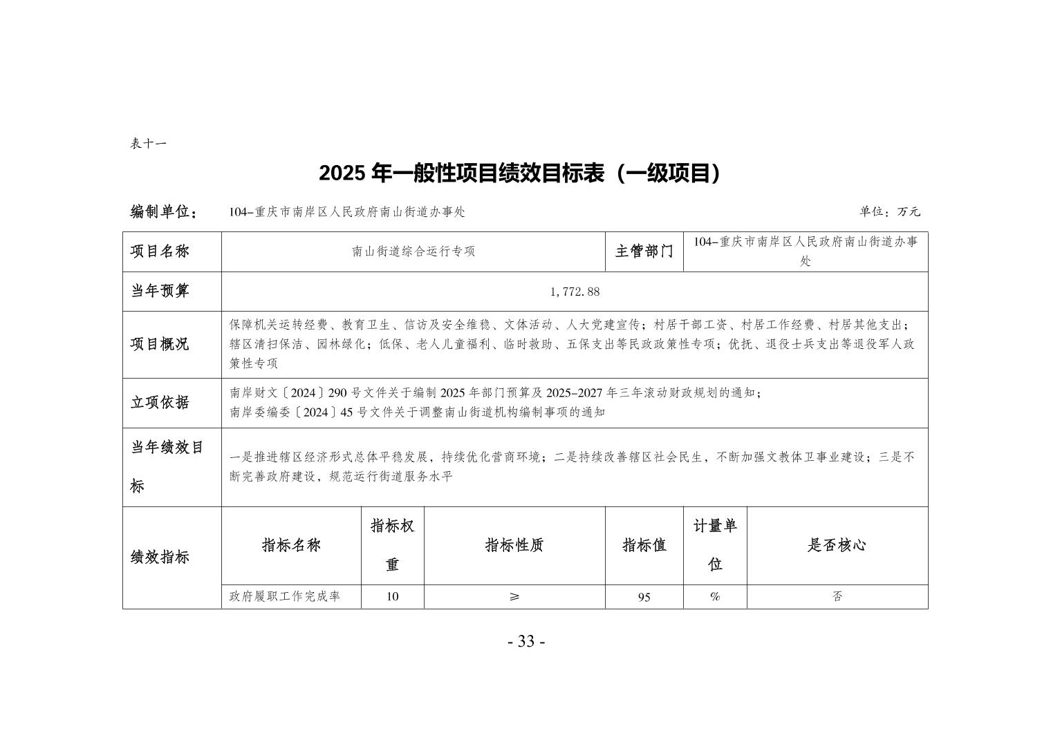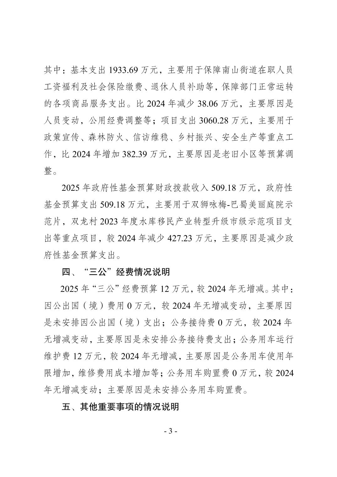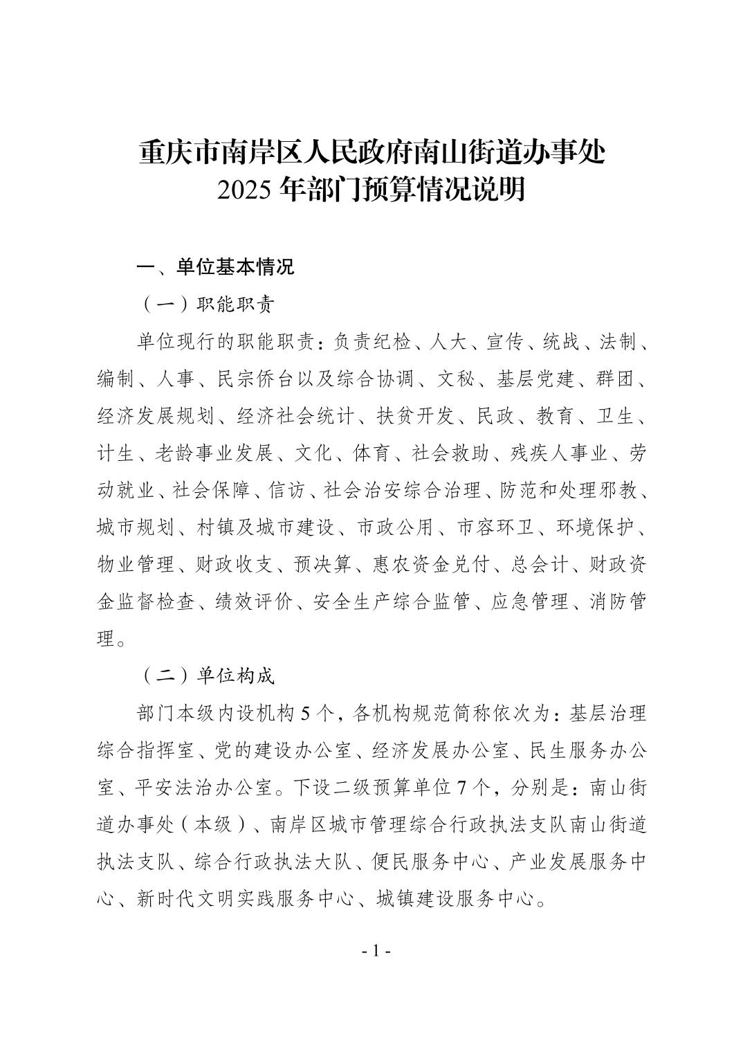 重庆市南岸区人民政府南山街道办事处2025年部门预算情况说明