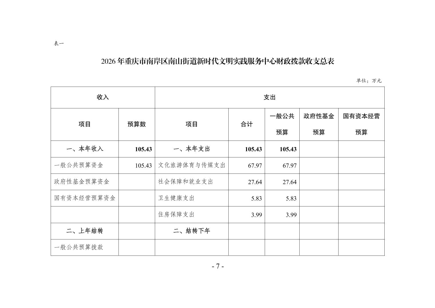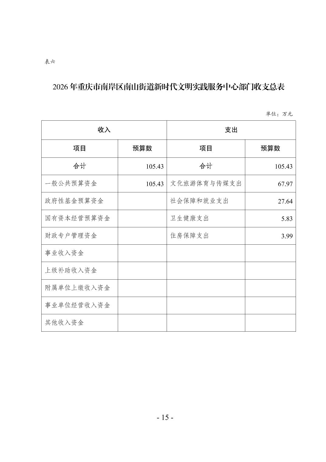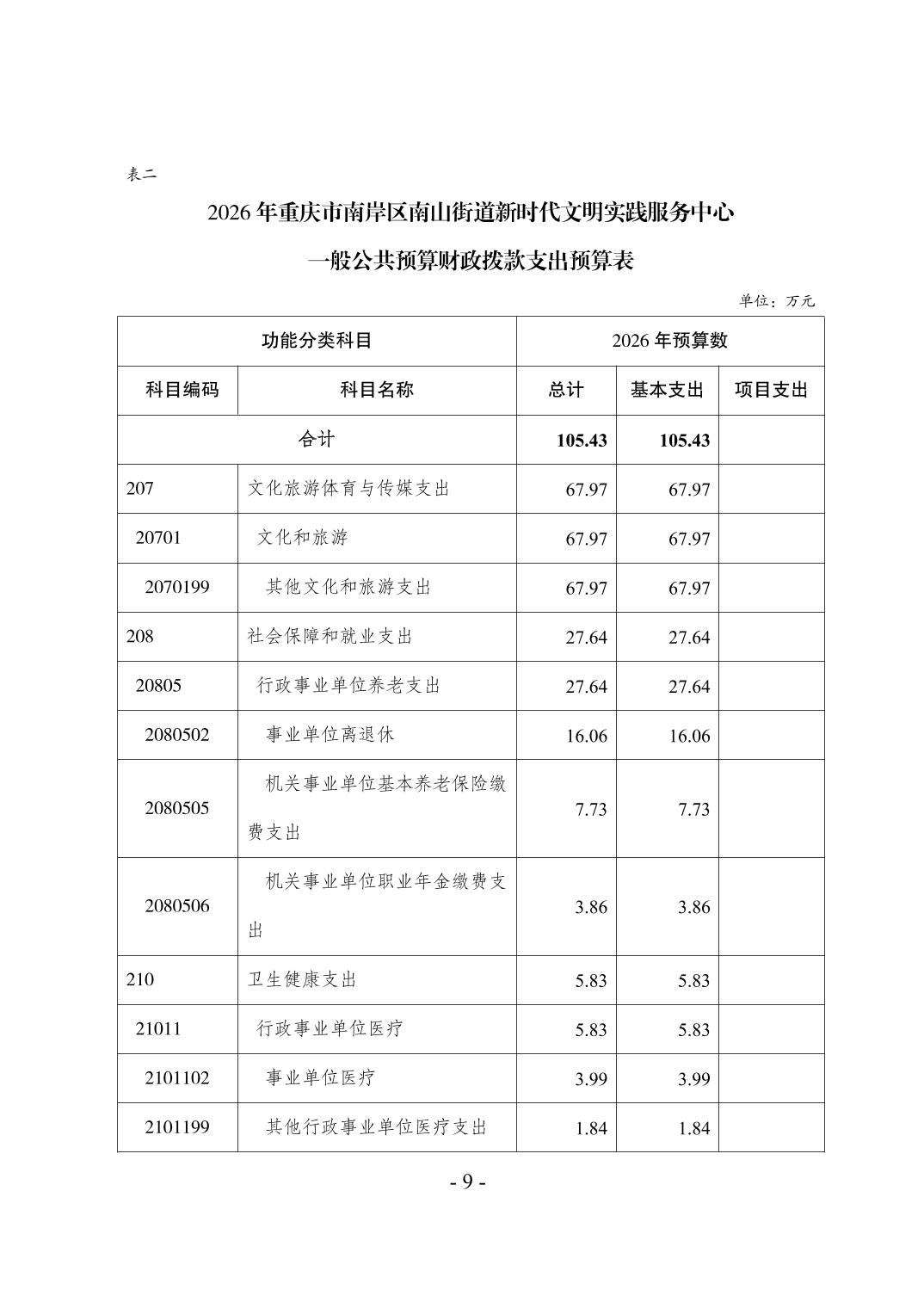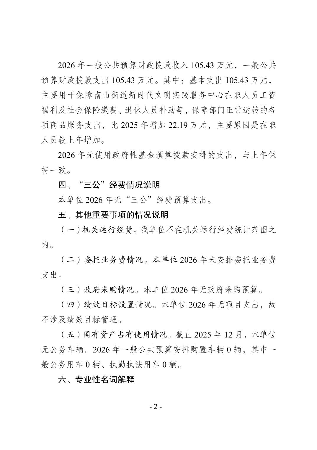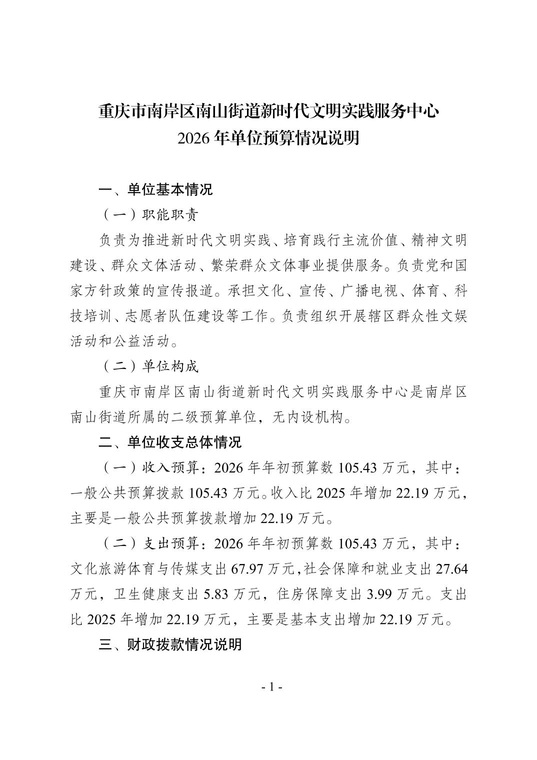 重庆市南岸区南山街道新时代文明实践服务中心2026年单位预算情况说明