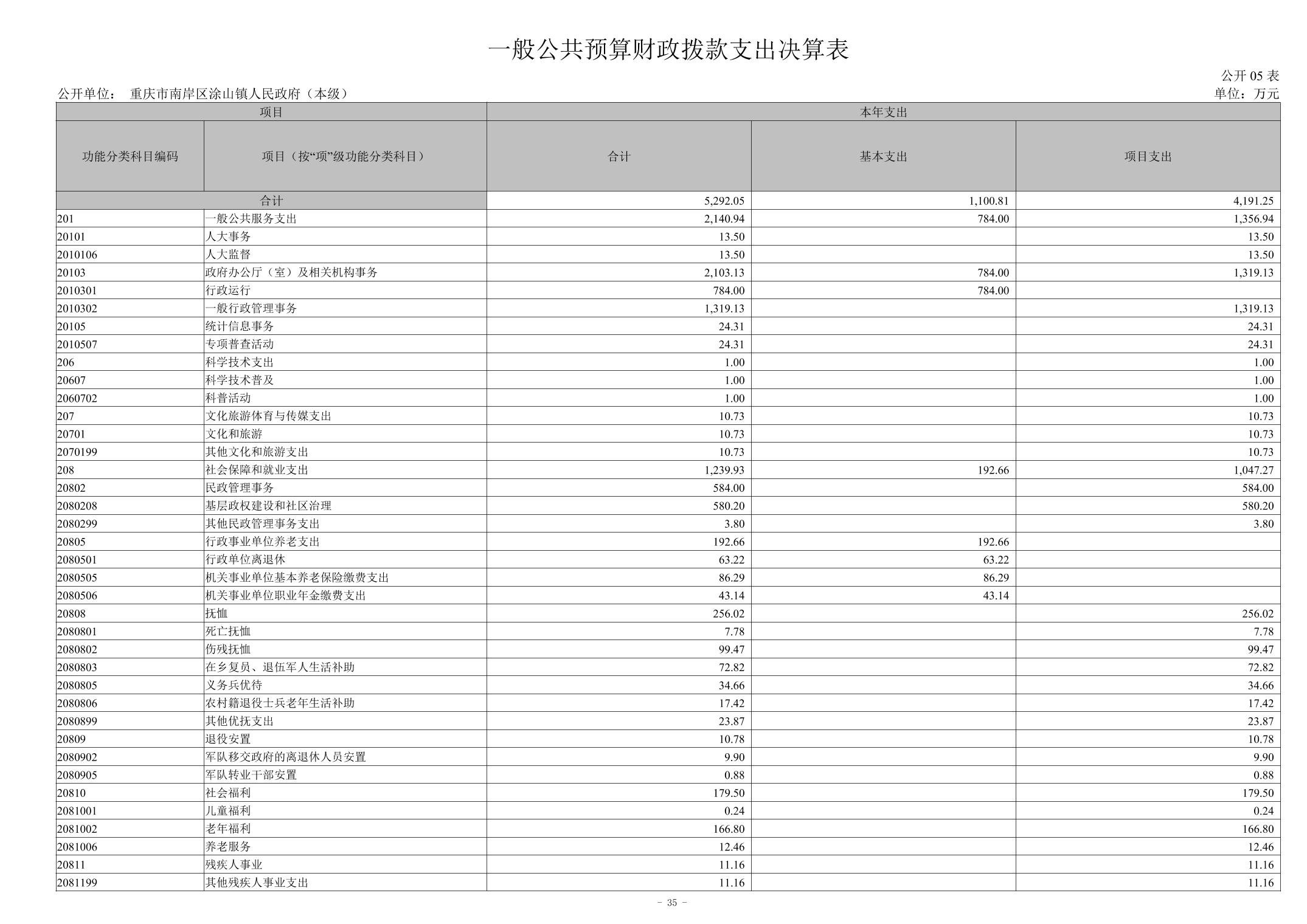 重庆市南岸区涂山镇人民政府(本级)2023年度决算公开说明