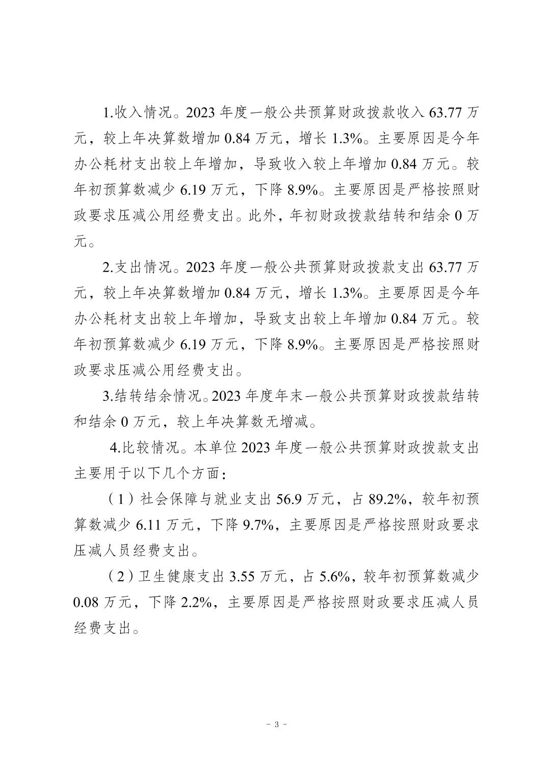 重庆市南岸区涂山镇劳动就业和社会保障服务所2023年度决算公开说明
