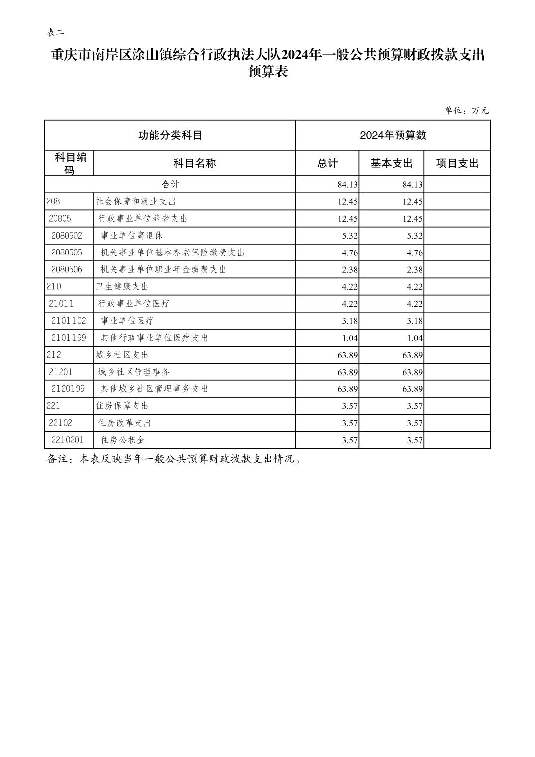重庆市南岸区涂山镇综合行政执法大队2024年单位预算情况说明