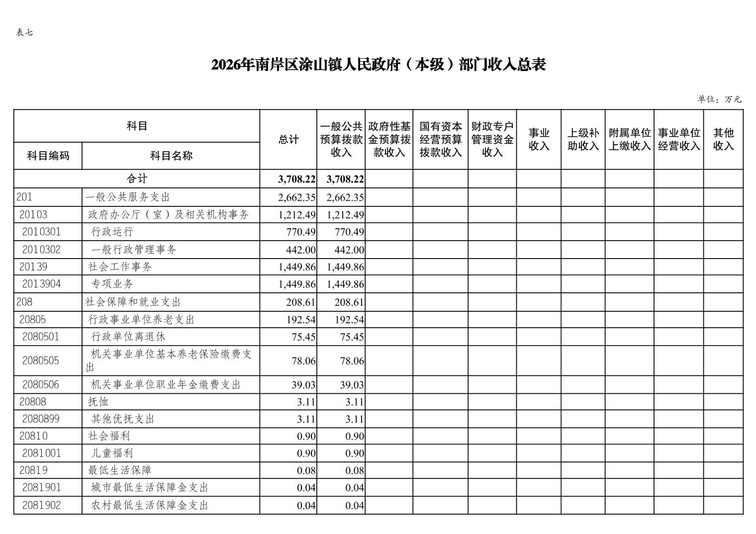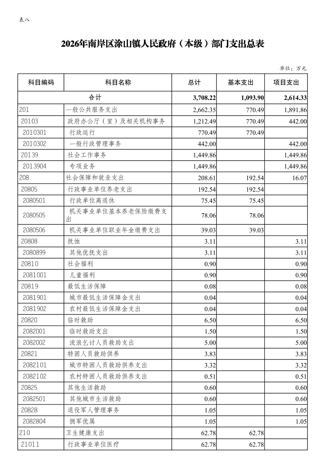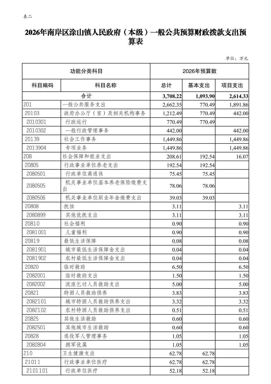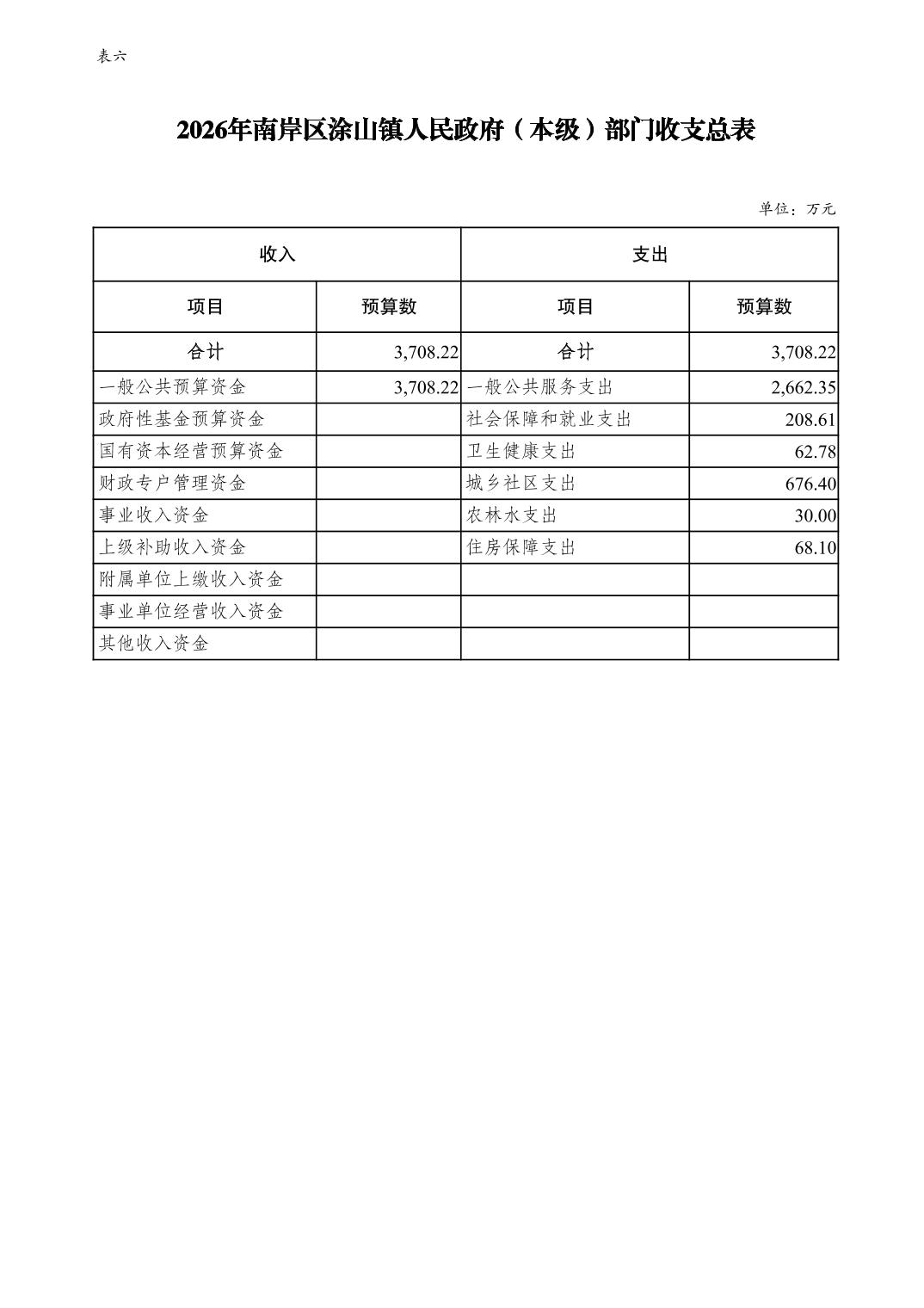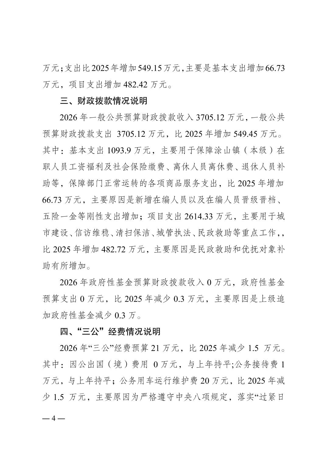 重庆市南岸区涂山镇人民政府(本级)2026年单位预算情况说明