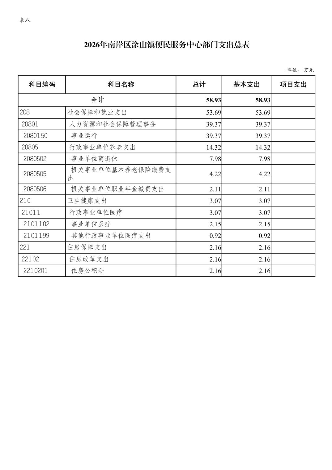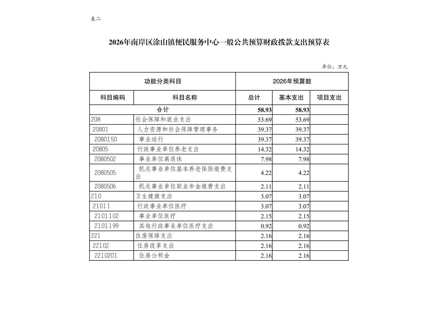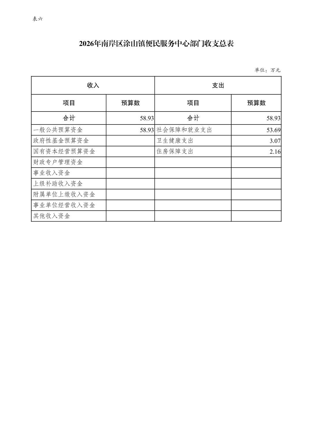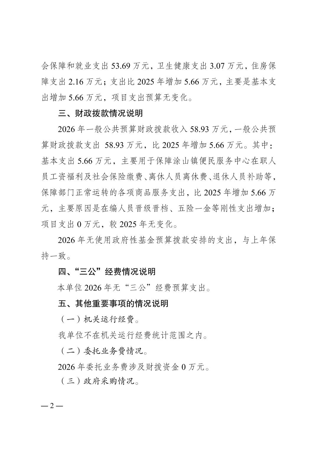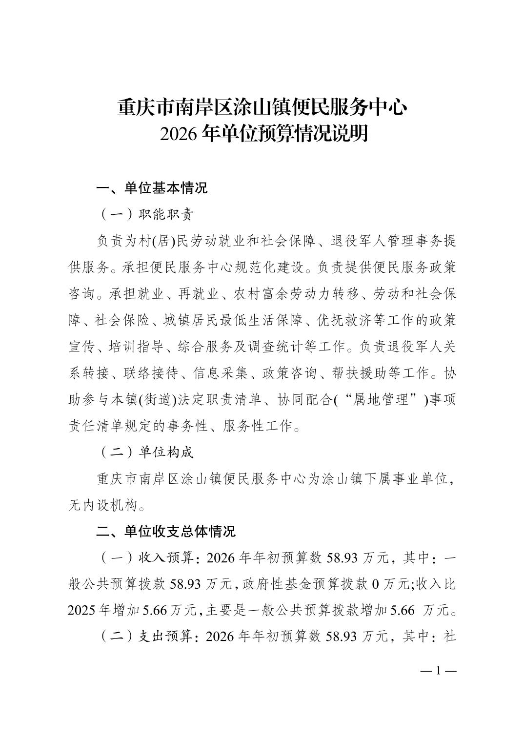 重庆市南岸区涂山镇便民服务中心2026年单位预算情况说明