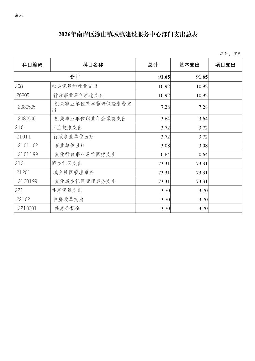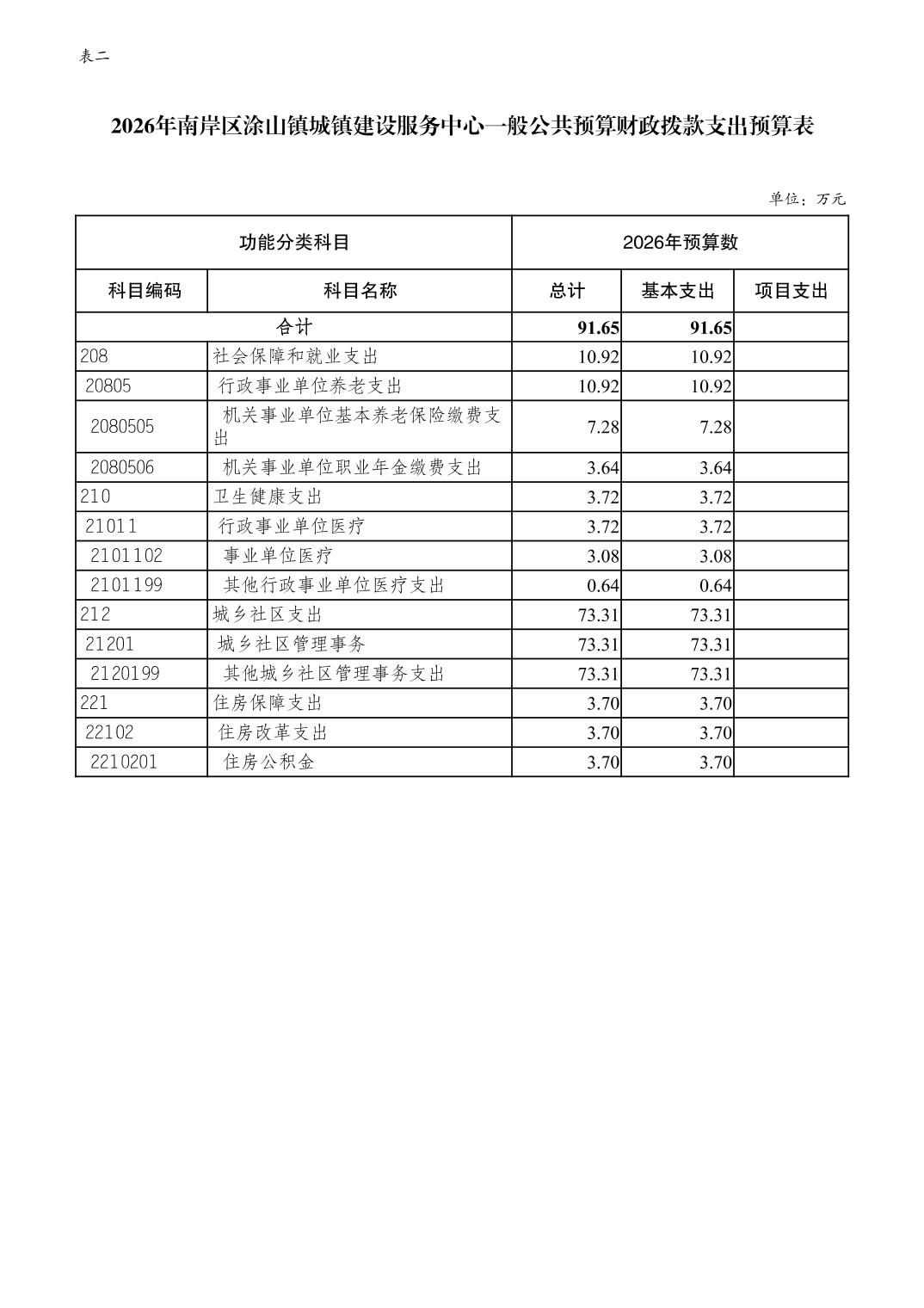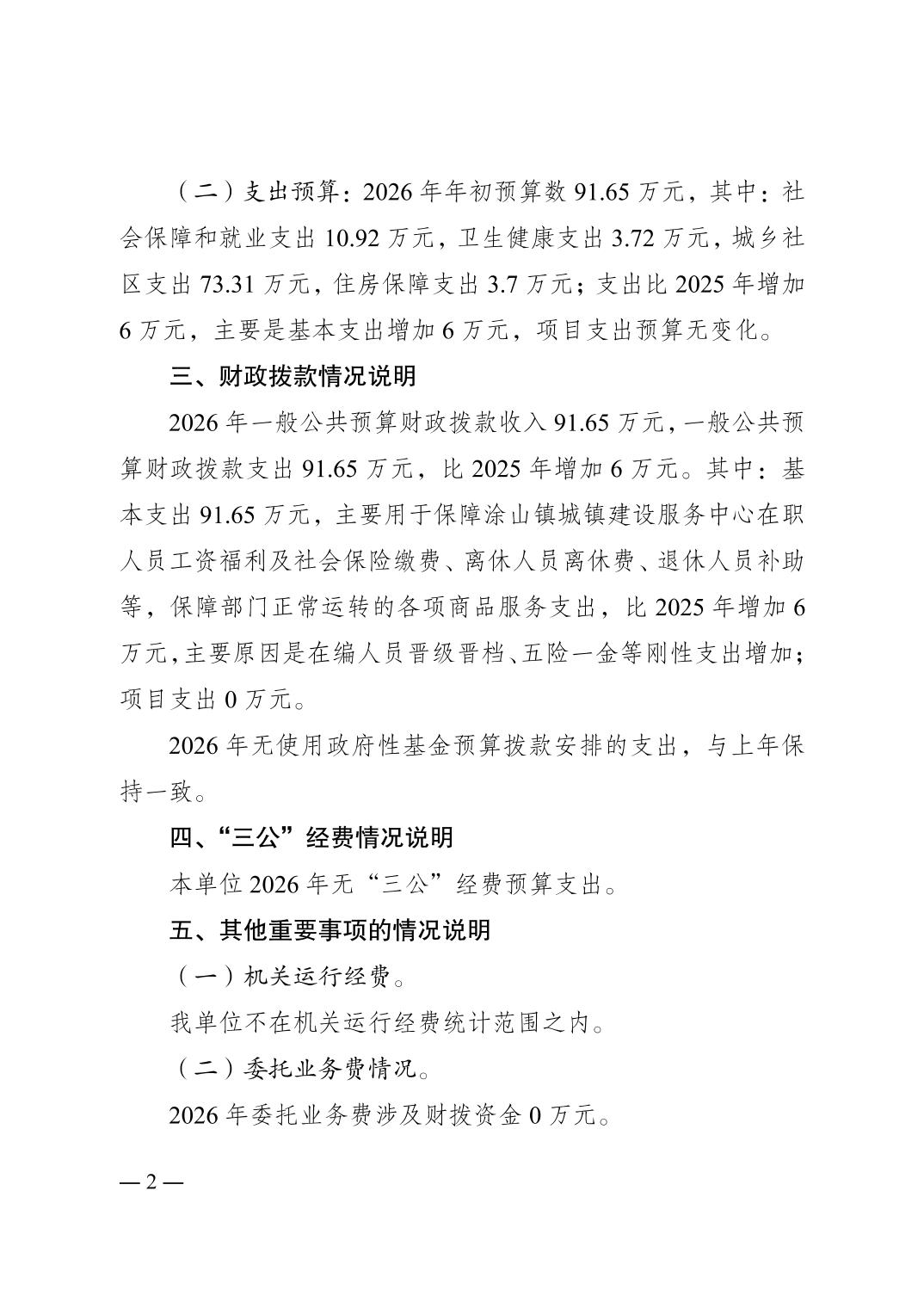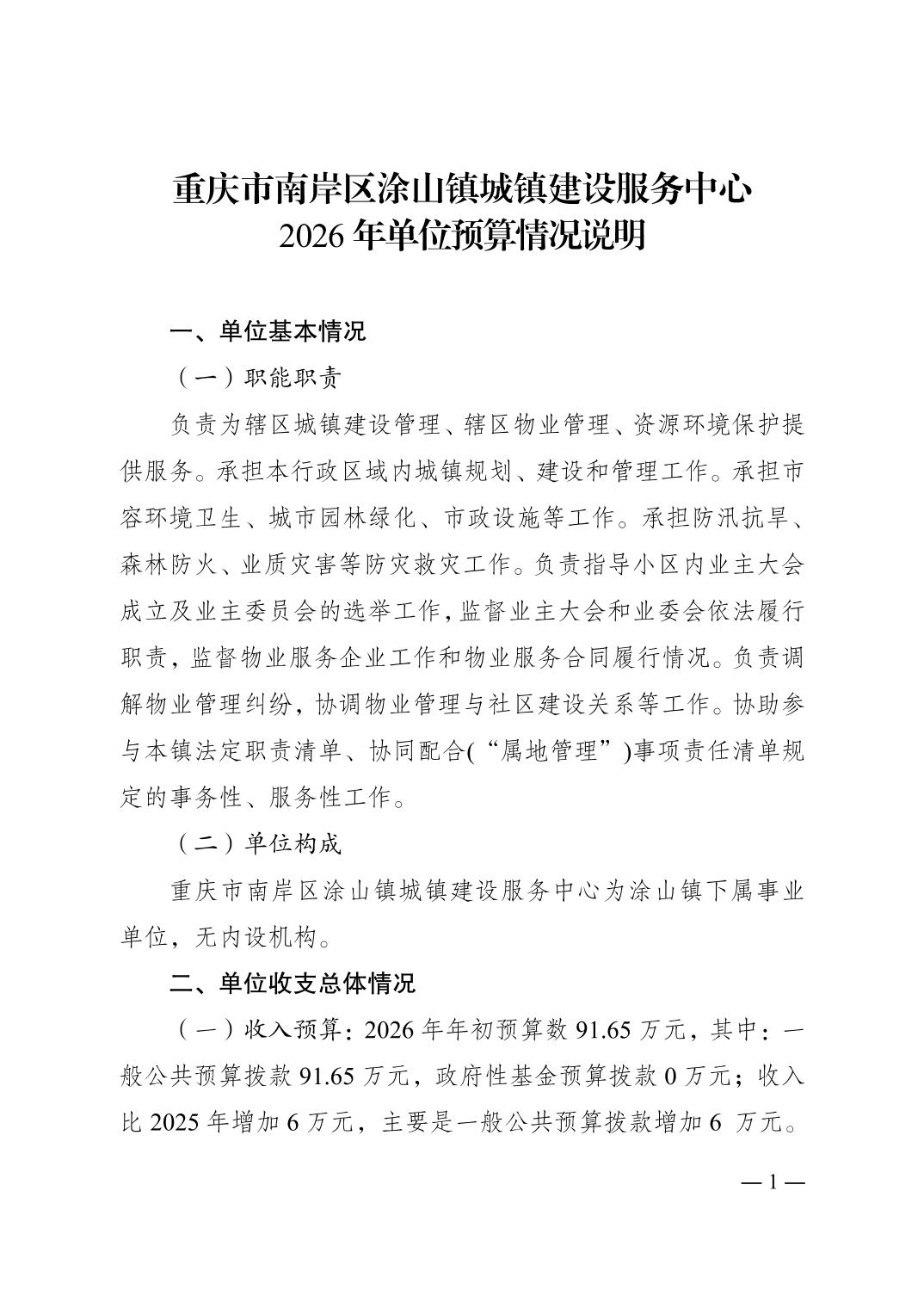 重庆市南岸区涂山镇城镇建设服务中心2026年单位预算情况说明