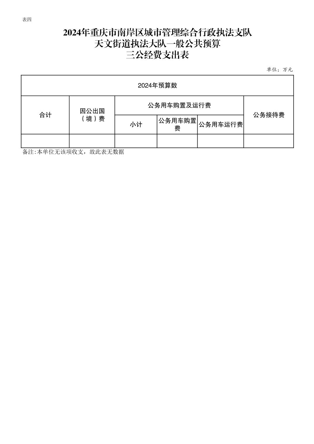 重庆市南岸区城市管理综合行政执法支队天文街道执法大队2024年单位预算情况说明