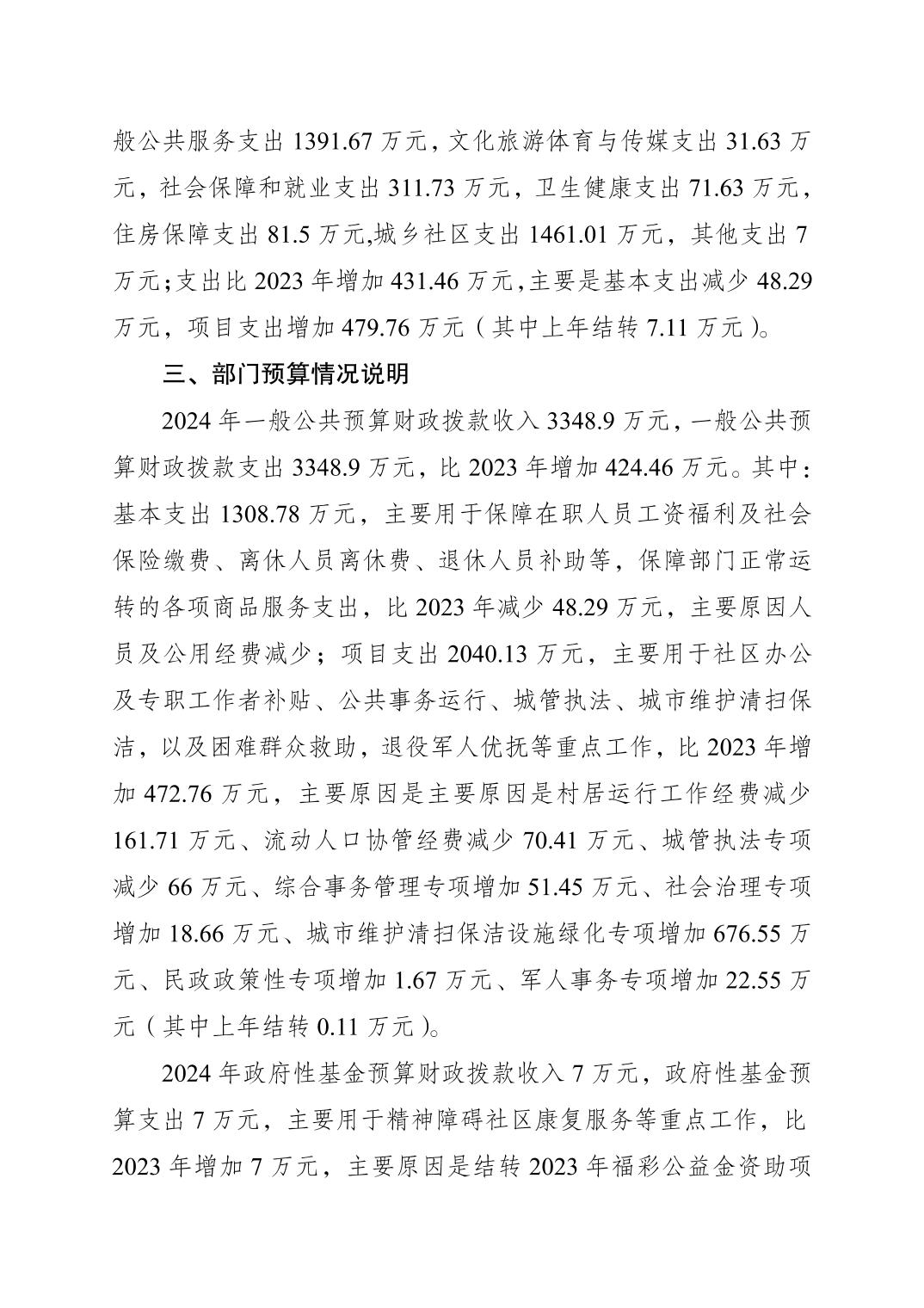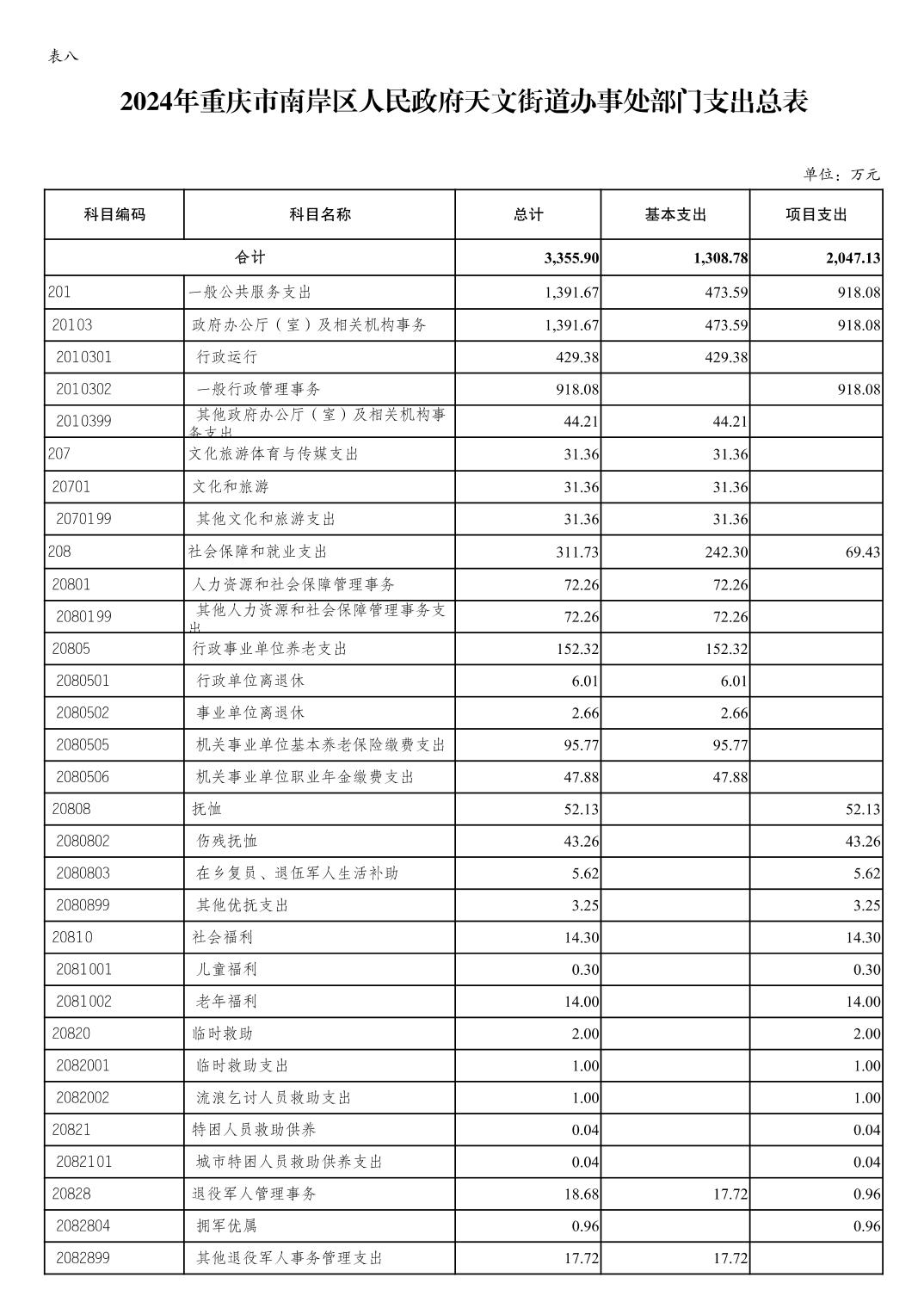 重庆市南岸区人民政府天文街道办事处2024年部门预算情况说明