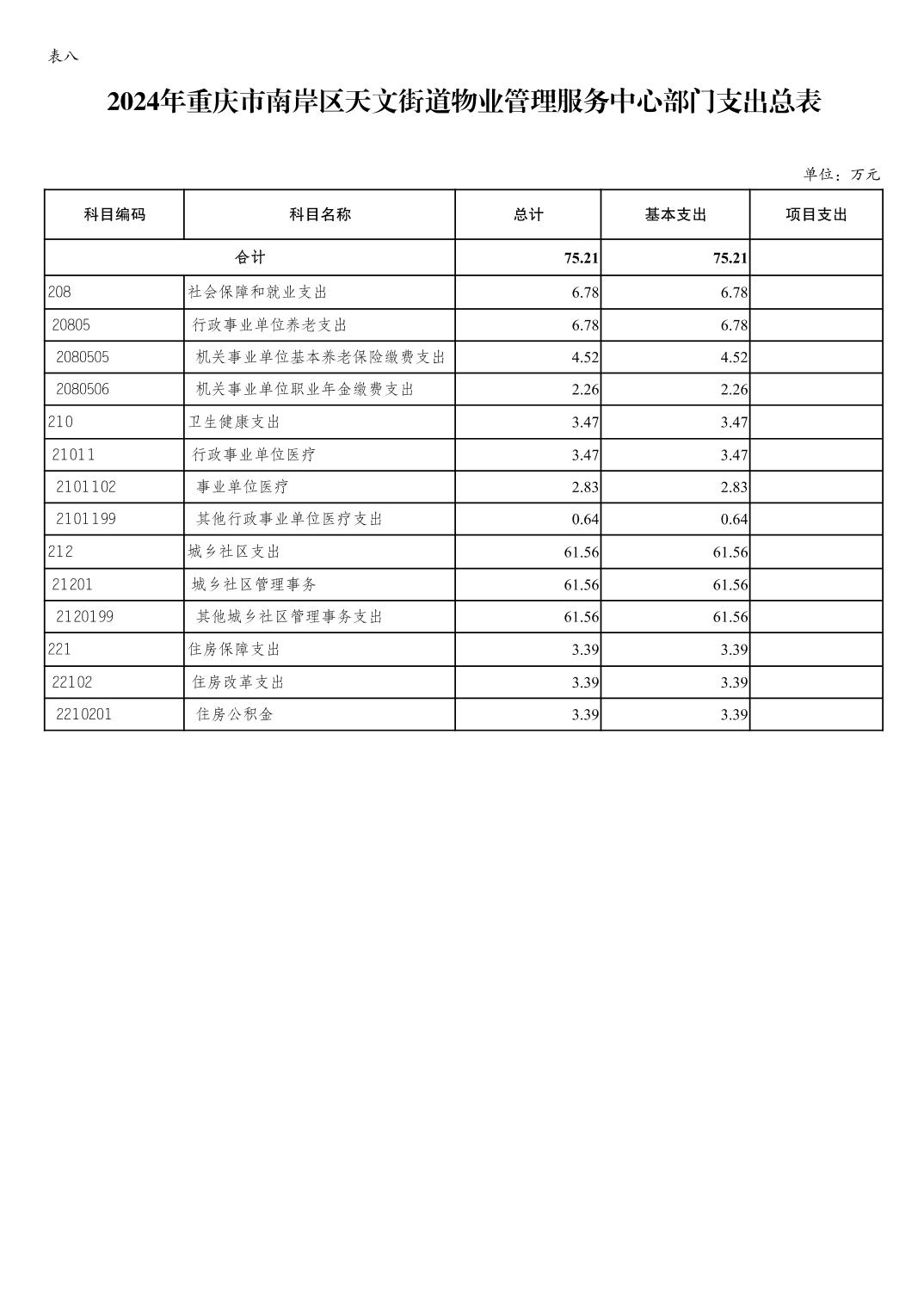重庆市南岸区天文街道物业管理服务中心2024年单位预算情况说明