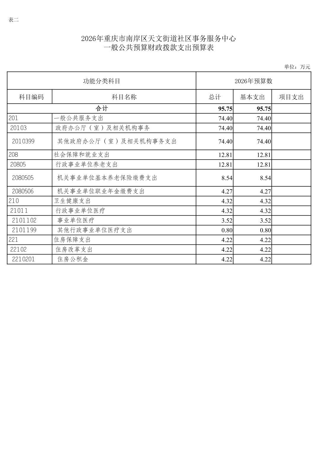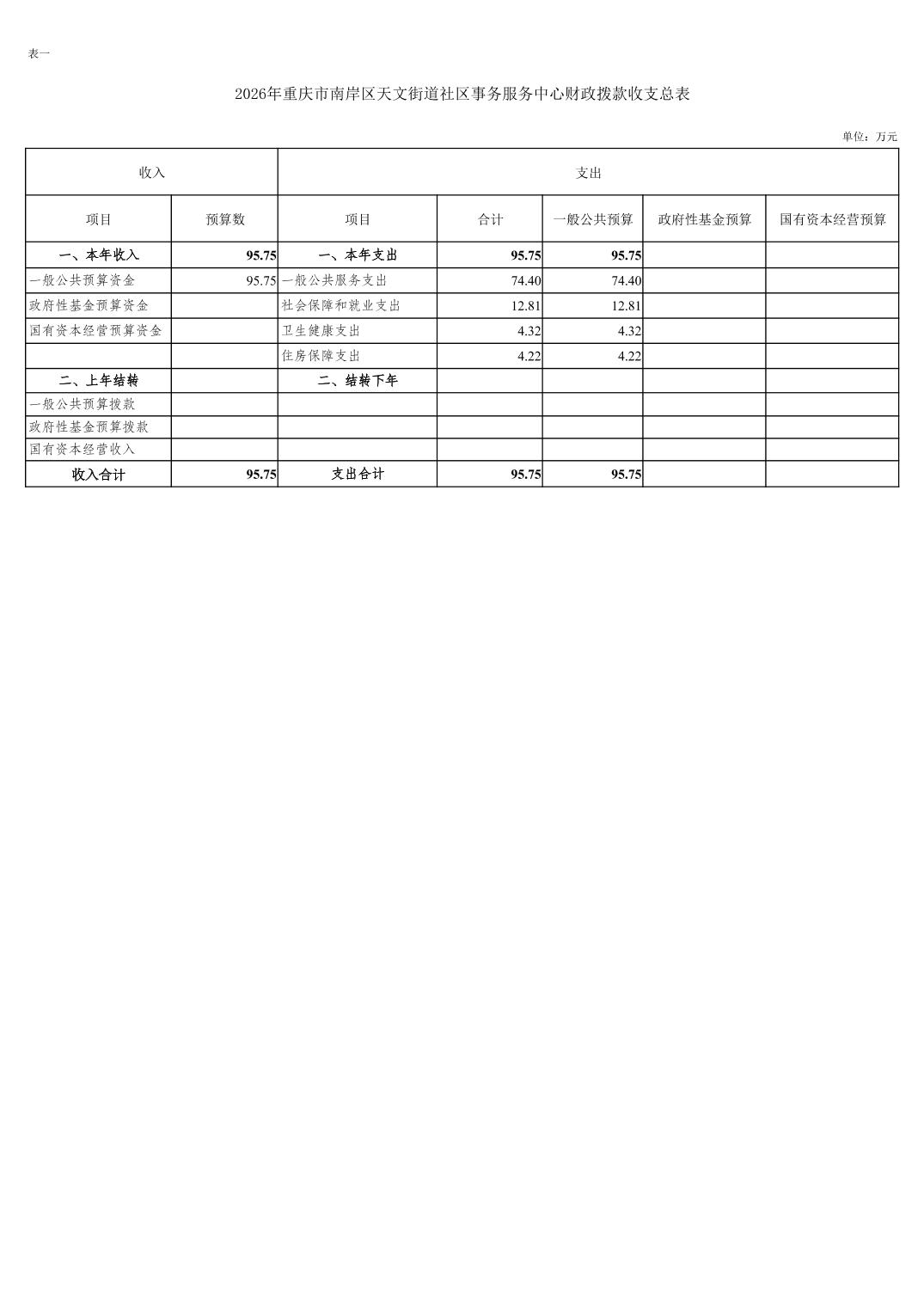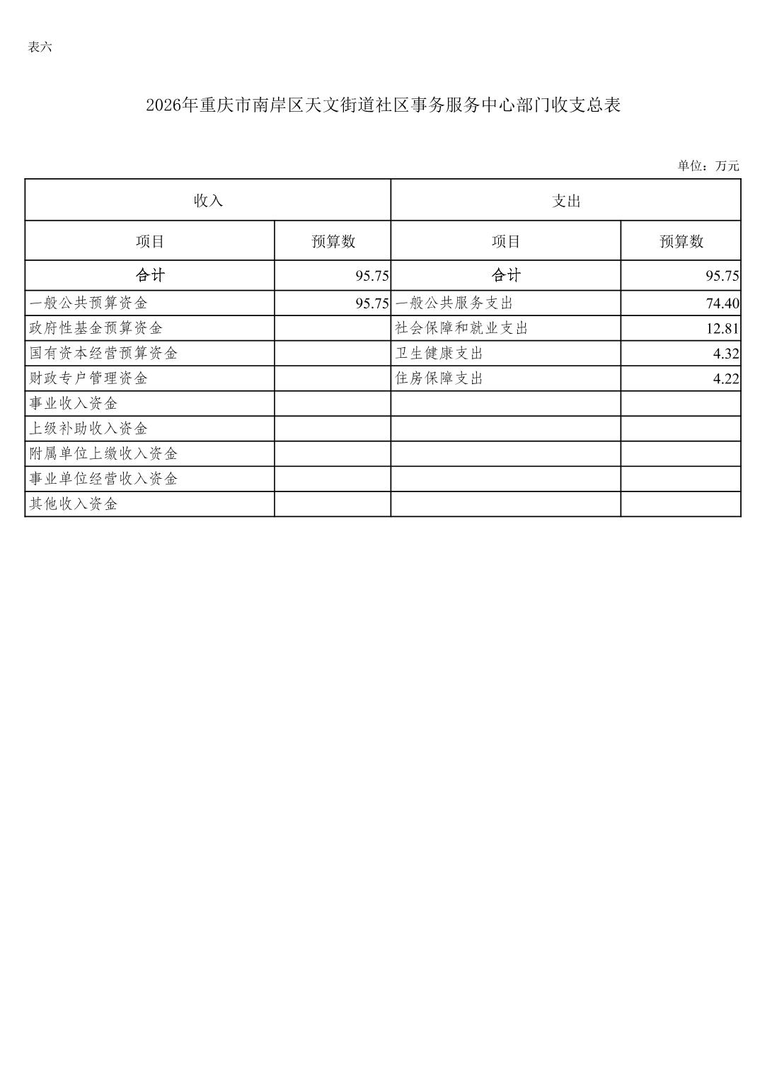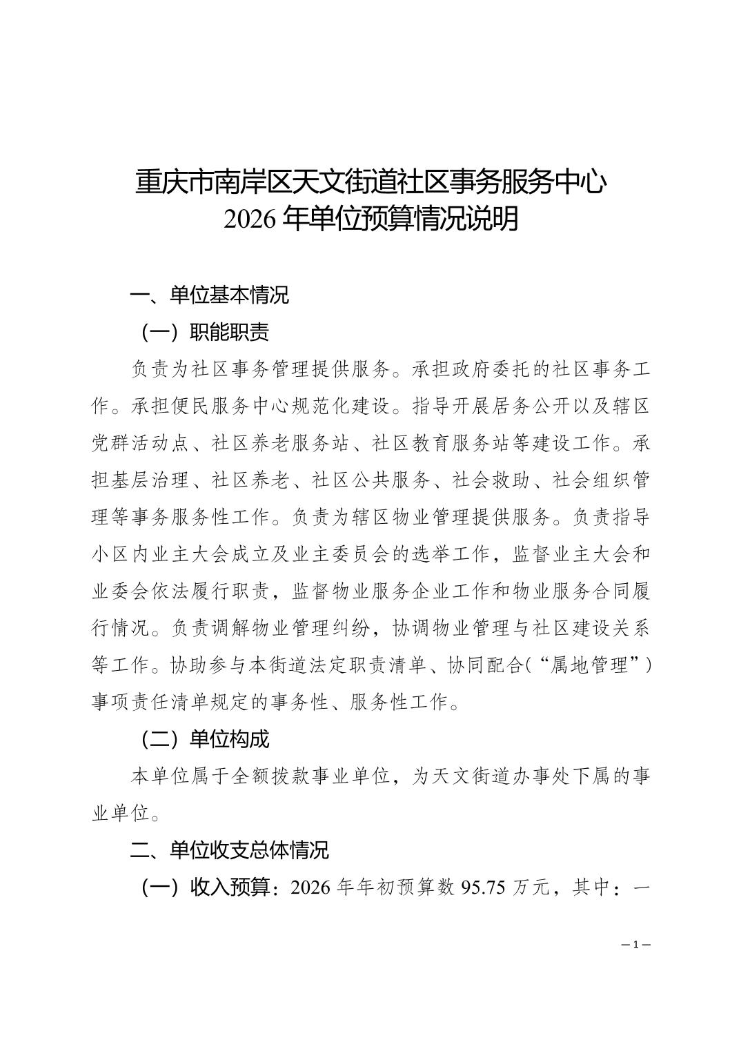 重庆市南岸区天文街道社区事务服务中心2026年单位预算情况说明