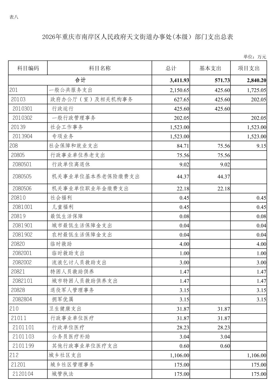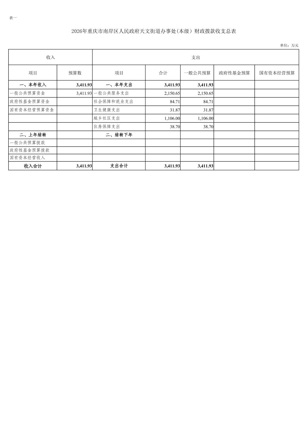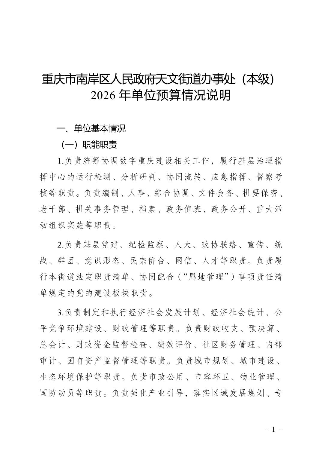 重庆市南岸区人民政府天文街道办事处(本级)2026年单位预算情况说明