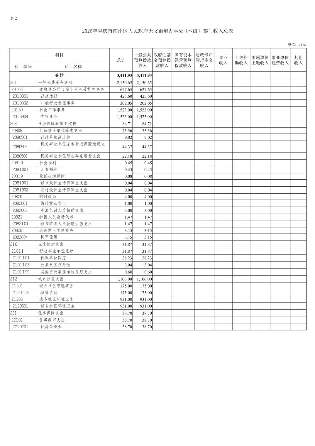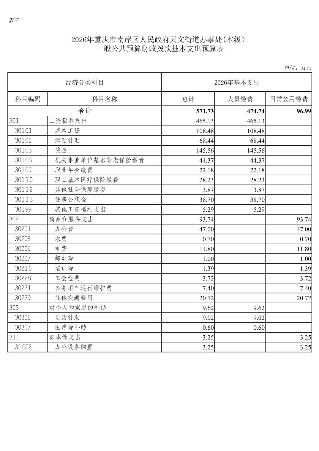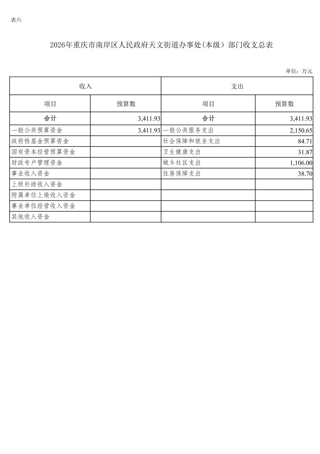 重庆市南岸区人民政府天文街道办事处(本级)2026年单位预算情况说明