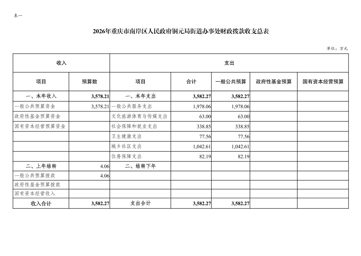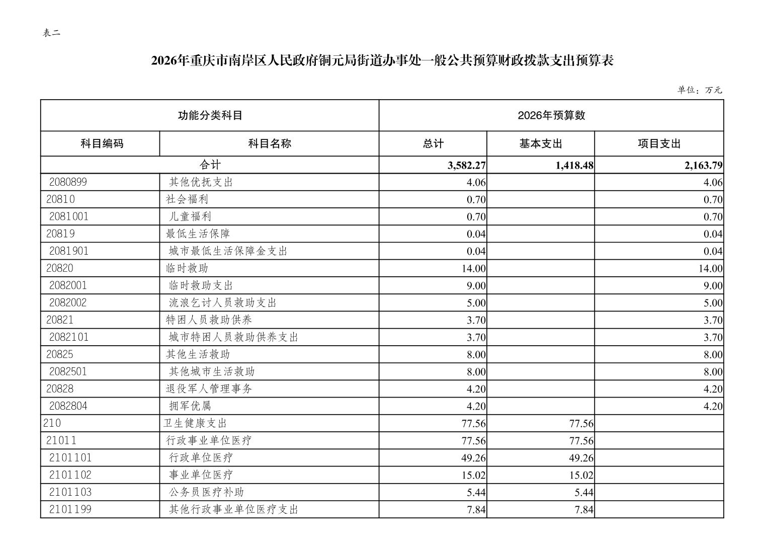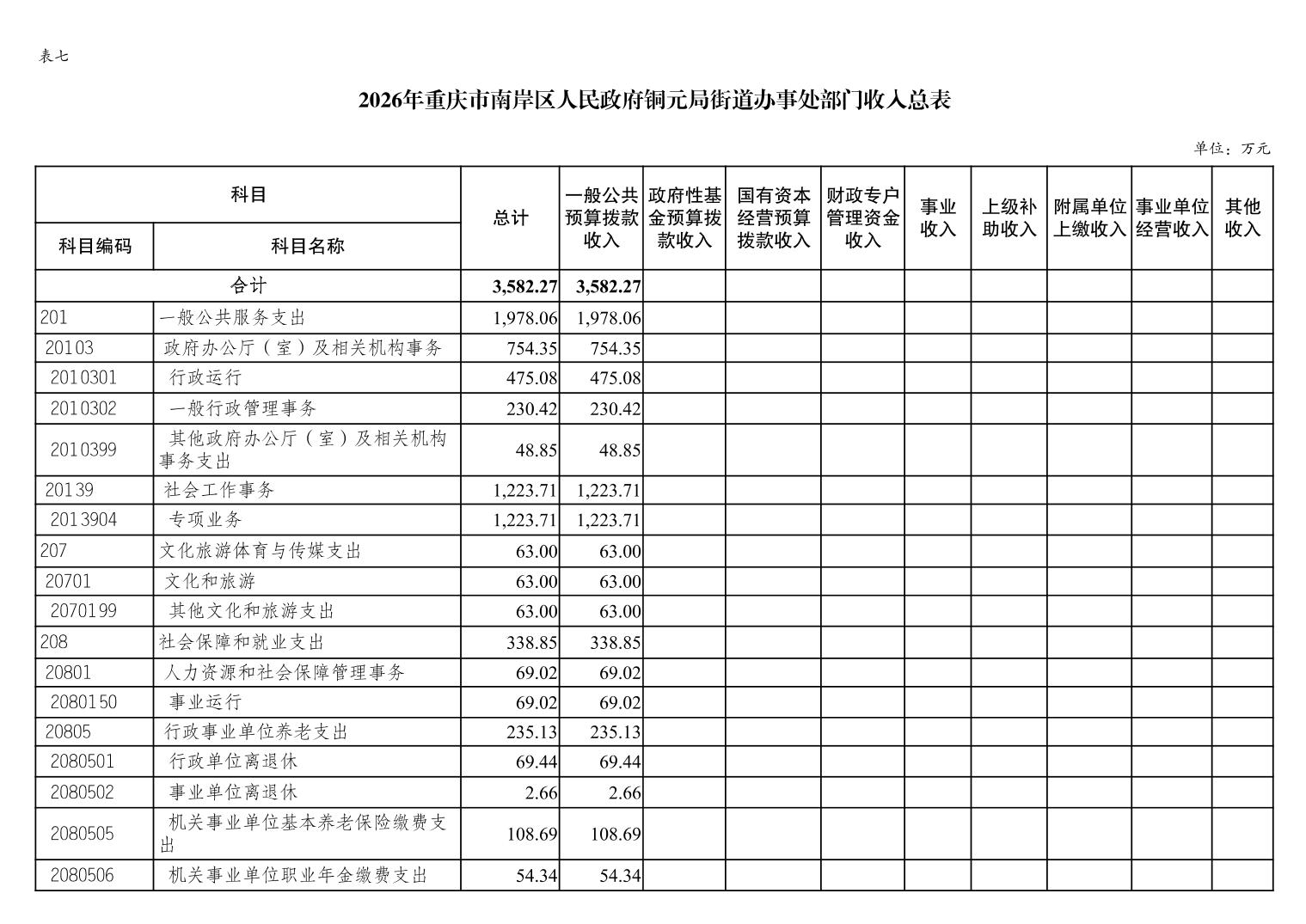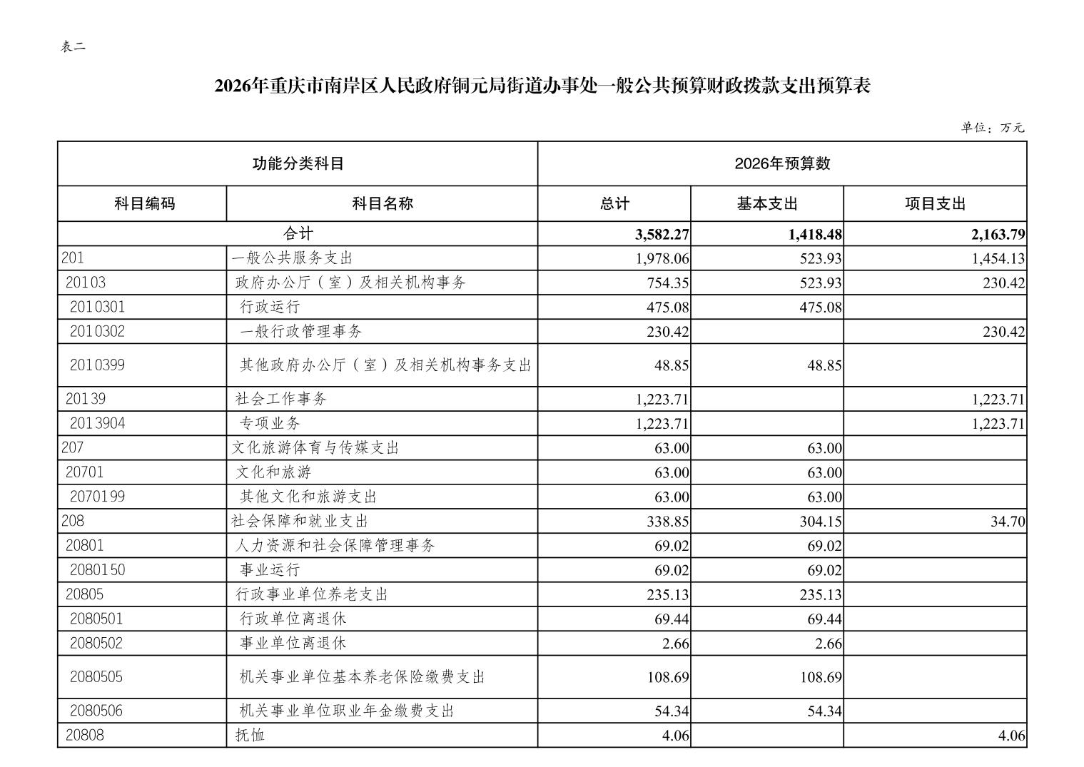 重庆市南岸区人民政府铜元局街道办事处2026年部门预算情况说明