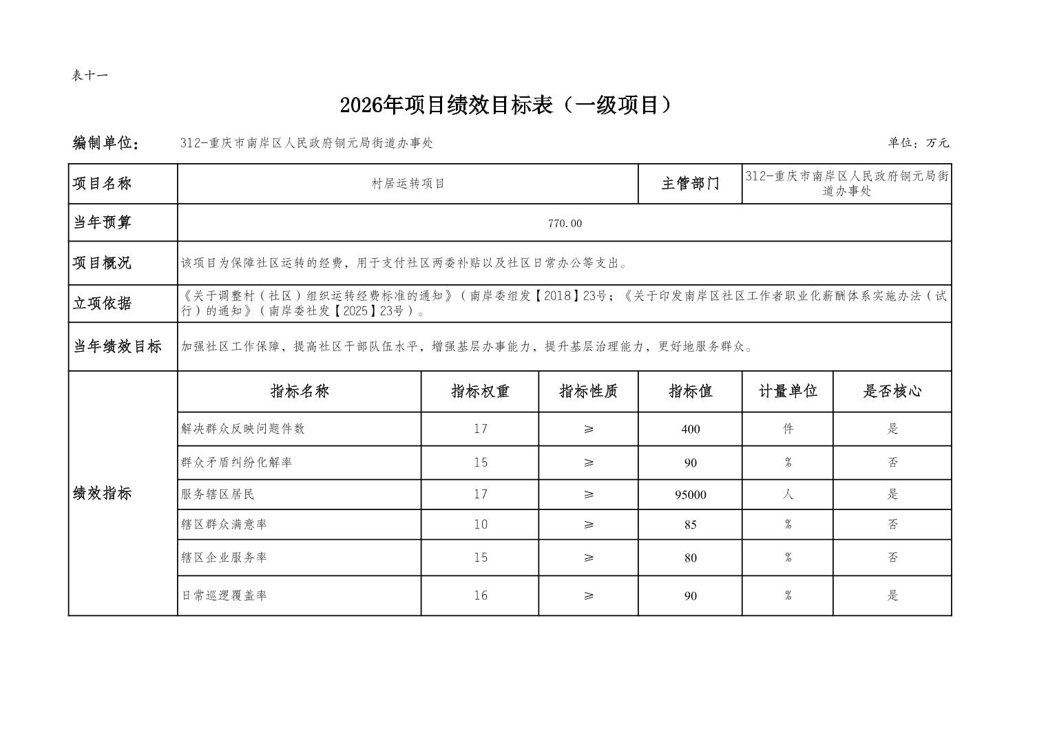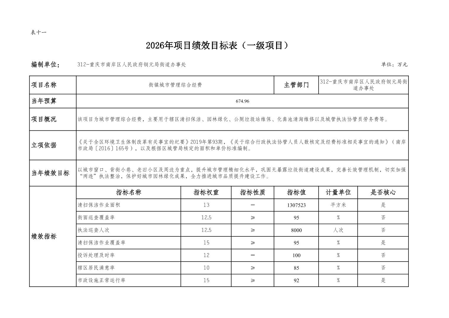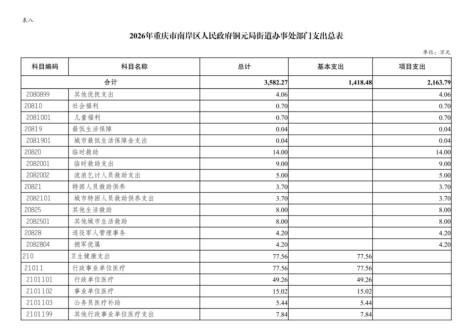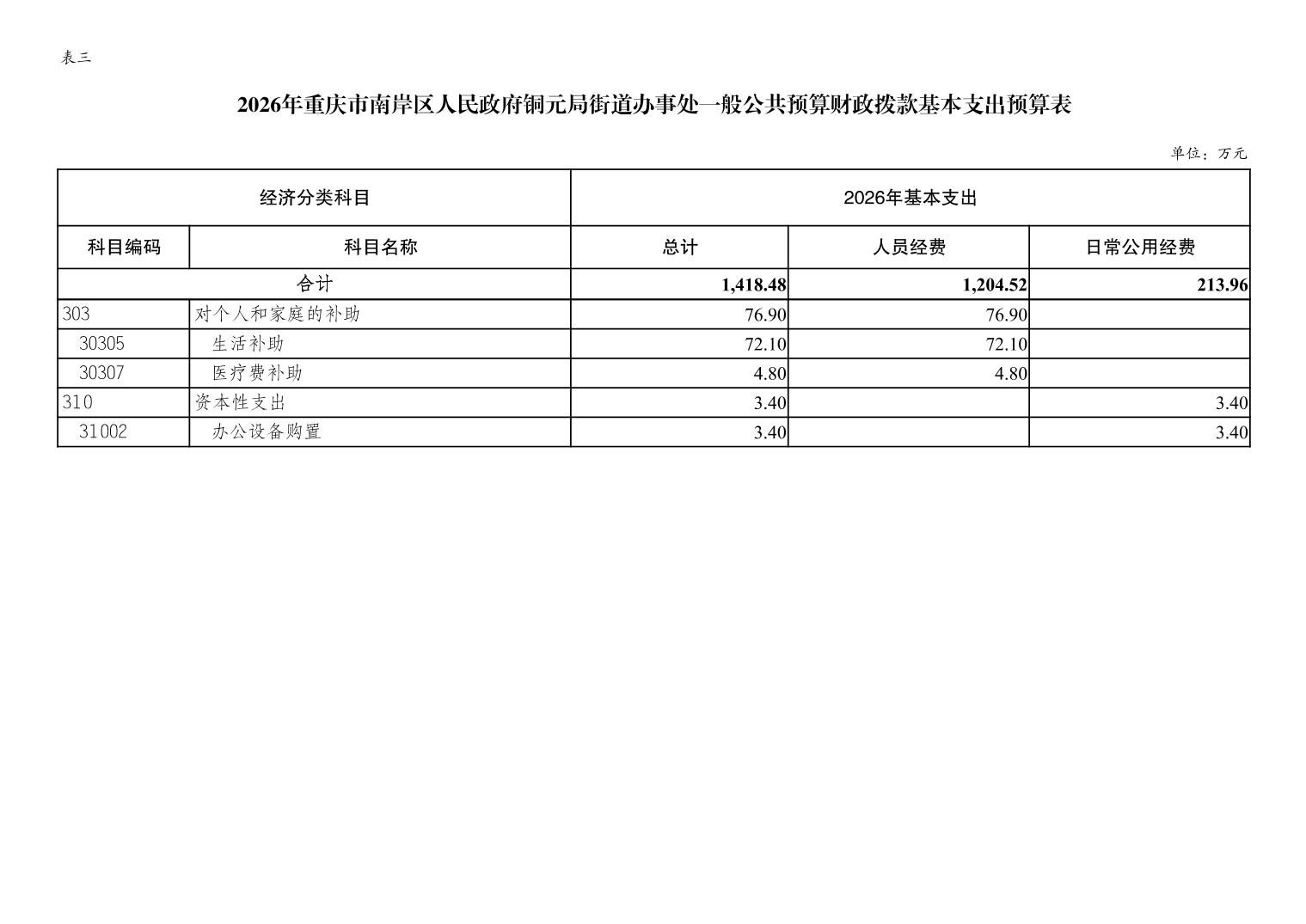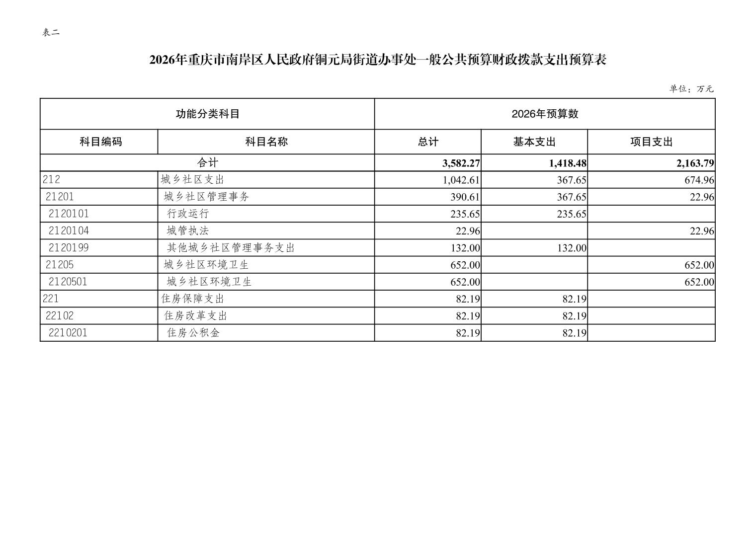 重庆市南岸区人民政府铜元局街道办事处2026年部门预算情况说明