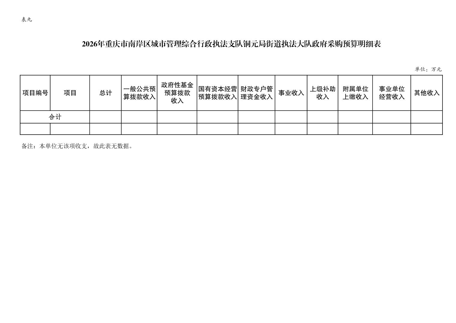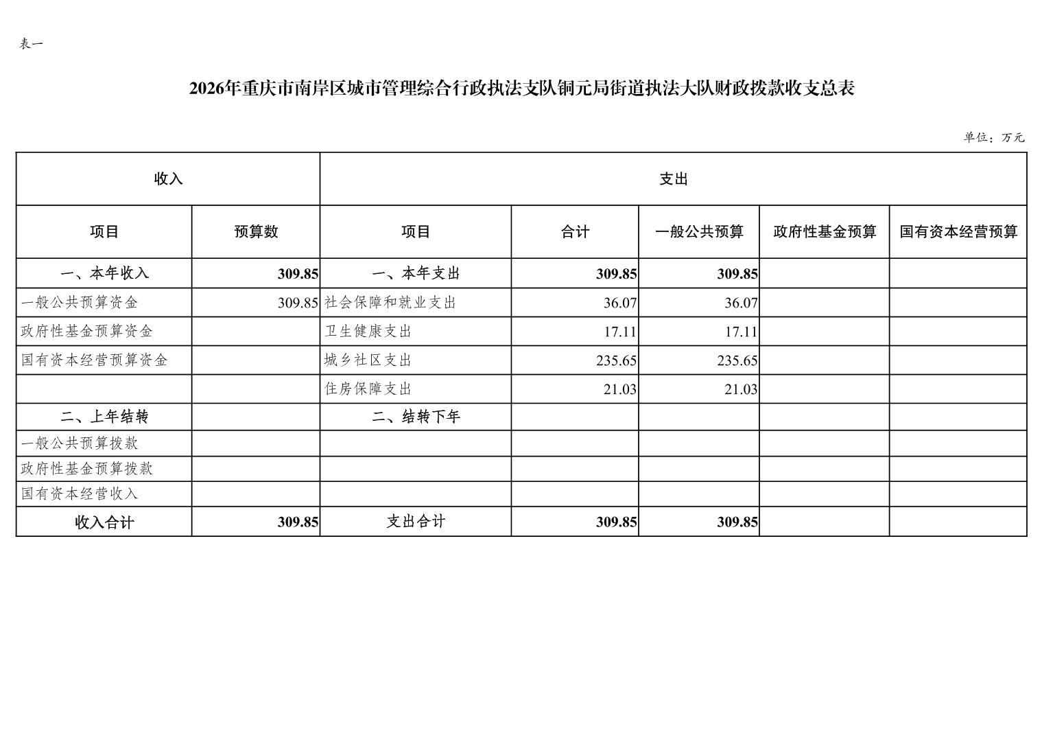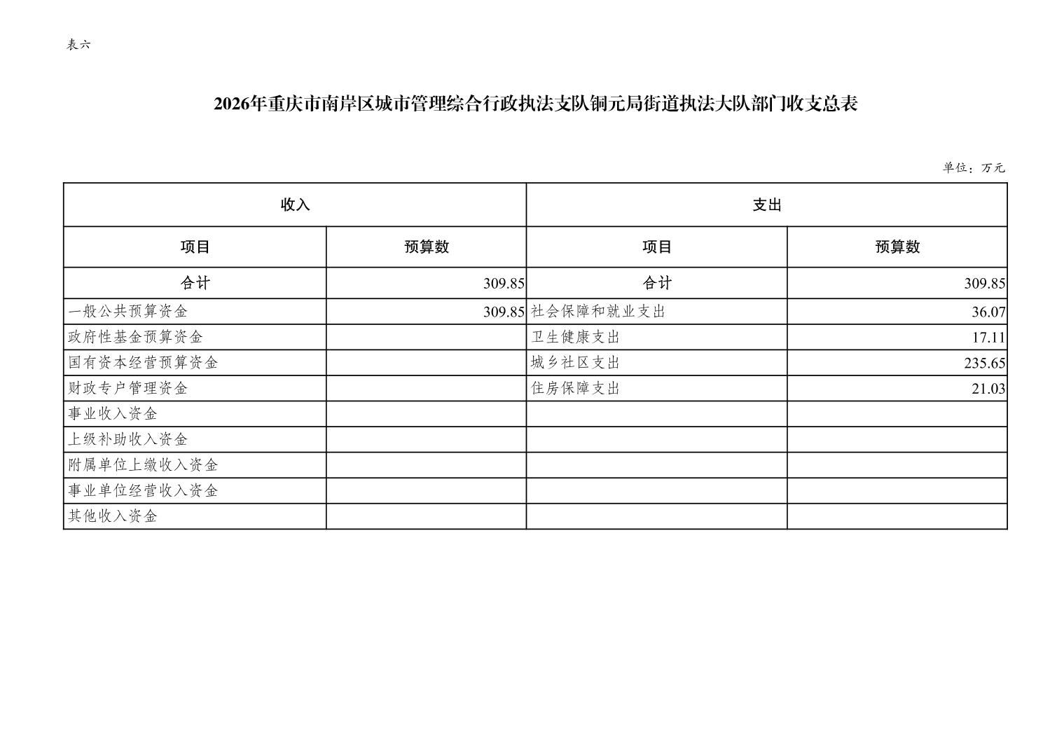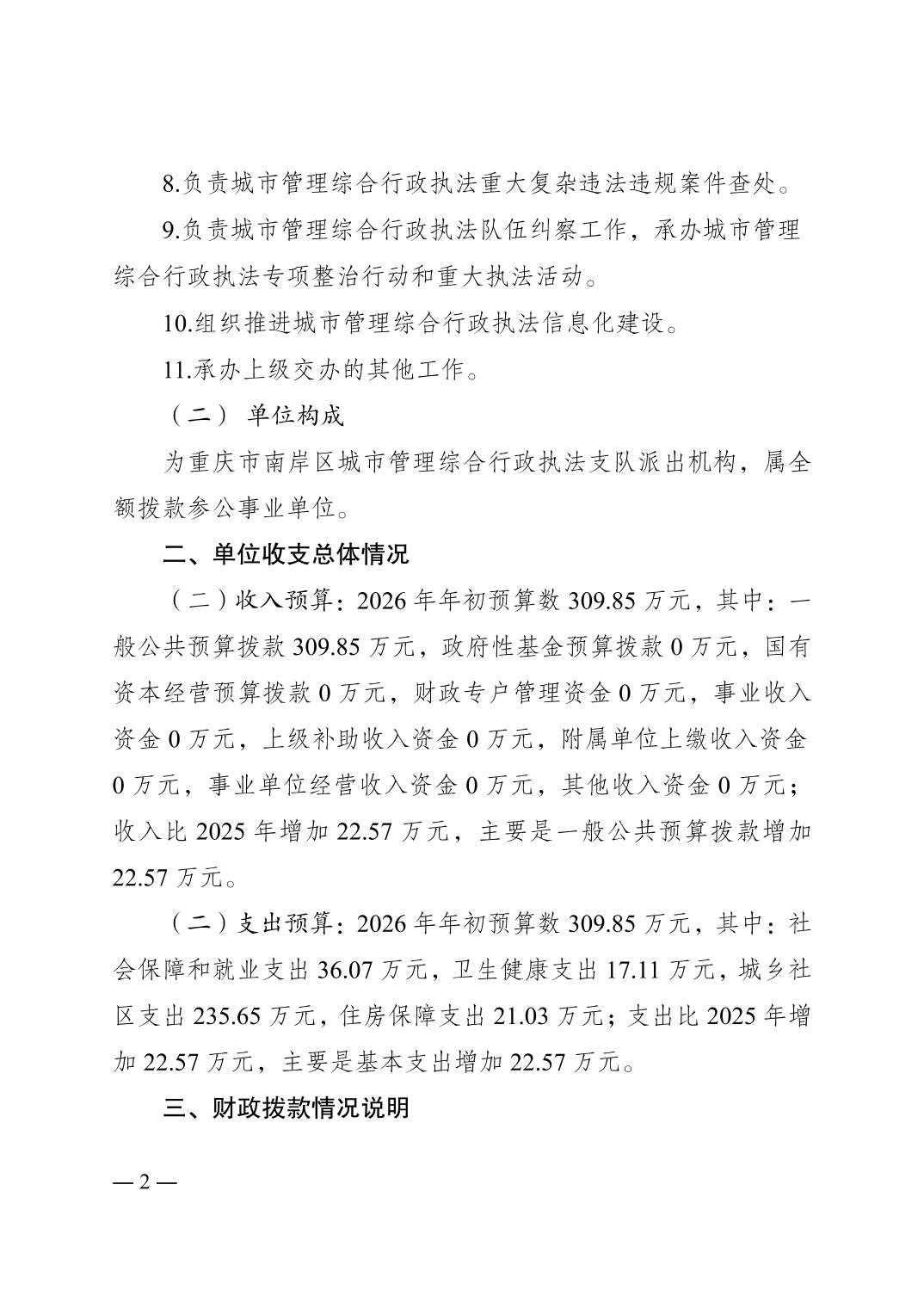 重庆市南岸区城市管理综合行政执法支队铜元局街道执法大队2026年单位预算情况说明