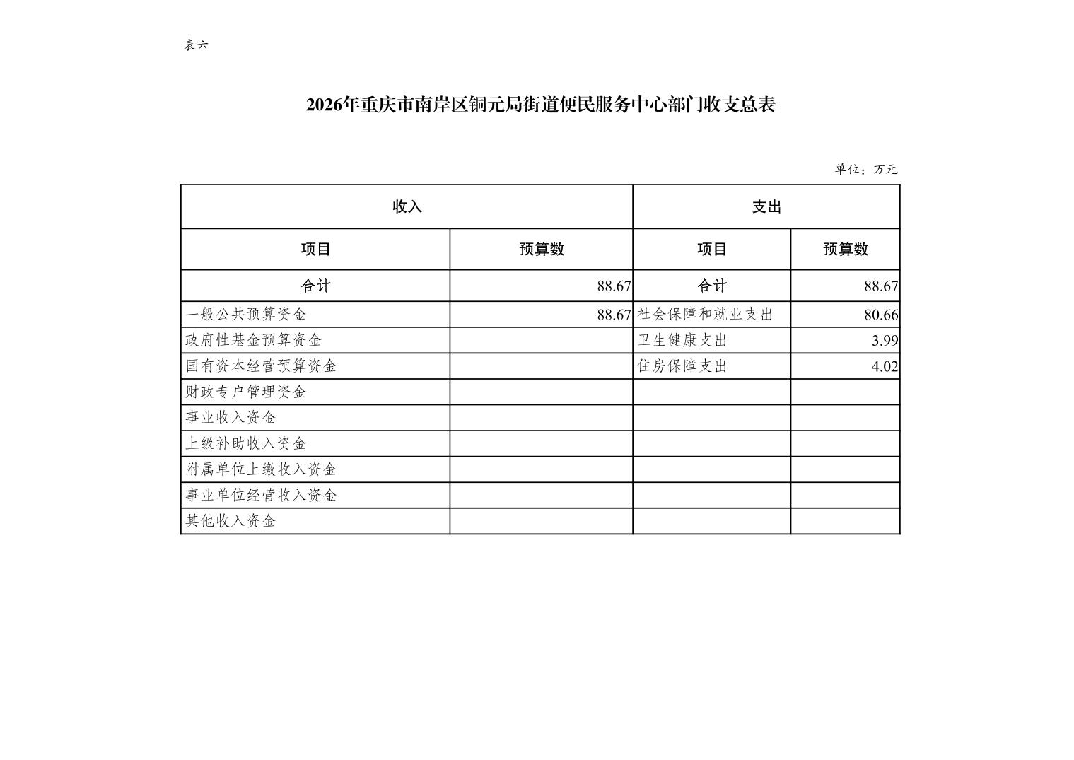 重庆市南岸区铜元局街道便民服务中心2026年单位预算情况说明